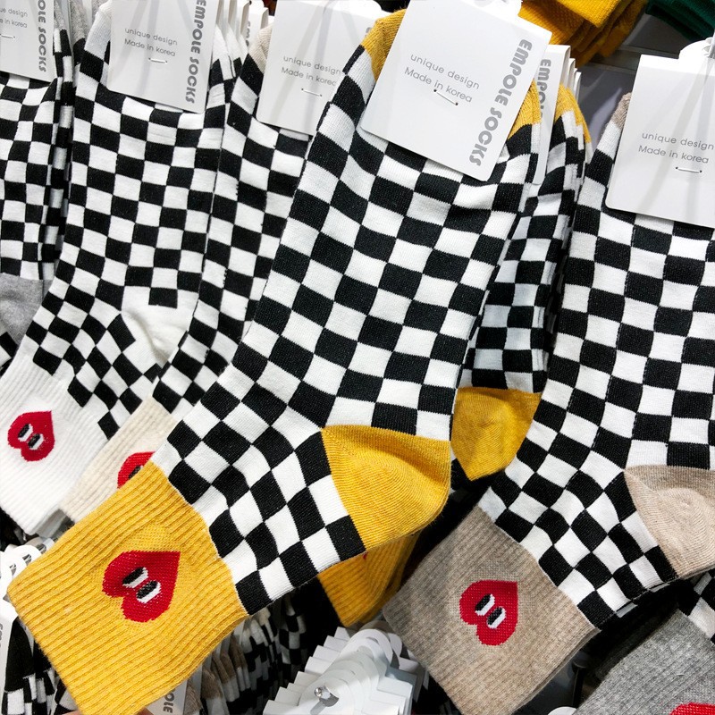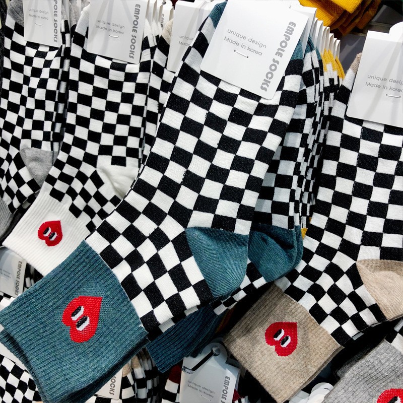 [도매] 한국 양말 EMPOLE 사랑 여자 양말 트렌드 바둑판 양말 가을과 겨울 스타킹
