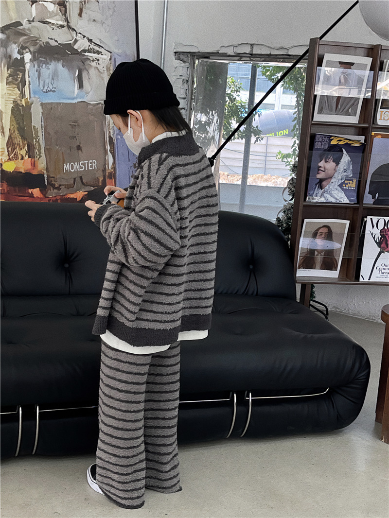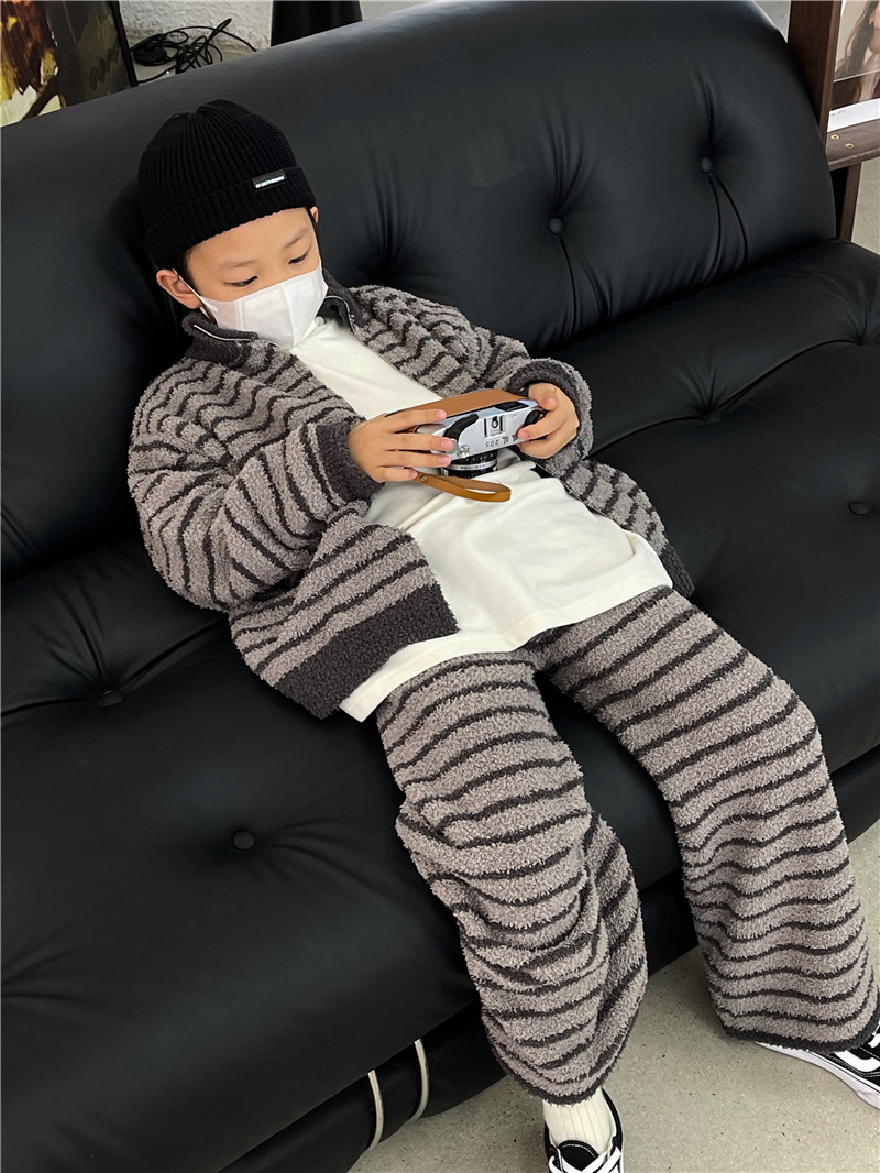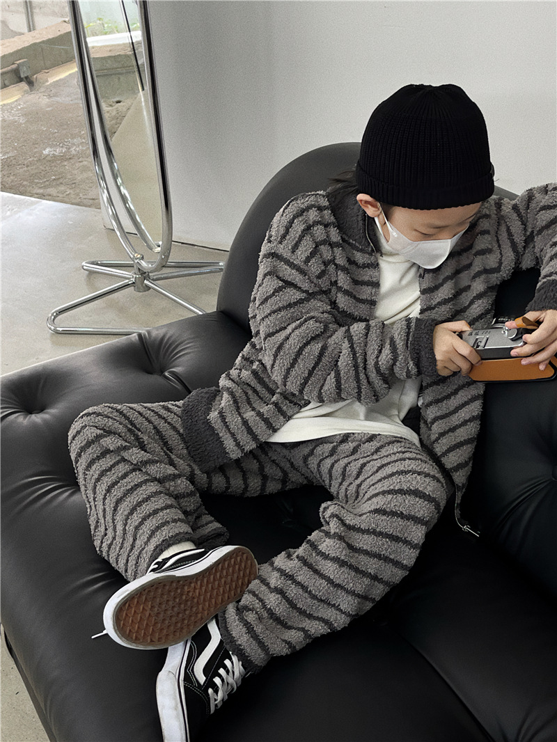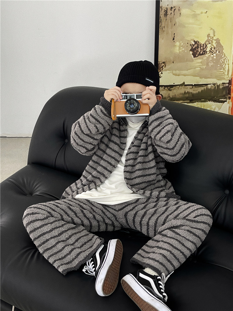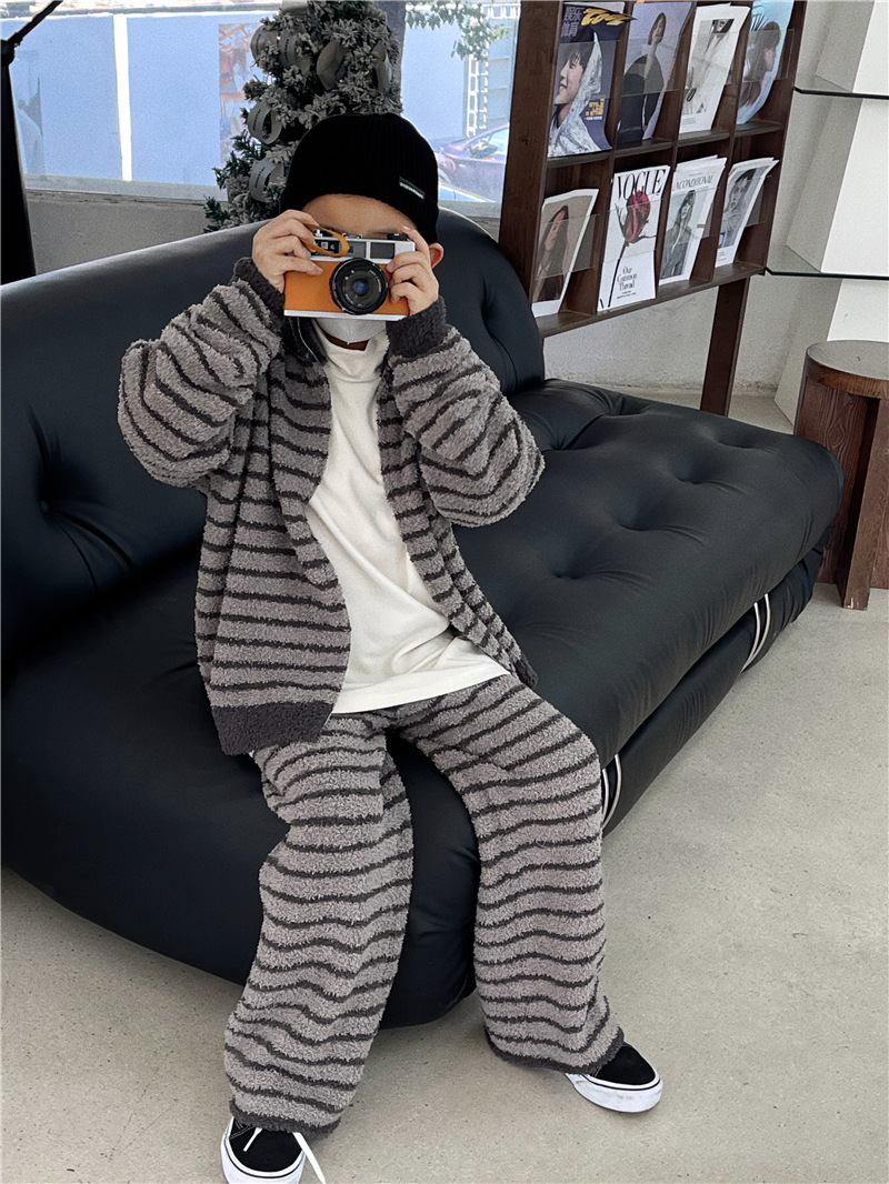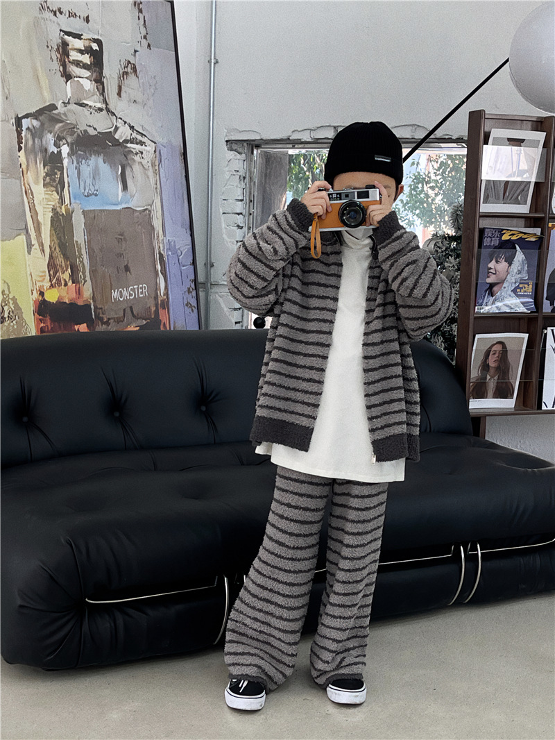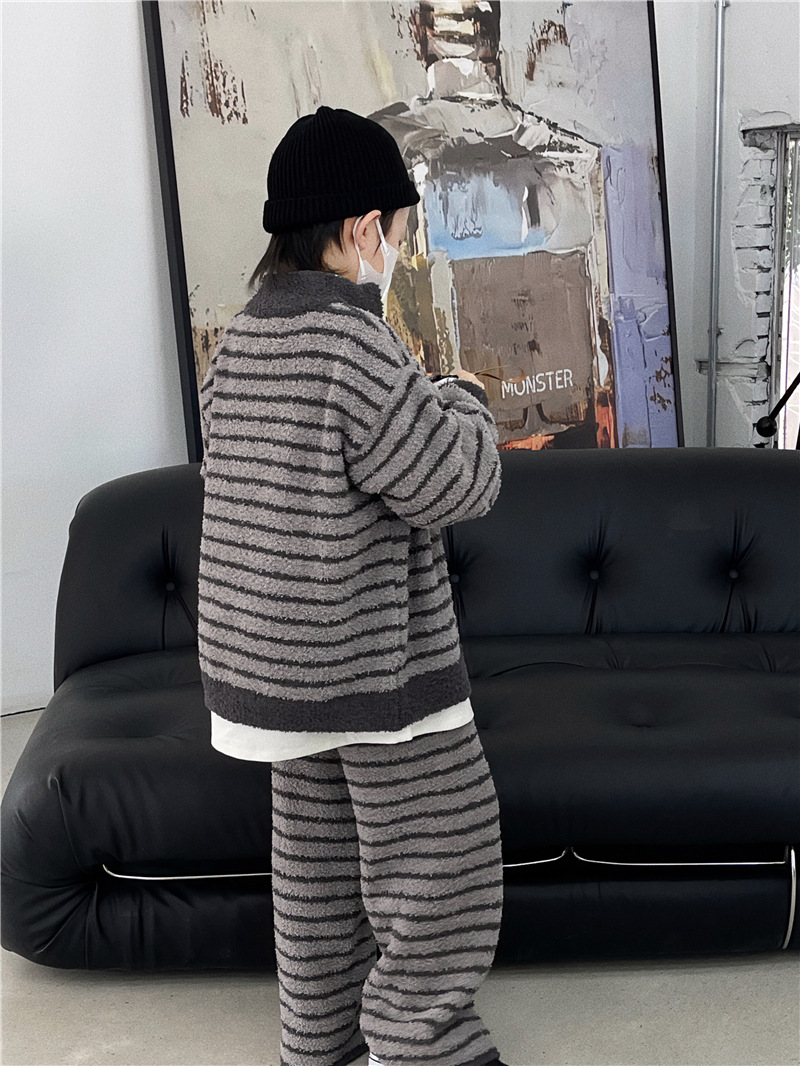 Baoduo 아동복 소년 홈 의류 세트 따뜻한 가을과 겨울 의류 느슨한 2023 새로운 겨울 스웨터 투피스 세트