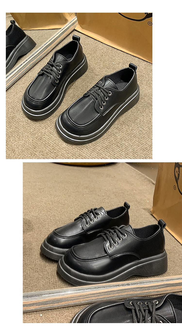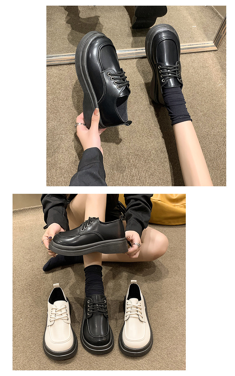 영국식 Mary Jane 여성용 향기로운 스타일 프랑스 스타일 대학 스타일 조커 작은 가죽 신발 플랫 레이스업 신발 두꺼운 밑창 증가스토어 가기