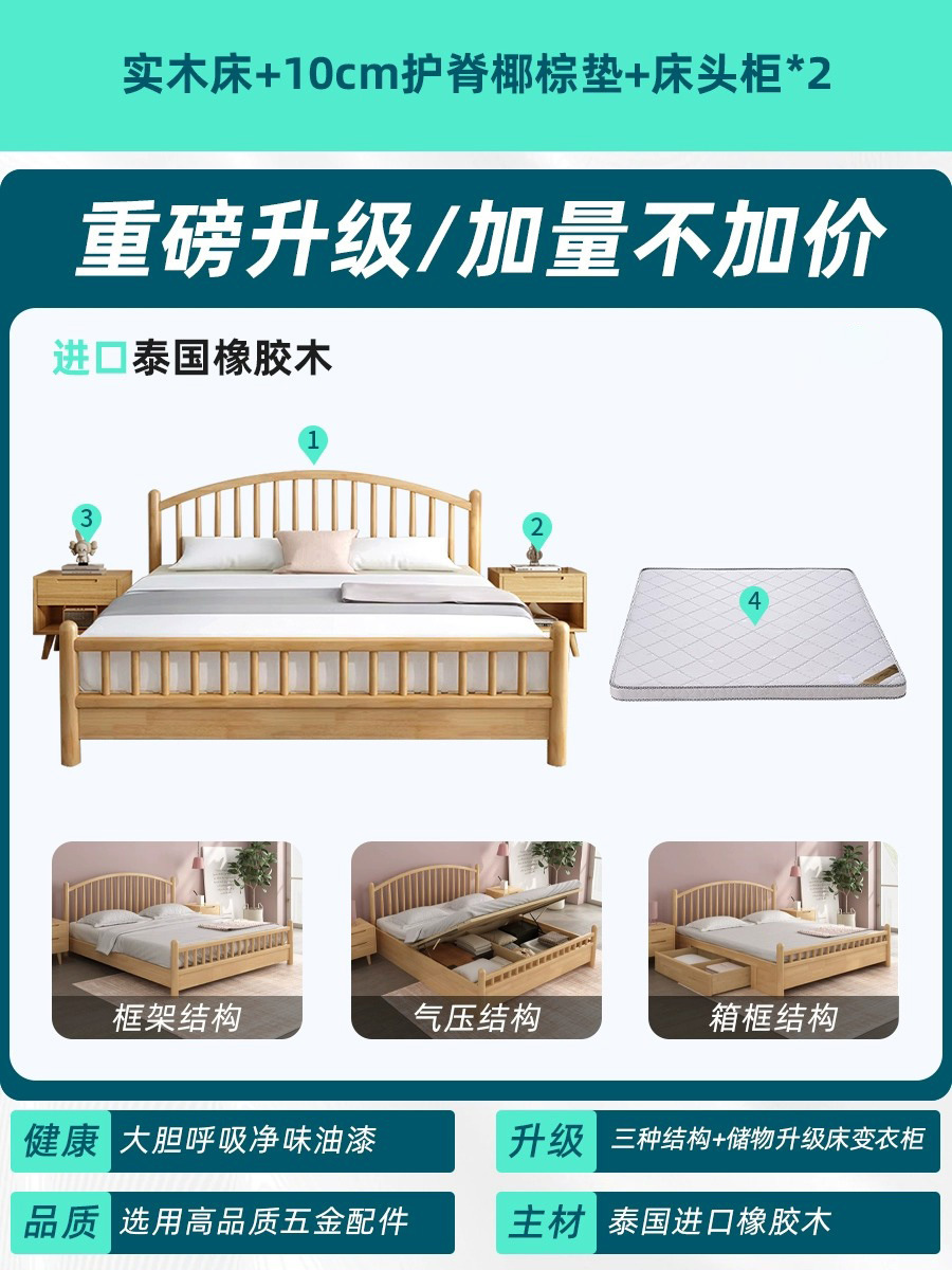 • 침대 + 10cm 코코넛 팜 매트리스 + 침대 옆 탁자 * 1