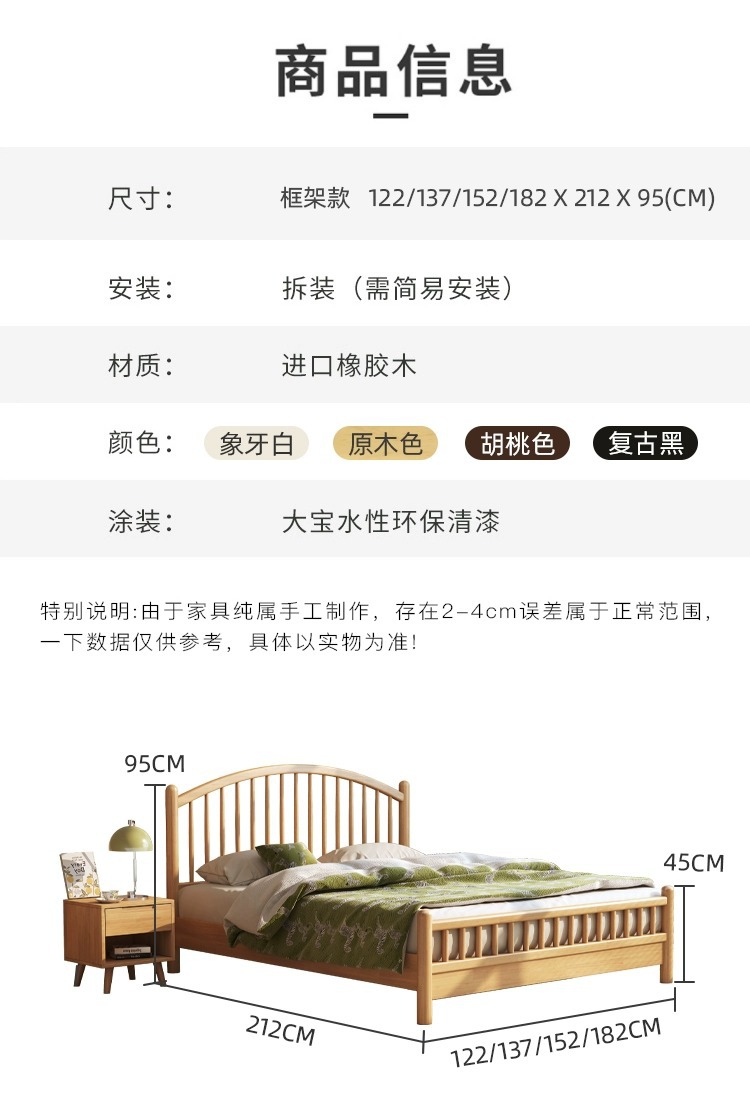 북유럽 단단한 나무 침대 1.8 더블 일본 마스터 침실 임대실 1.5 m 윈저 침대 모던 심플 아파트 홈스테이 침대스토어 가기