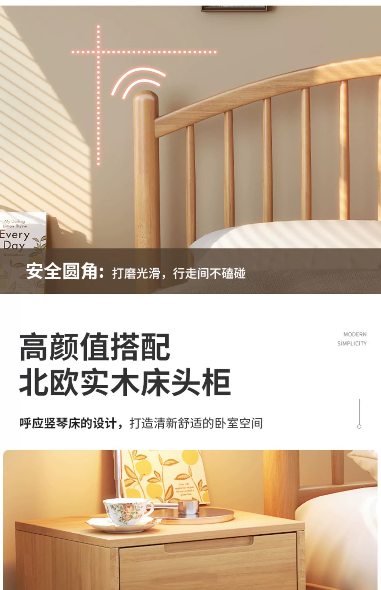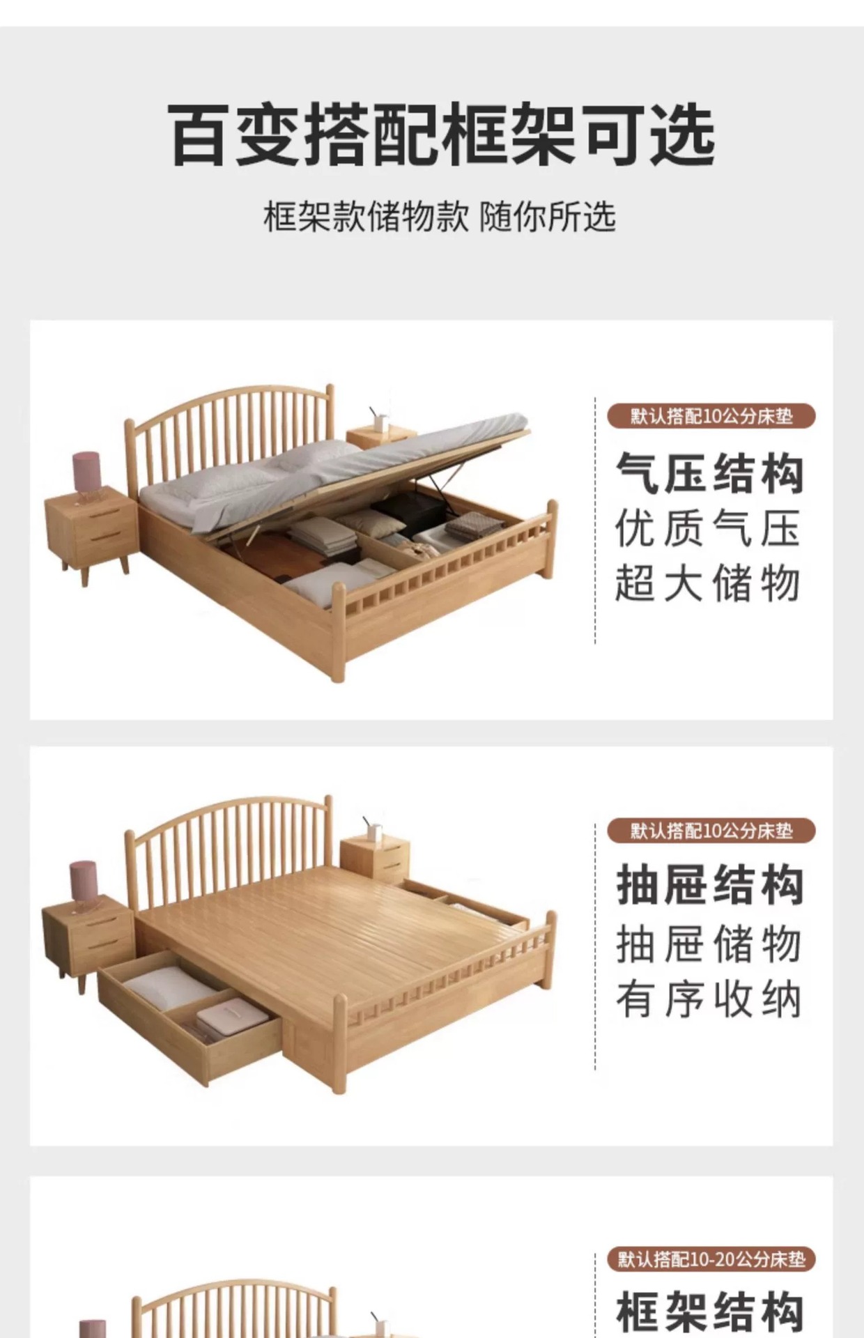 • 침대 + 20cm 코코넛 팜 매트리스 + 침대 옆 탁자 * 2