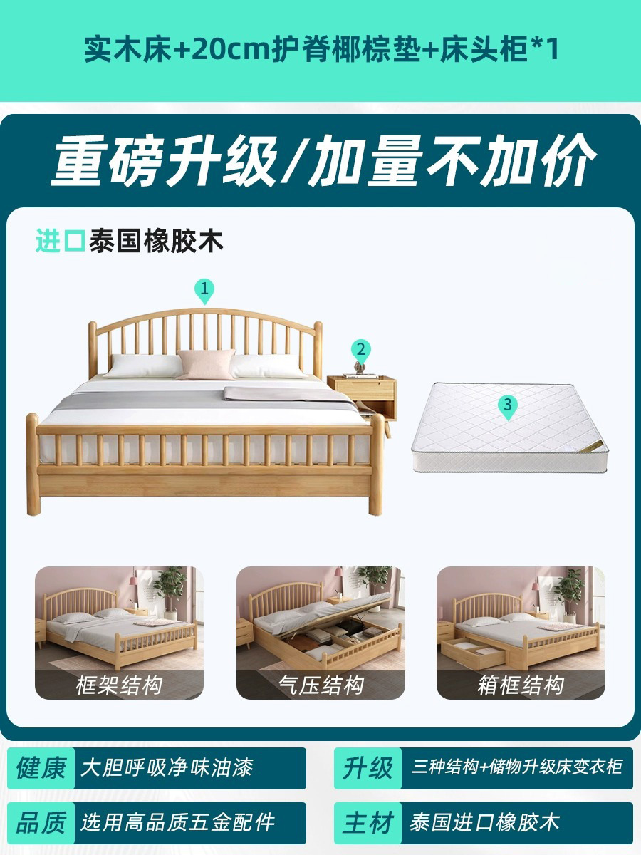 • 침대 + 20cm 코코넛 팜 매트리스 + 침대 옆 탁자 * 1
