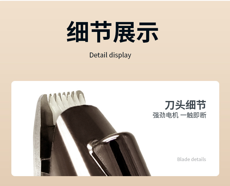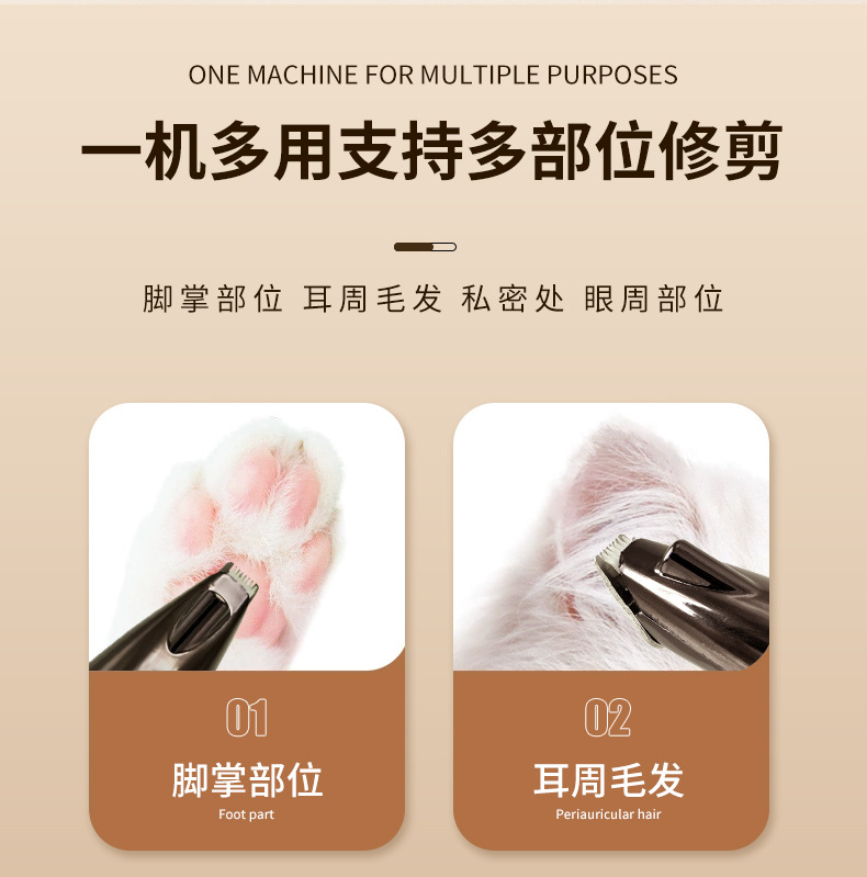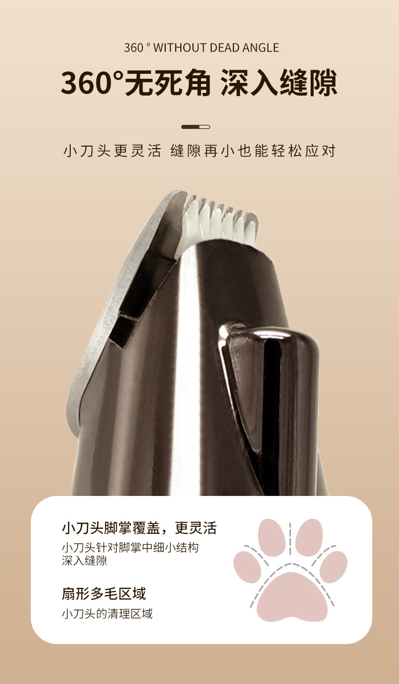 产品功能;一机多用支持多部位精修,列如脚掌,耳周毛发,私密处,眼周部位。