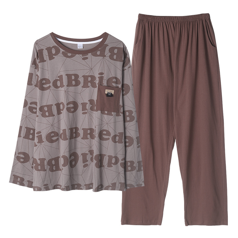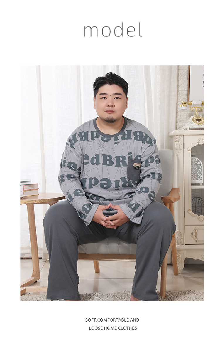 남자의 잠옷 봄과 가을 순면 긴팔 크루넥 플러스 팻 플러스 뚱뚱한 남자 뚱뚱한 남자를위한 젊은 및 중년의 가정 옷 세트스토어 가기