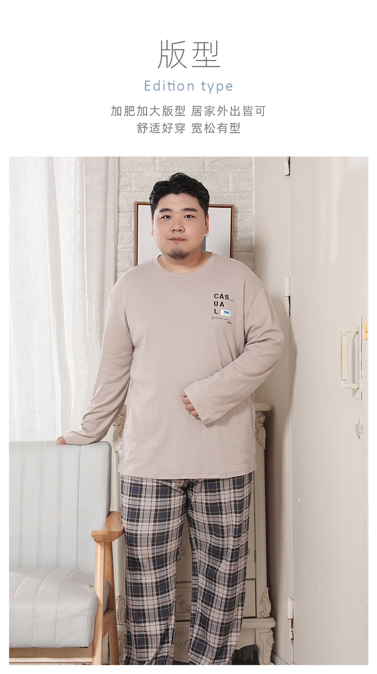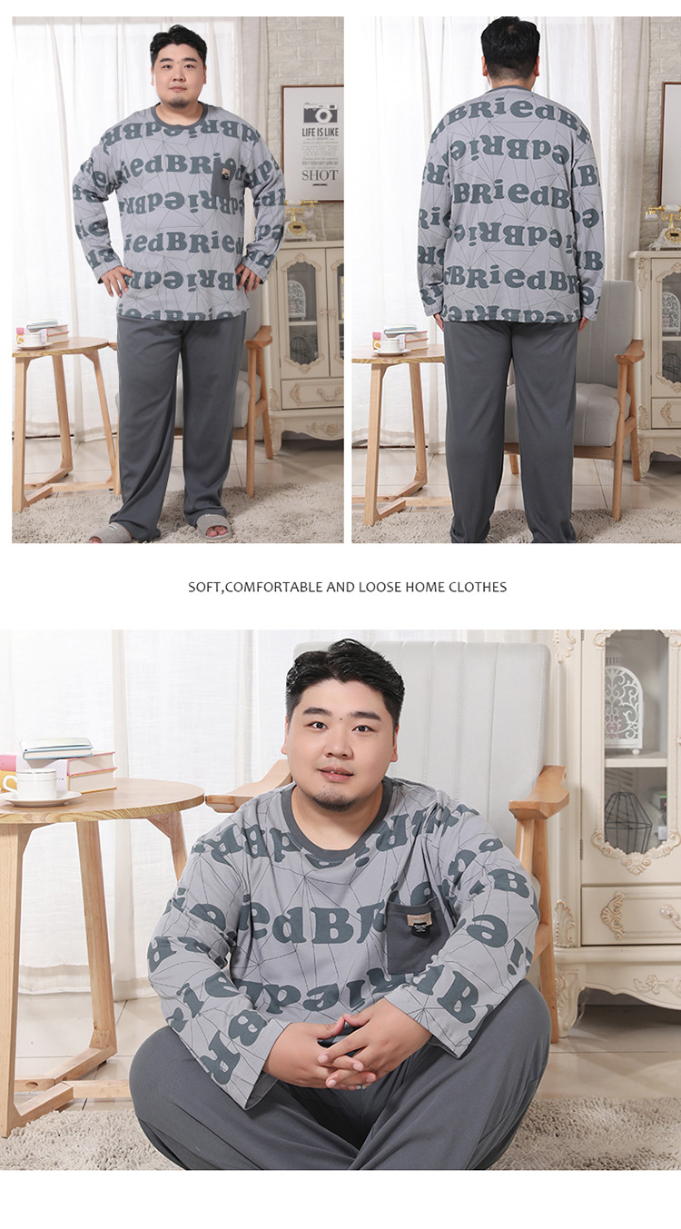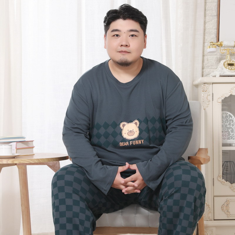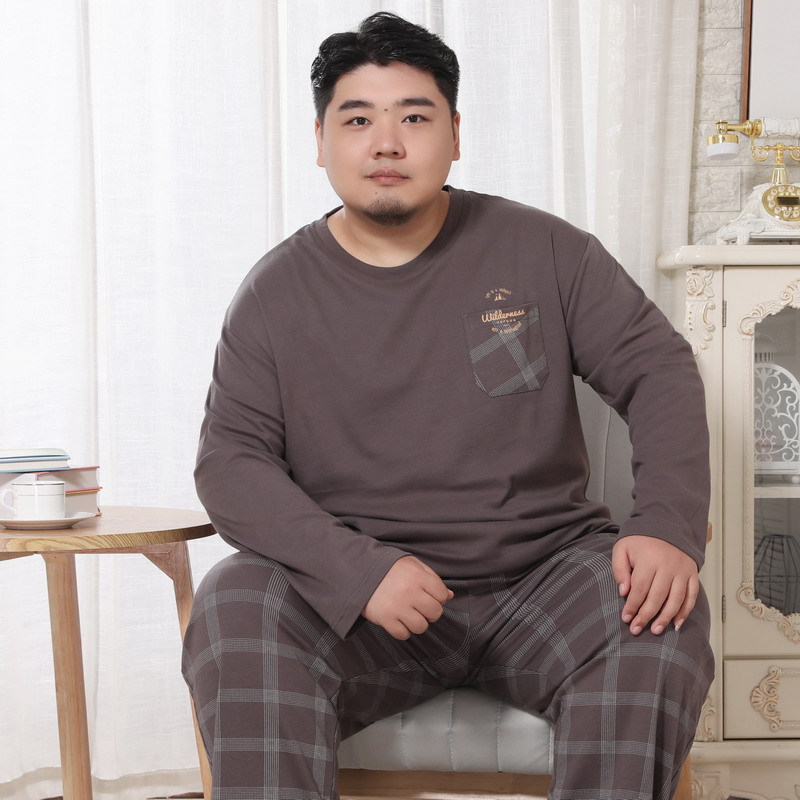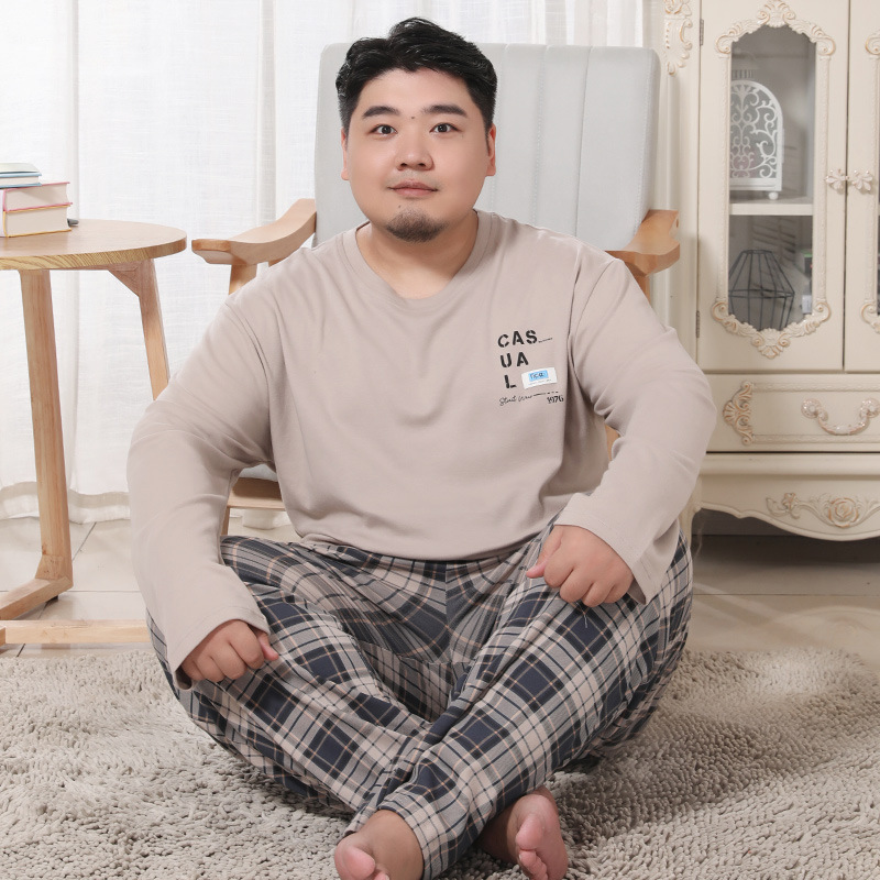 남자의 잠옷 봄과 가을 순면 긴팔 크루넥 플러스 팻 플러스 뚱뚱한 남자 뚱뚱한 남자를위한 젊은 및 중년의 가정 옷 세트
