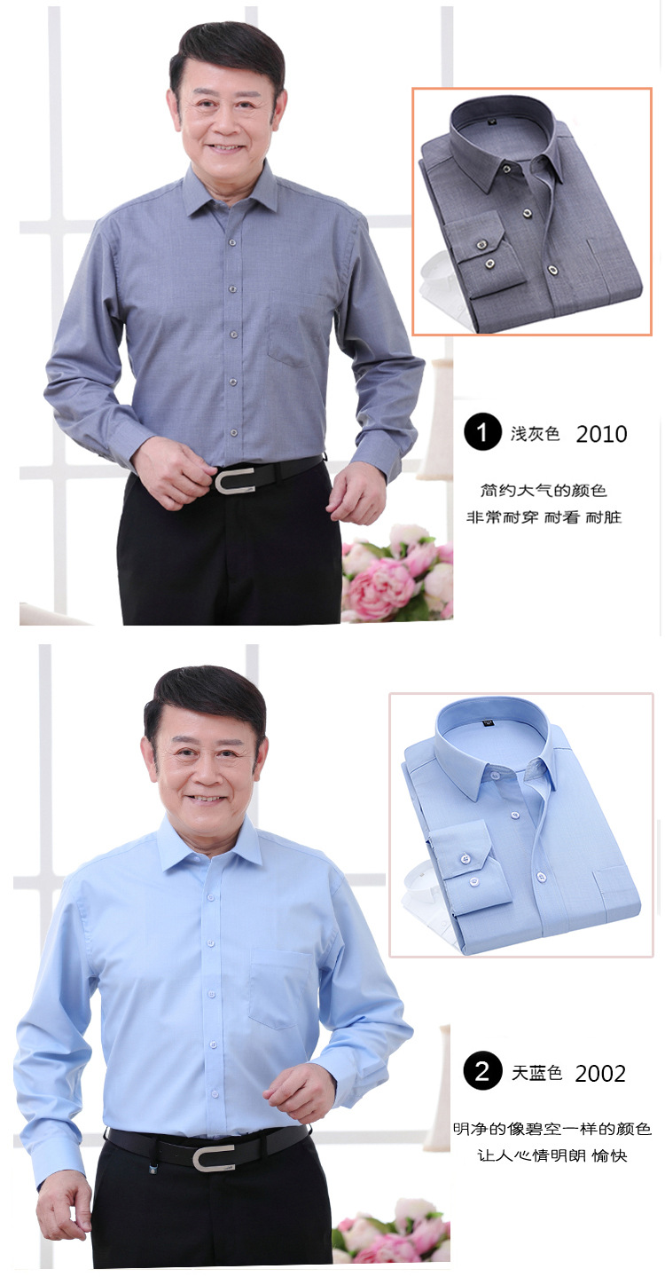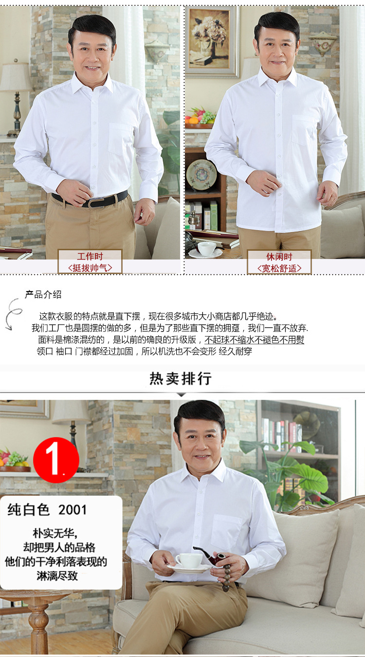 중년 및 노인 남성용 긴팔 셔츠 봄과 가을 아빠 캐주얼 다리미 프리 셔츠 스트레이트 튜브 느슨한 버전 인치 옷 도매