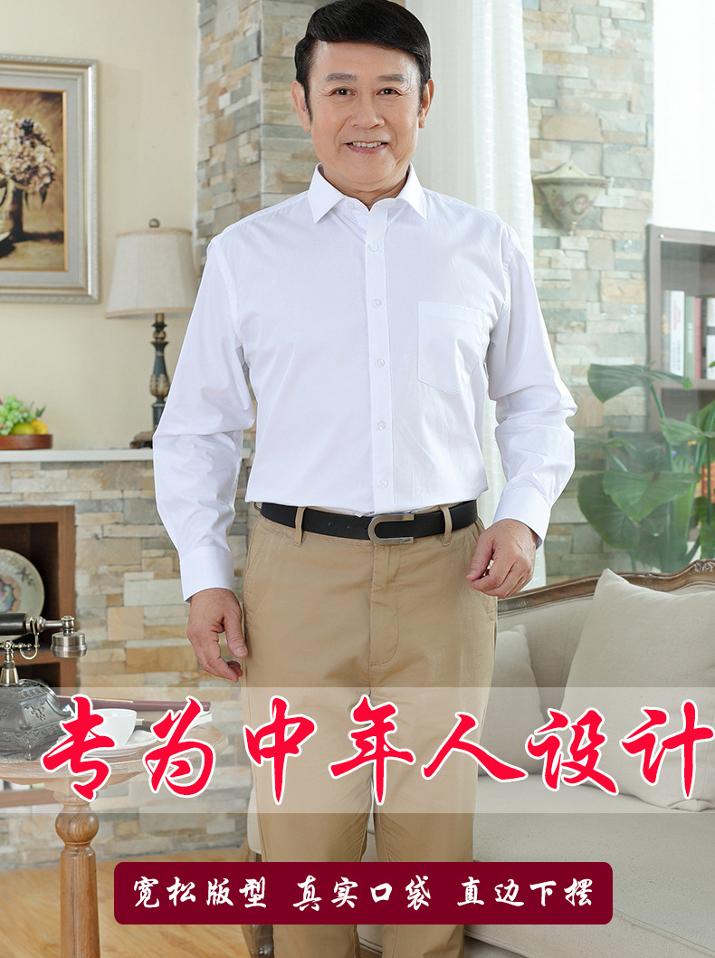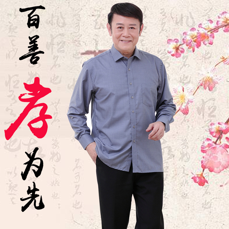 중년 및 노인 남성용 긴팔 셔츠 봄과 가을 아빠 캐주얼 다리미 프리 셔츠 스트레이트 튜브 느슨한 버전 인치 옷 도매스토어 가기