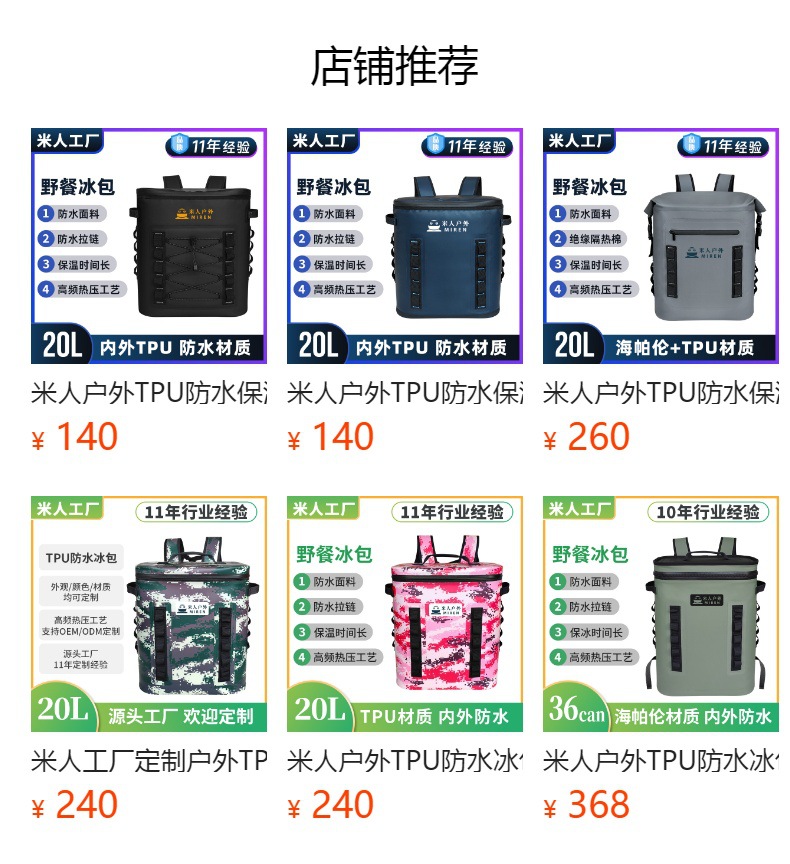 미렌 야외 TPU 방수 단열 배낭 캠핑 피크닉 휴대용 아이스 팩 대용량 내구성 도시락 가방스토어 가기