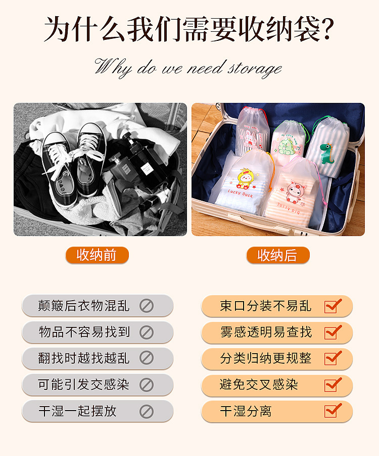 젖빛 번들 포켓 타월 양말 포장 가방 여행 귀여운 보관 가방 신발 분류 만화 포장 가방 도매스토어 가기
