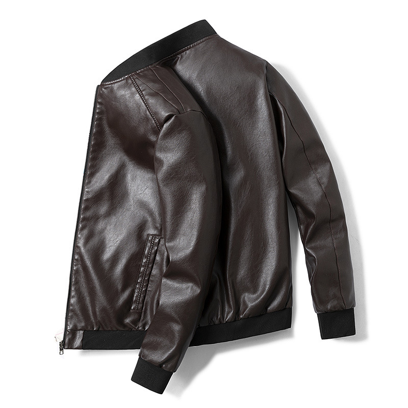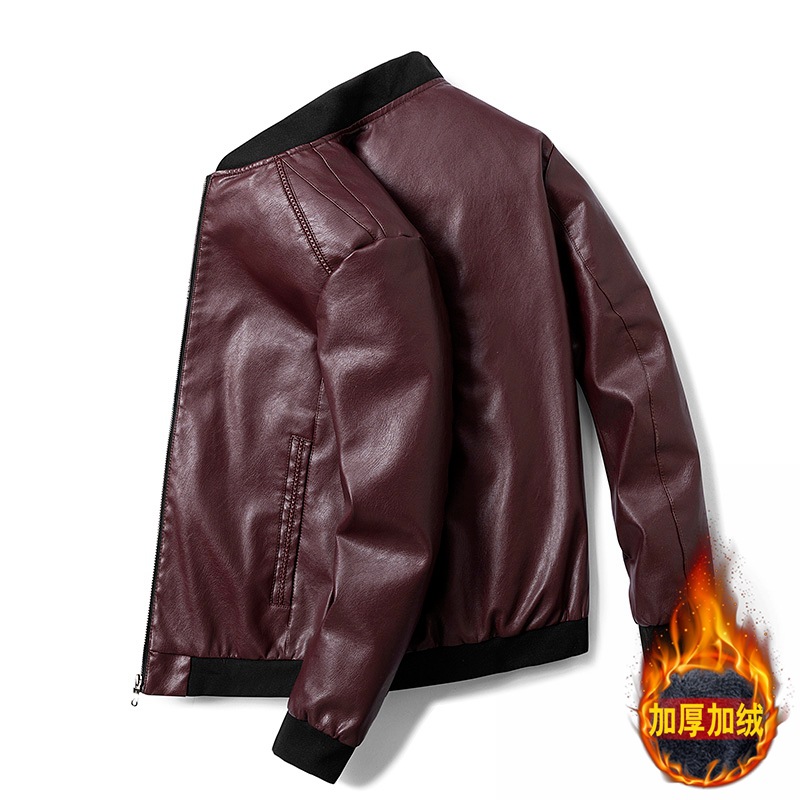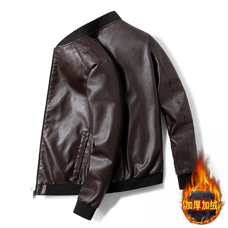 5919 가죽 남자의 기모 겨울 새로운 한국 스타일 세로 칼라 슬림 핏 가죽 자켓 캐주얼 PU 오토바이 가죽 자켓