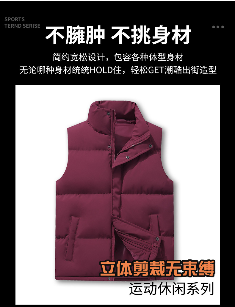 가을과 겨울 새로운 조끼 남성용 스탠드 칼라 다운 코튼 재킷 여성용 한국 스타일 유행 조끼 로고 인쇄 탑스토어 가기
