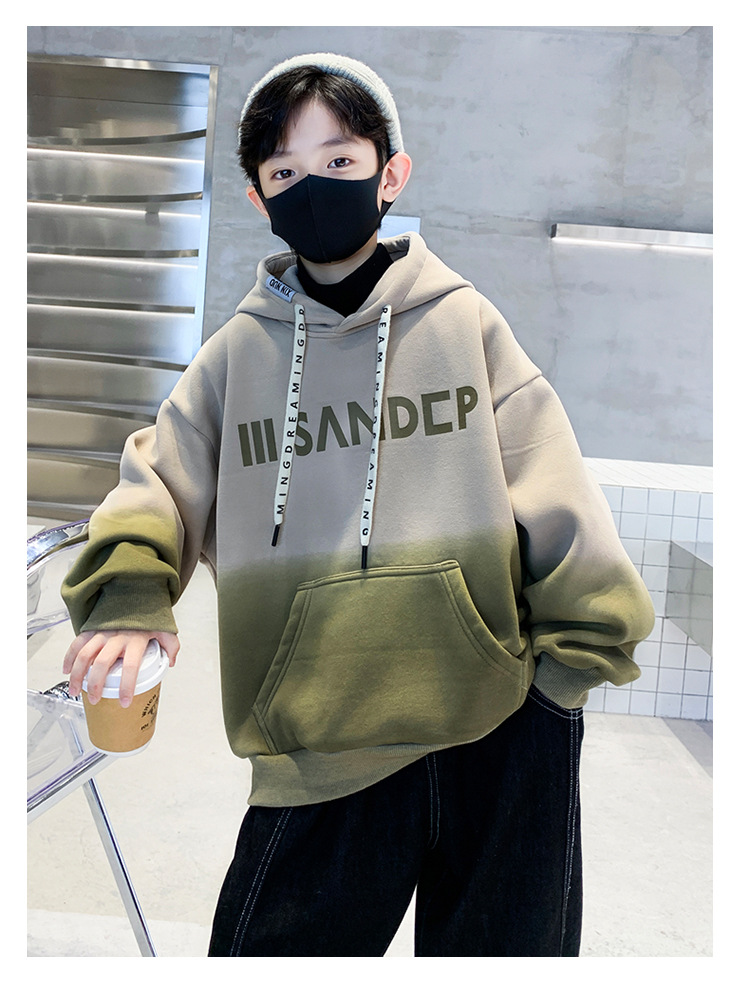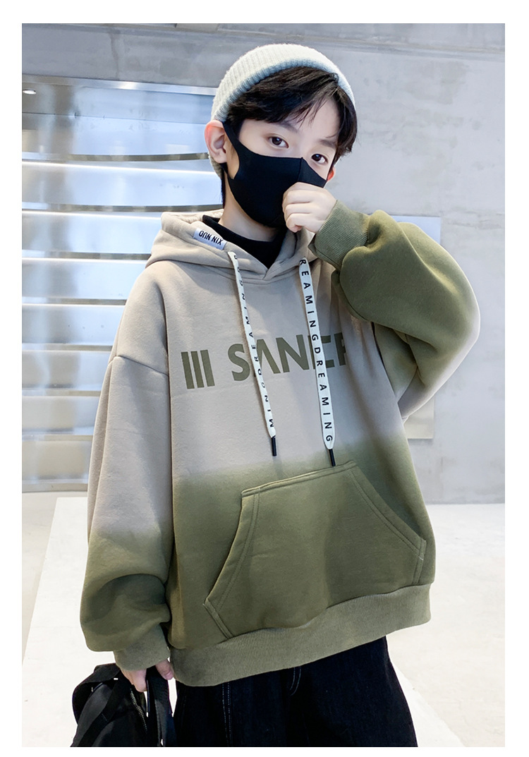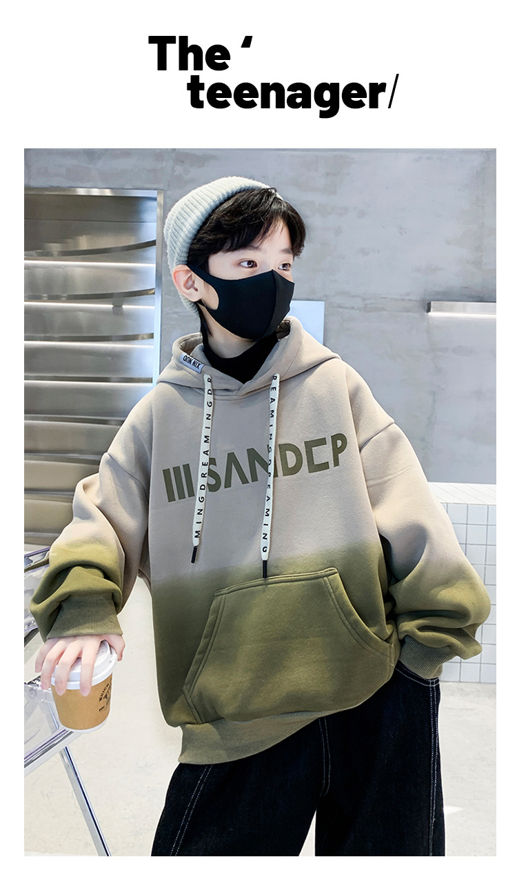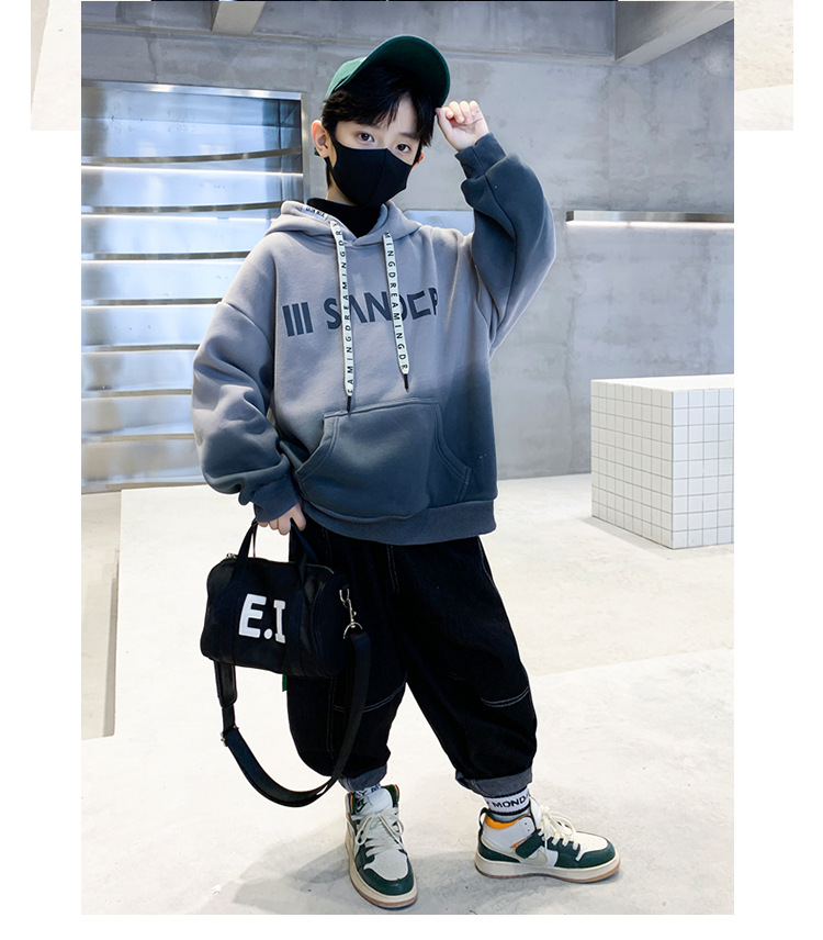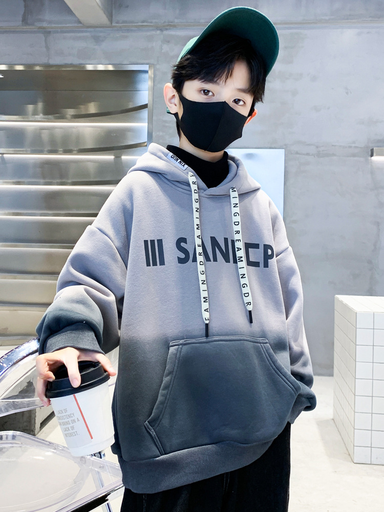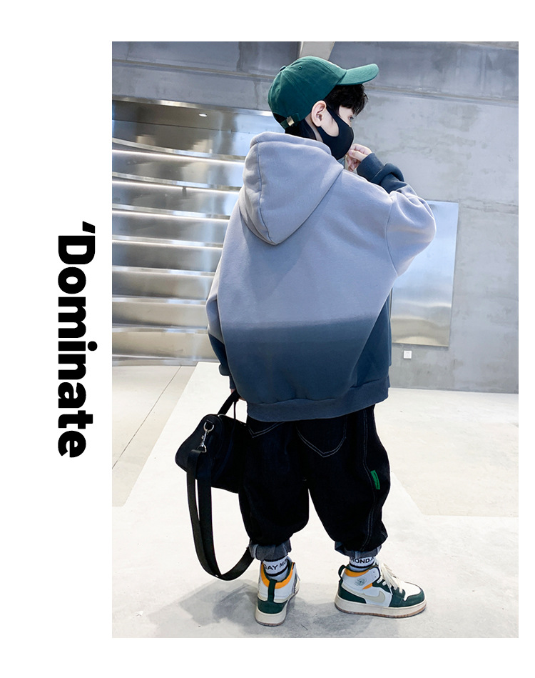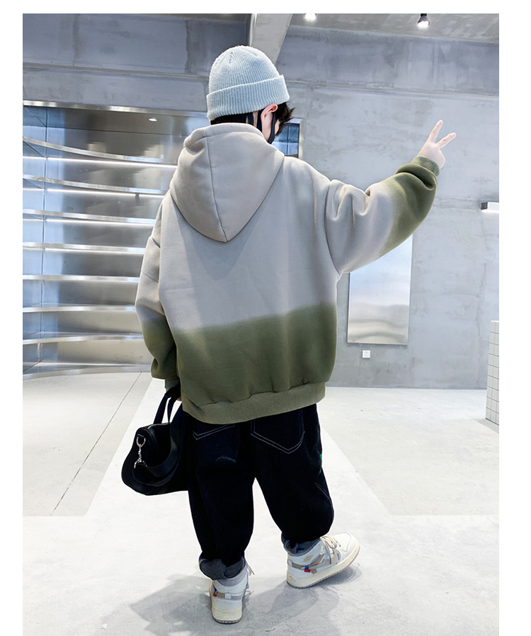 Zhenbao 아동 의류 어린이 늦은 가을과 겨울 옷 소년 매달려 염색 기모 두꺼운 후드 운동복 높은 상품 중형 및 대형 어린이 패션스토어 가기