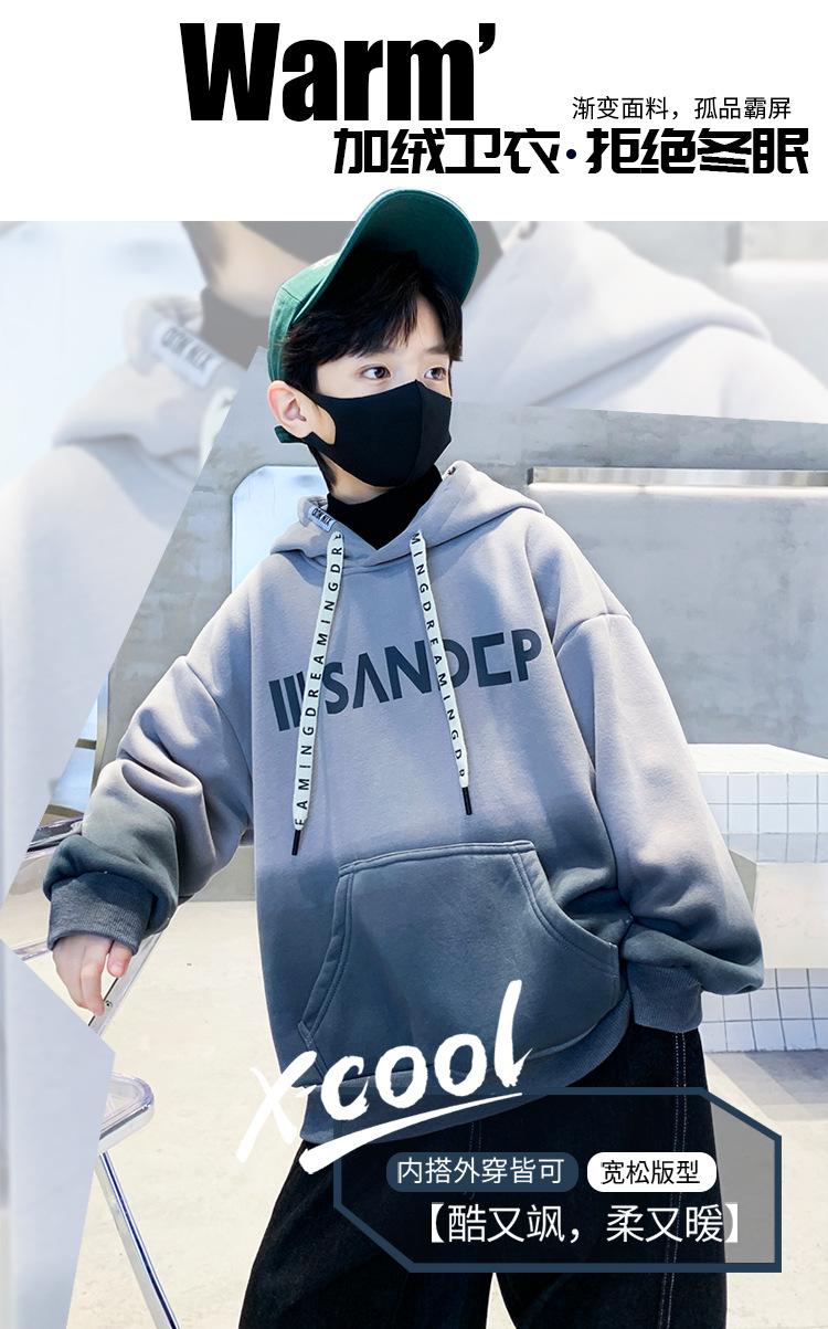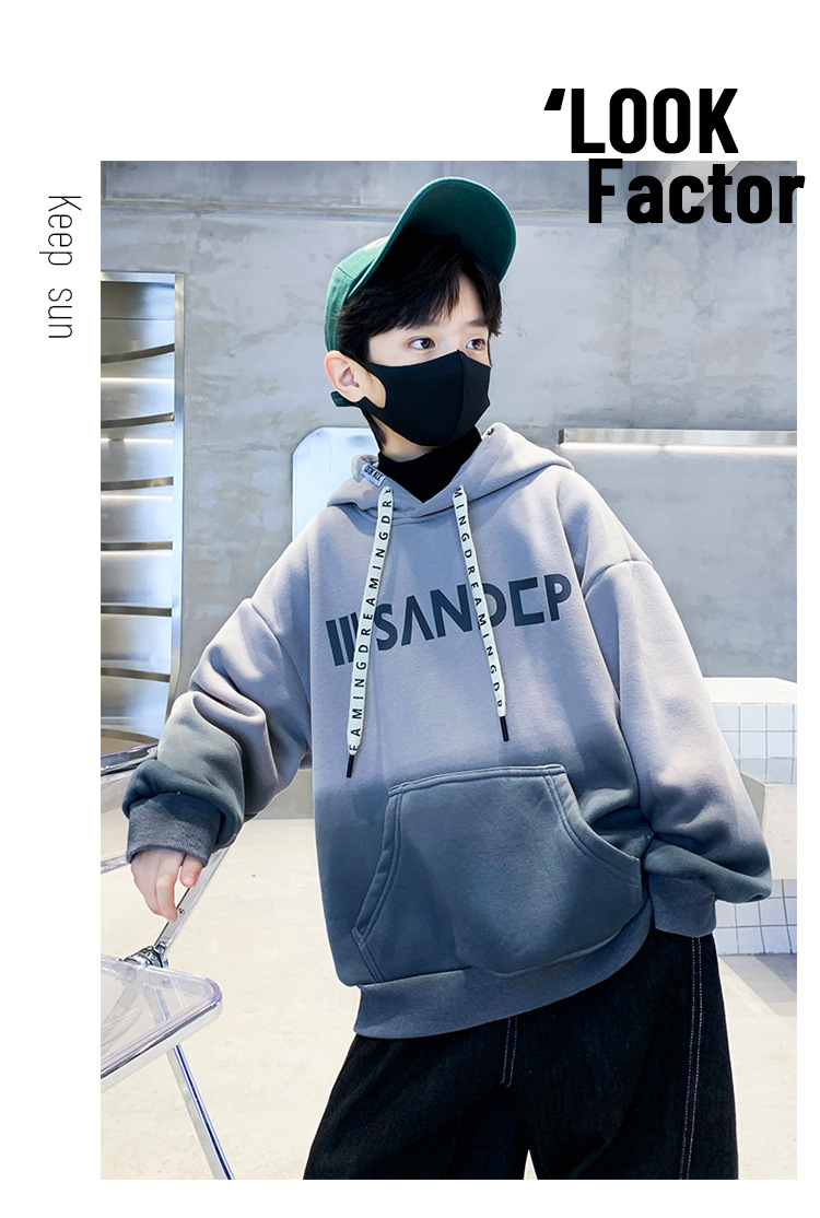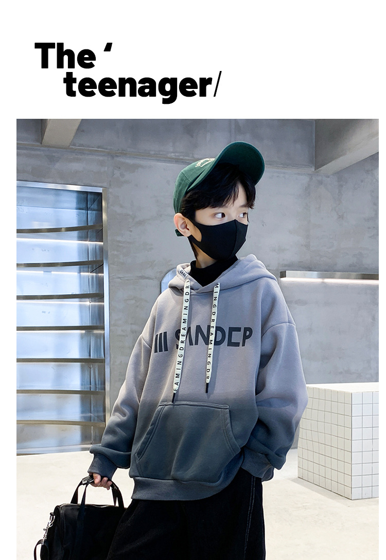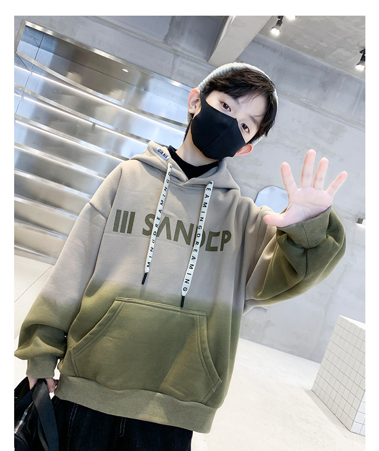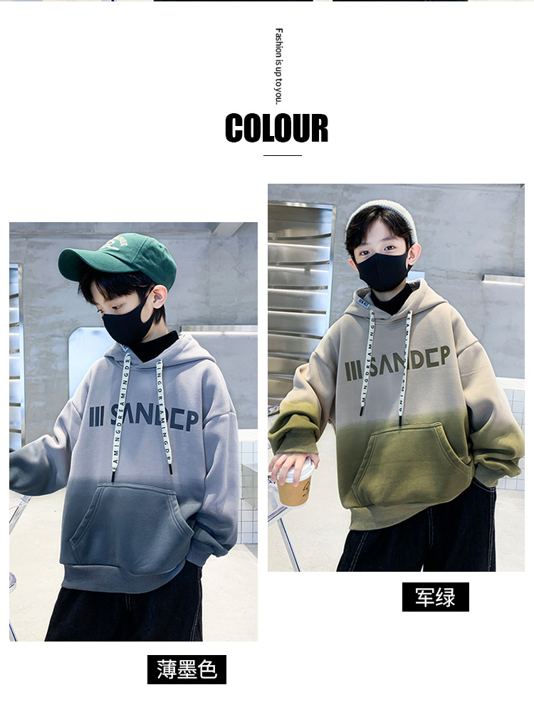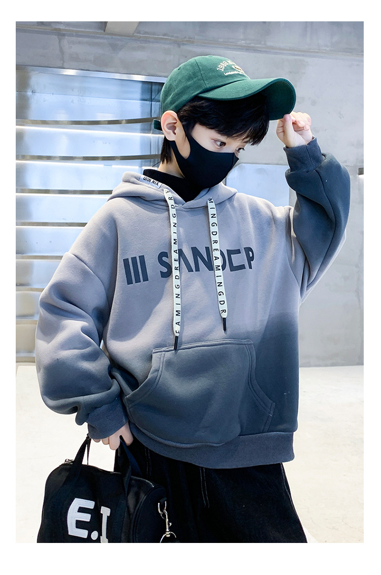 Zhenbao 아동 의류 어린이 늦은 가을과 겨울 옷 소년 매달려 염색 기모 두꺼운 후드 운동복 높은 상품 중형 및 대형 어린이 패션스토어 가기