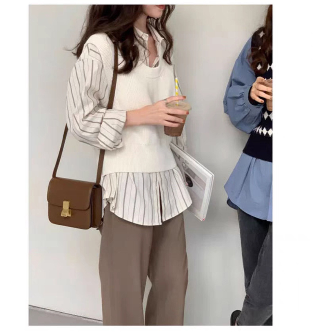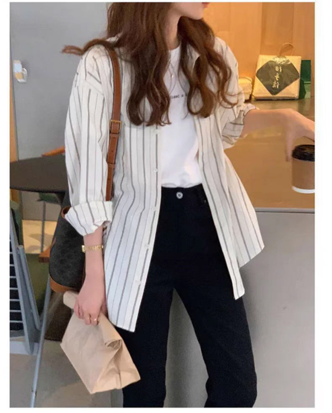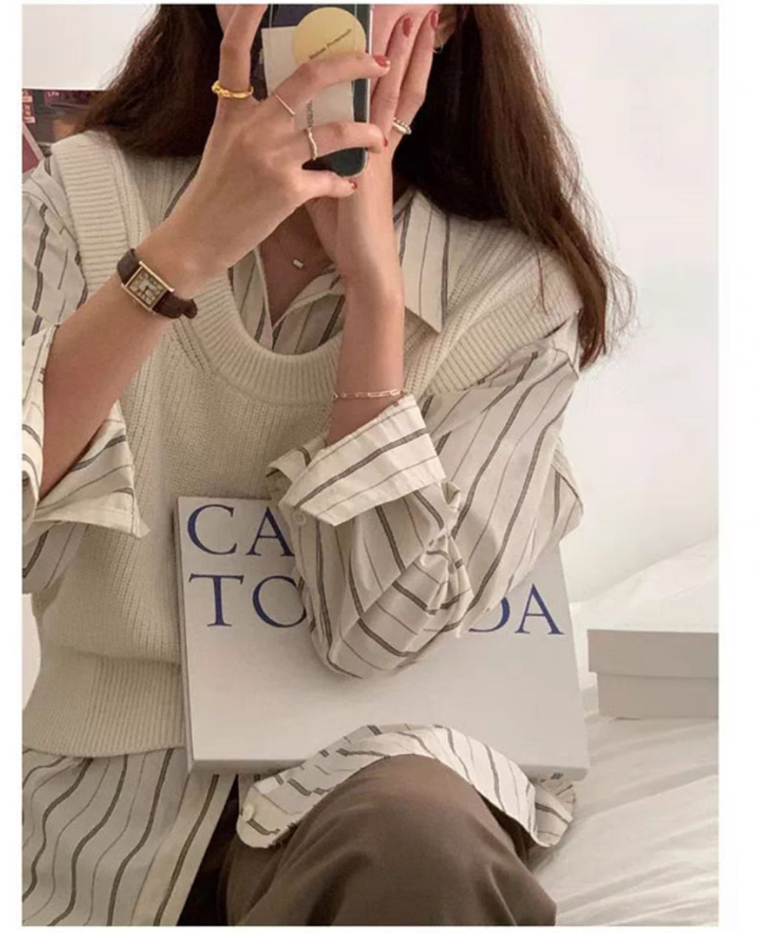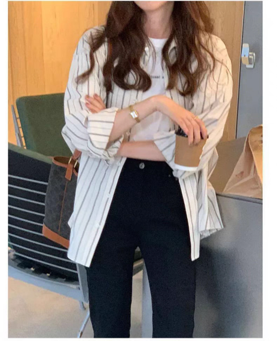 초봄 2025 신상 세로 스트라이프 셔츠 여성 디자인 틈새 긴팔 셔츠 루즈하고 시크한 얇은 탑스토어 가기