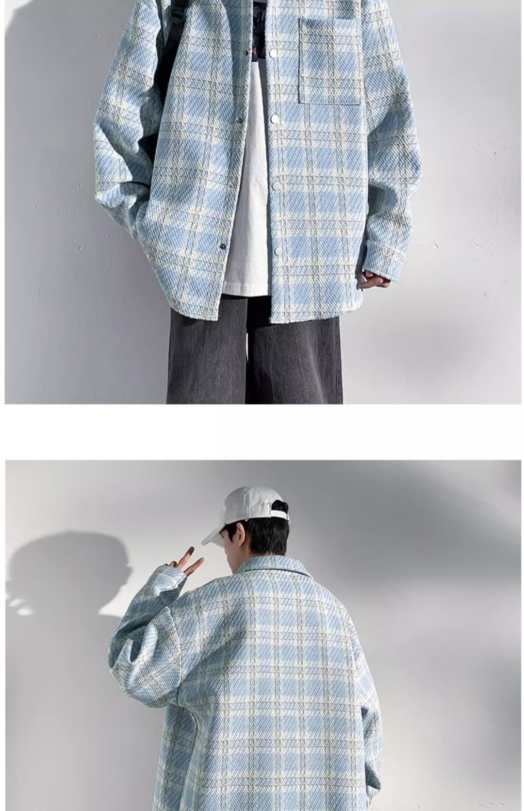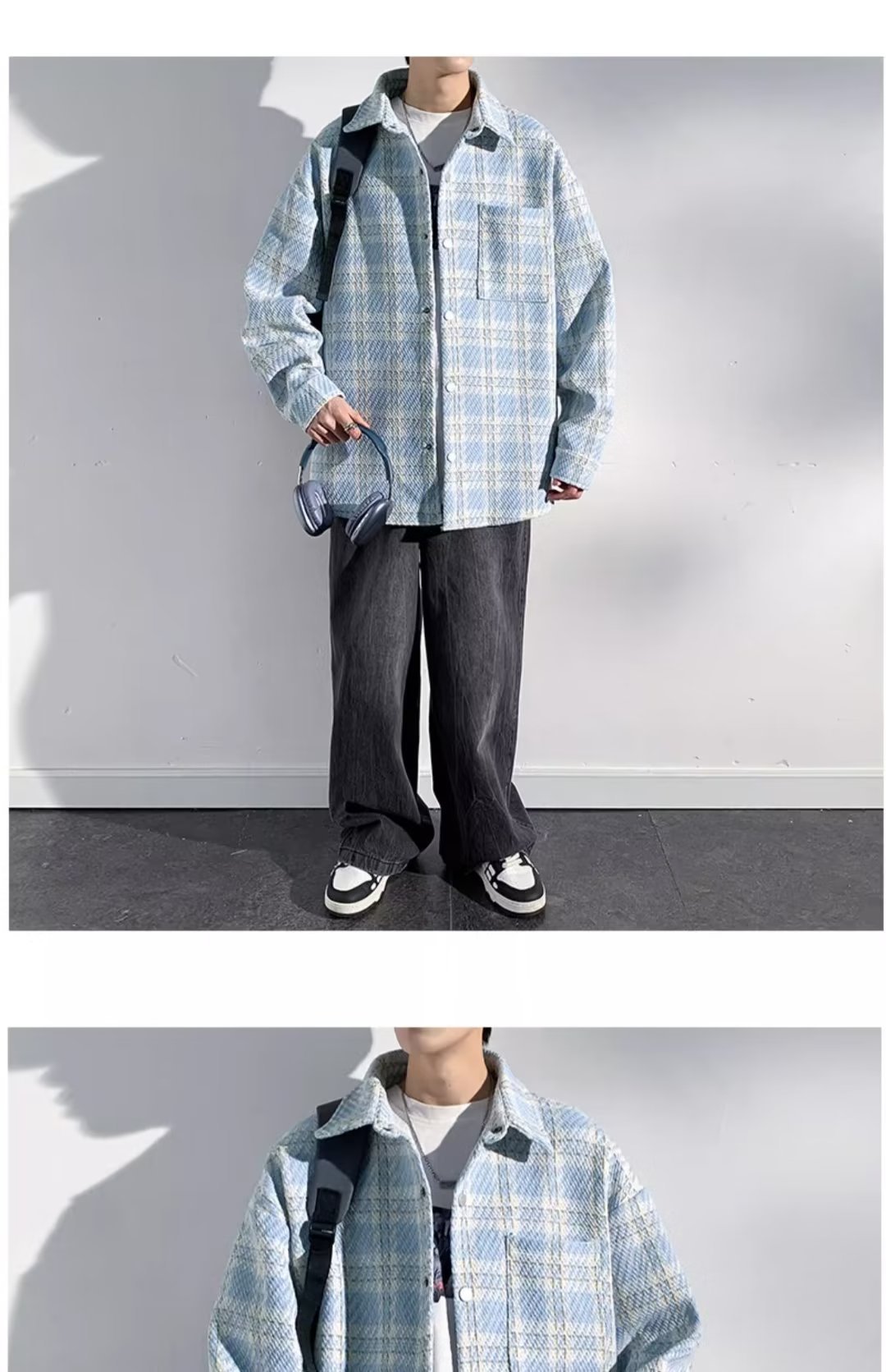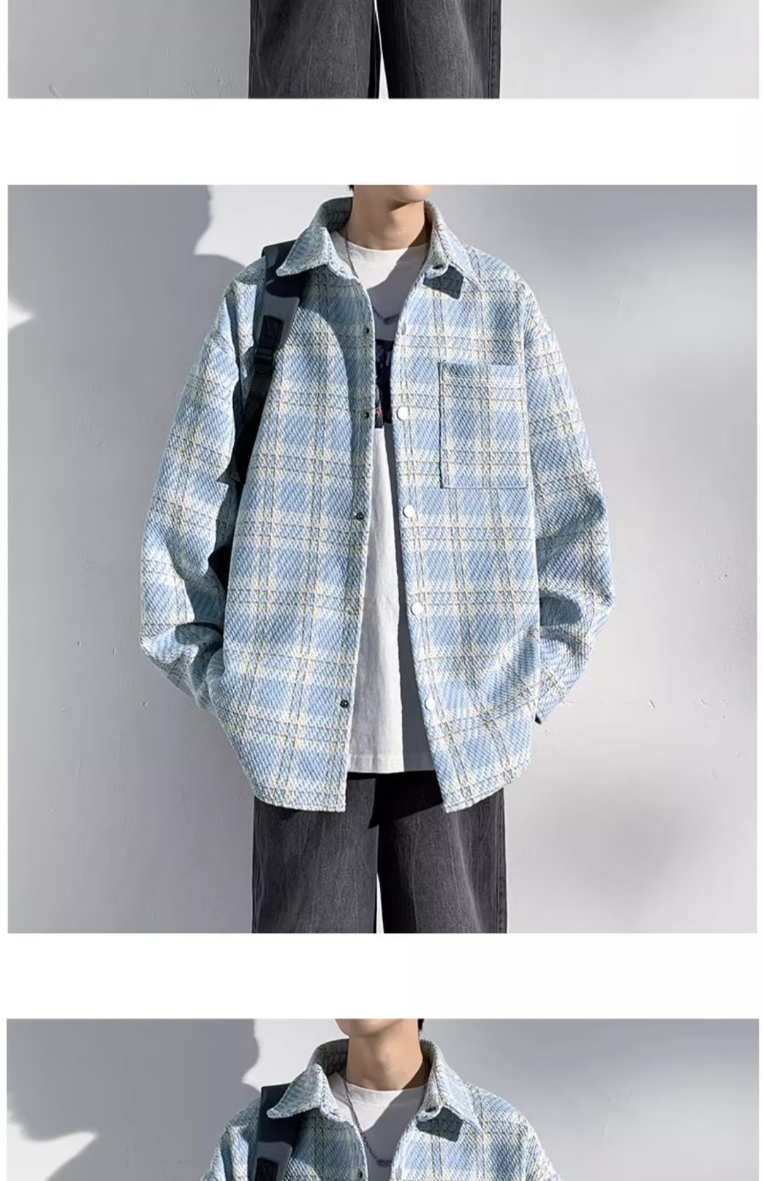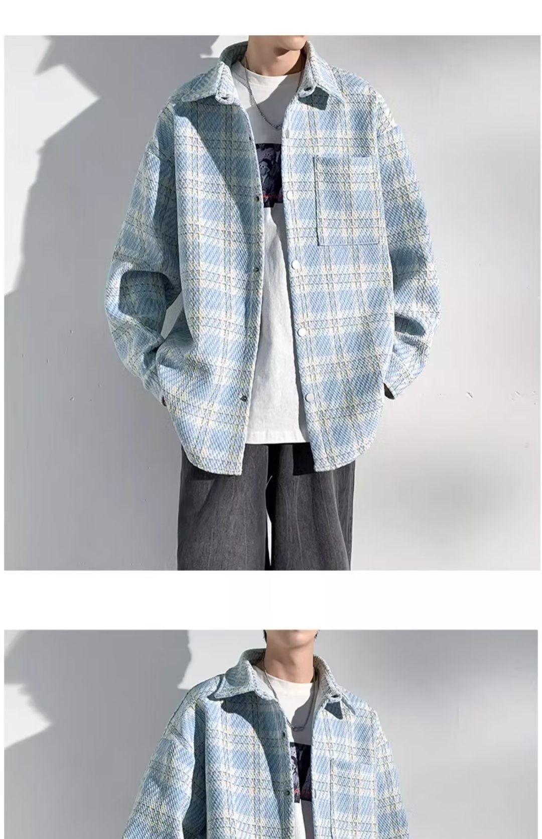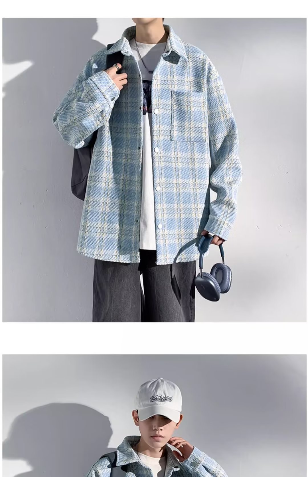 셔츠 남성용 봄과 가을 샤넬 스타일 코트 한국식 블루 틈새 프랑스 스타일 빈티지 캐주얼 탑스토어 가기
