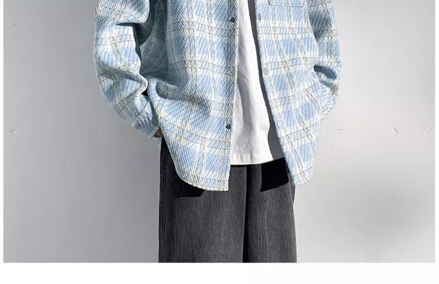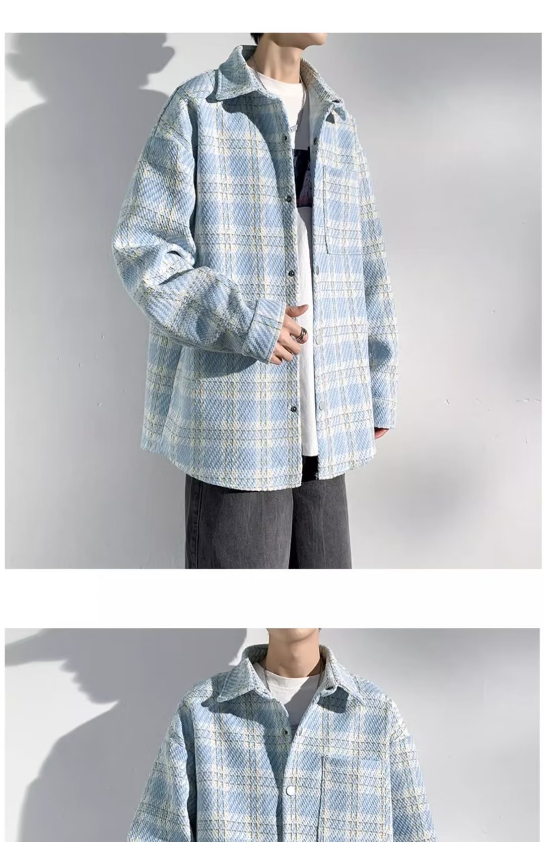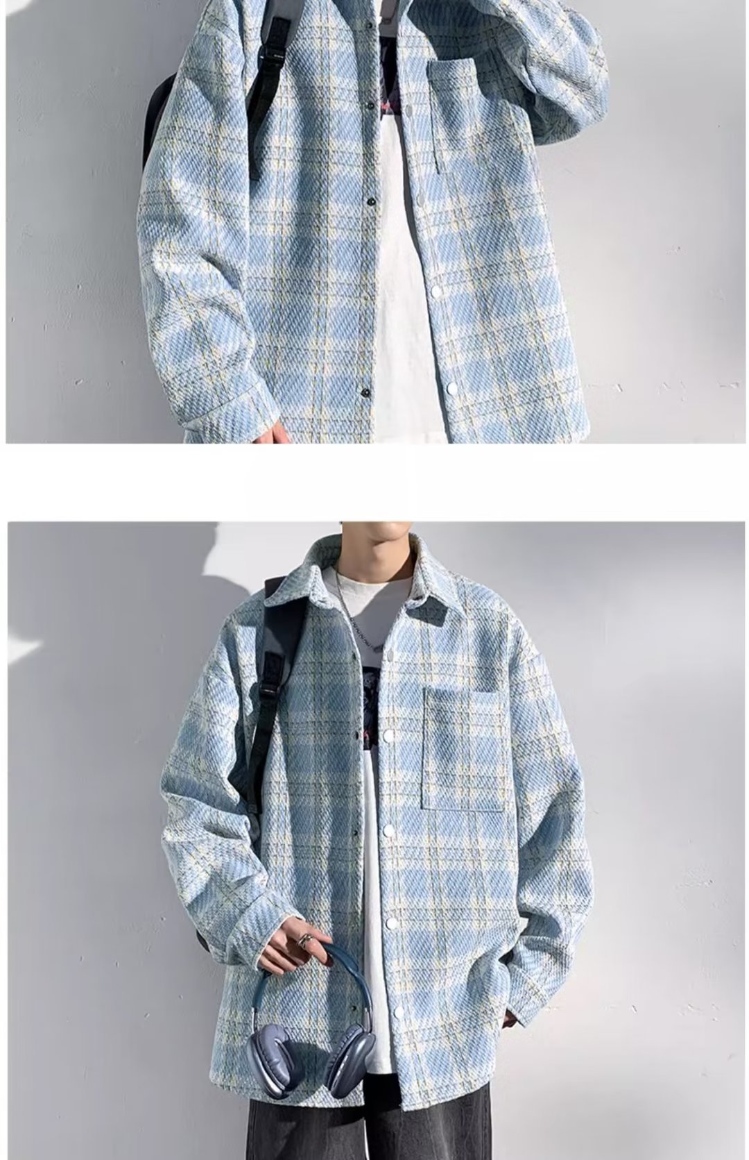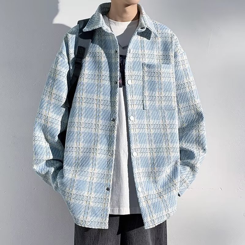 셔츠 남성용 봄과 가을 샤넬 스타일 코트 한국식 블루 틈새 프랑스 스타일 빈티지 캐주얼 탑스토어 가기