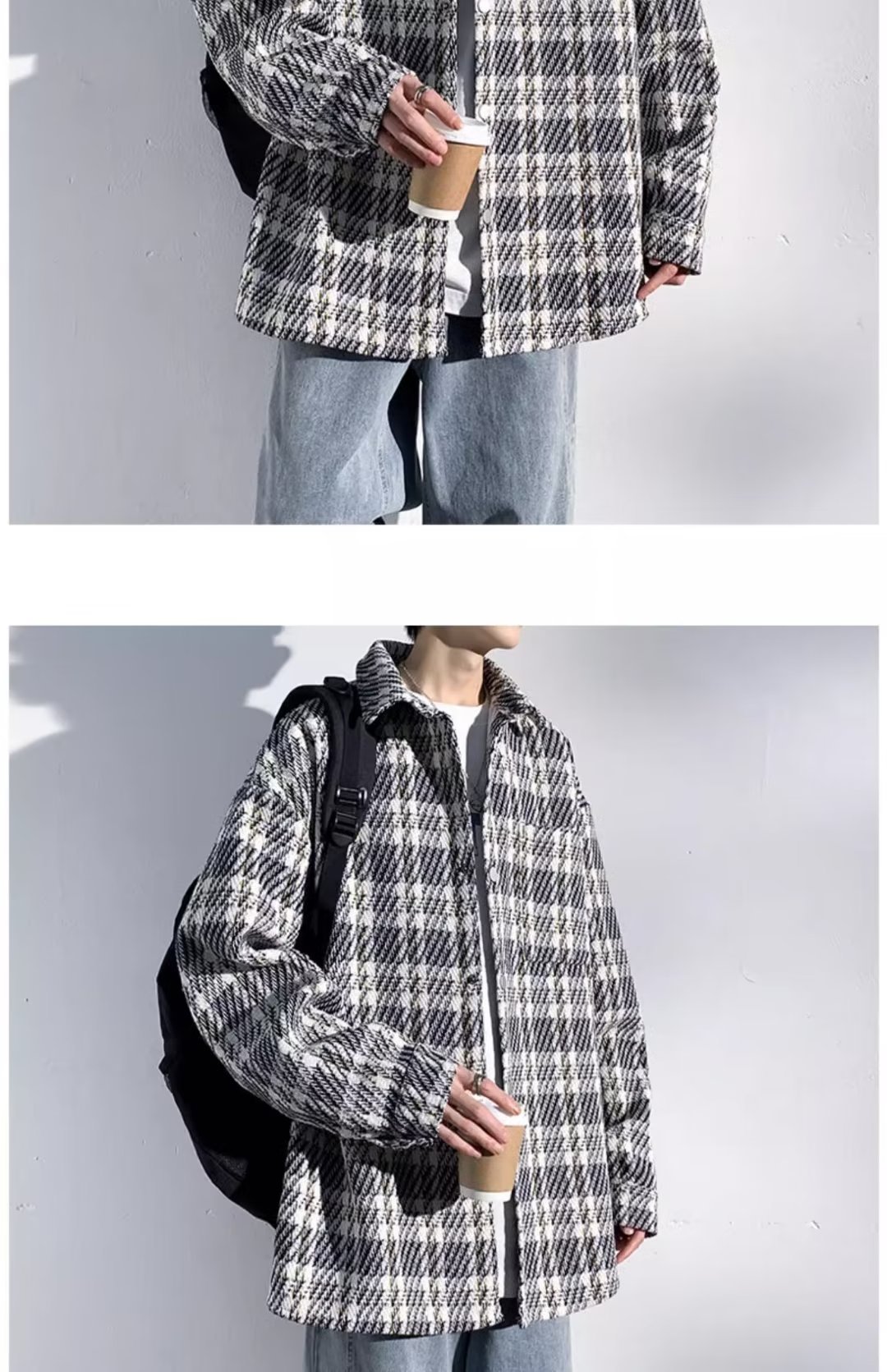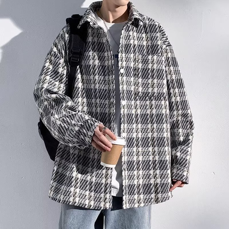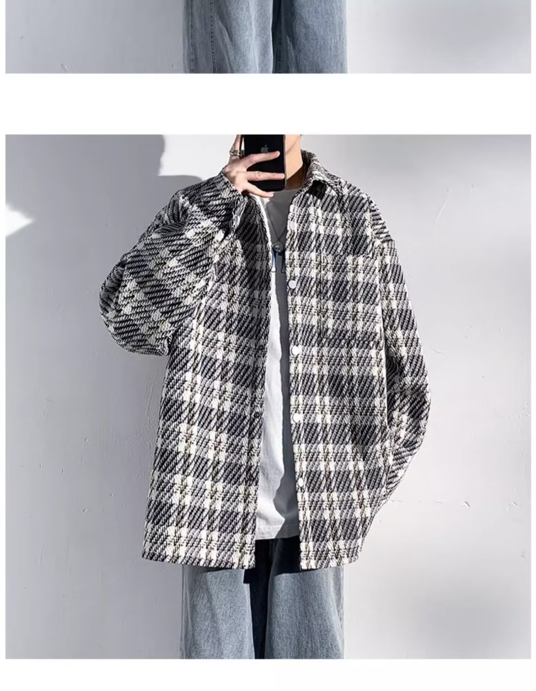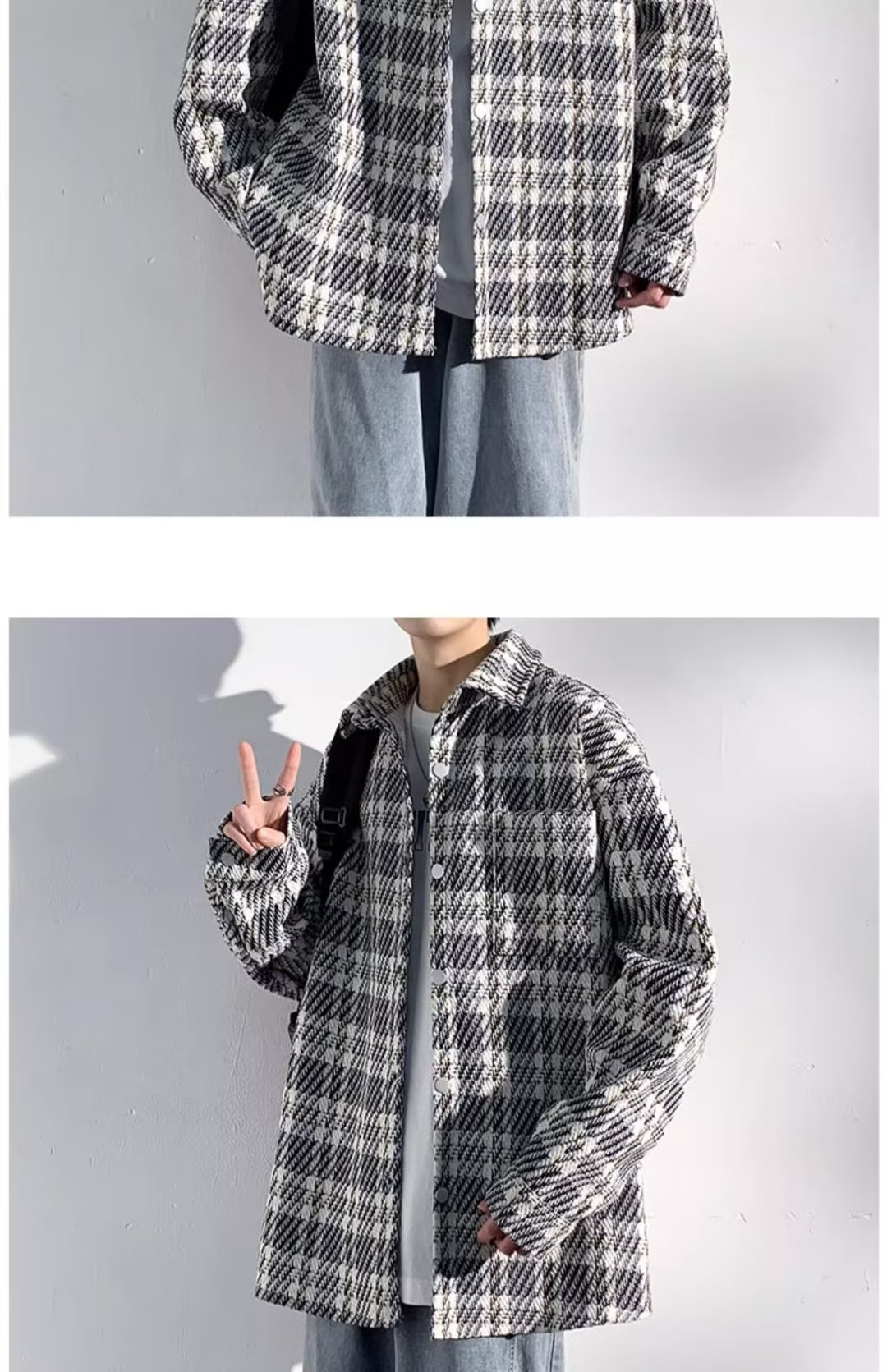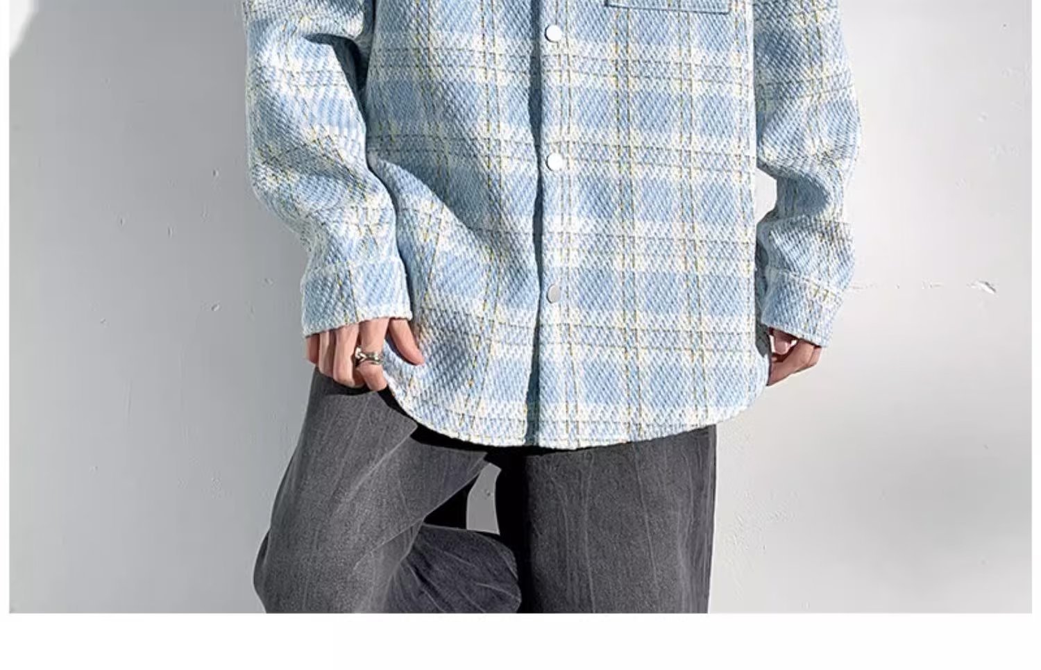 셔츠 남성용 봄과 가을 샤넬 스타일 코트 한국식 블루 틈새 프랑스 스타일 빈티지 캐주얼 탑스토어 가기