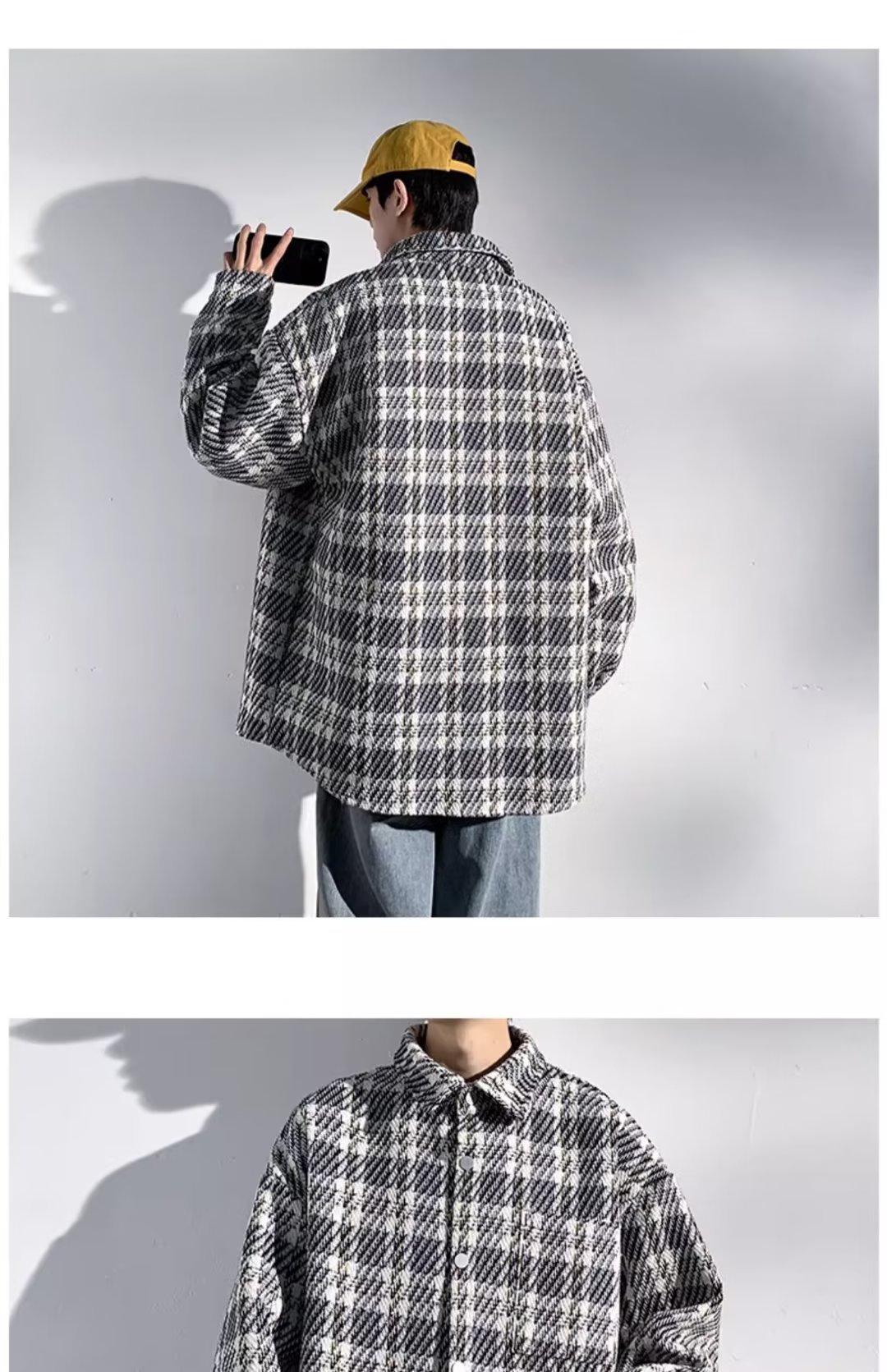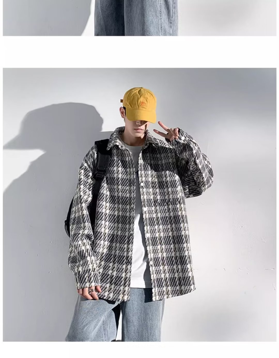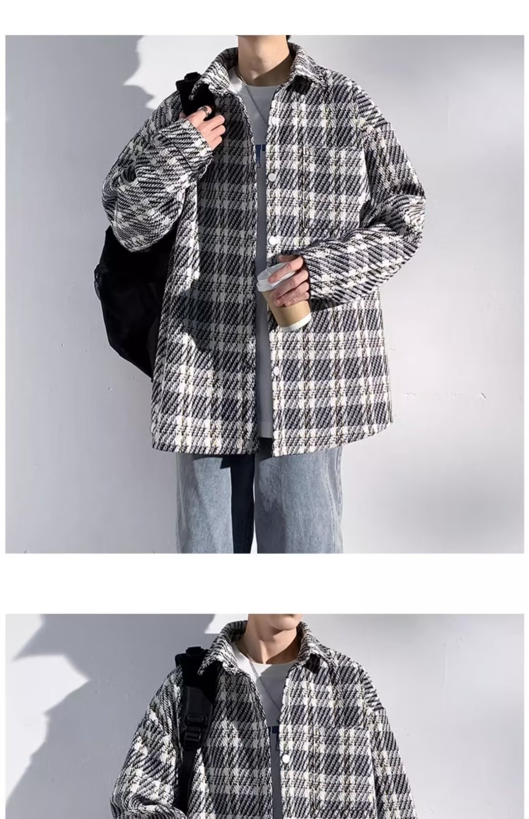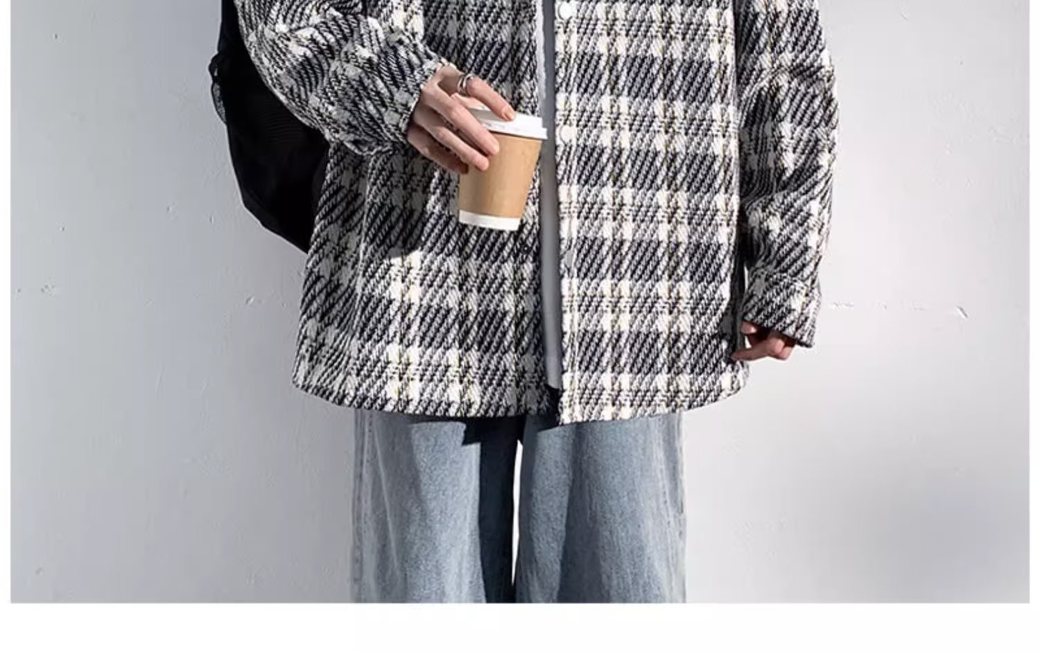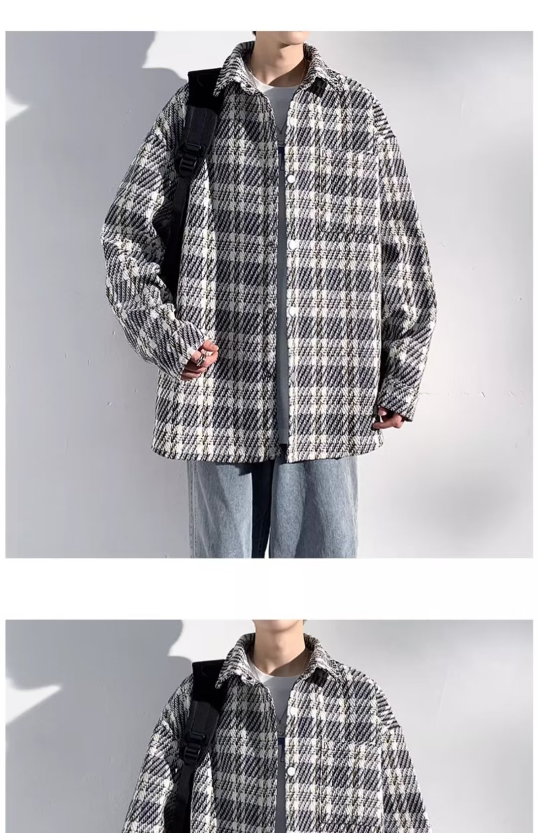 셔츠 남성용 봄과 가을 샤넬 스타일 코트 한국식 블루 틈새 프랑스 스타일 빈티지 캐주얼 탑스토어 가기