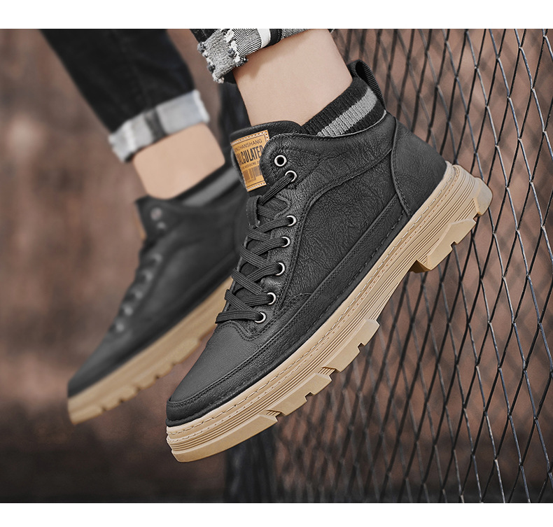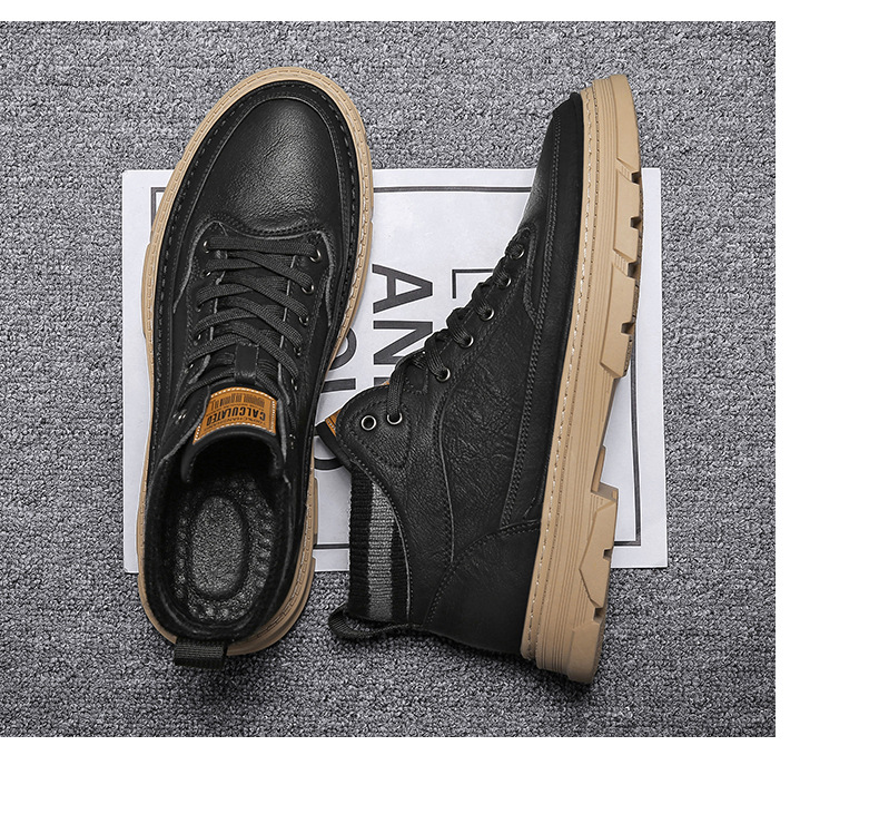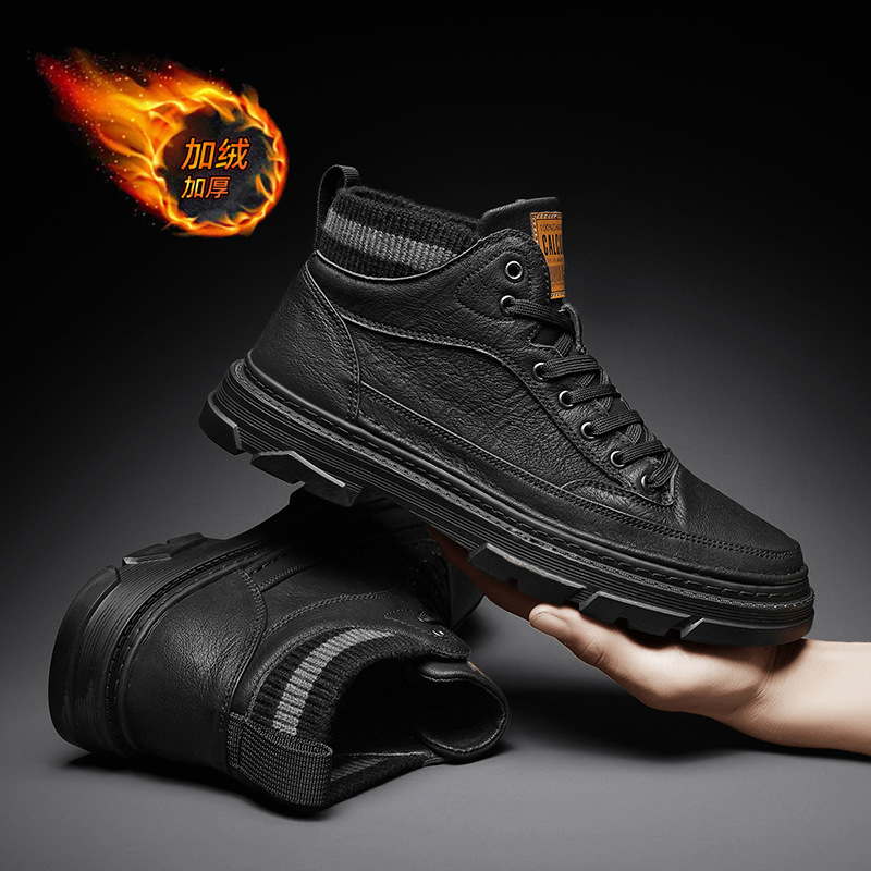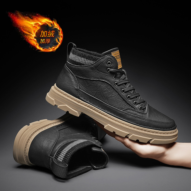 가을과 겨울 기모 마틴 부츠 패션 새로운 영국 스타일 가죽 기모 따뜻한 발목 부츠 스포츠 작업복 유행 남성 부츠