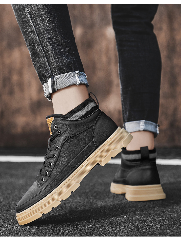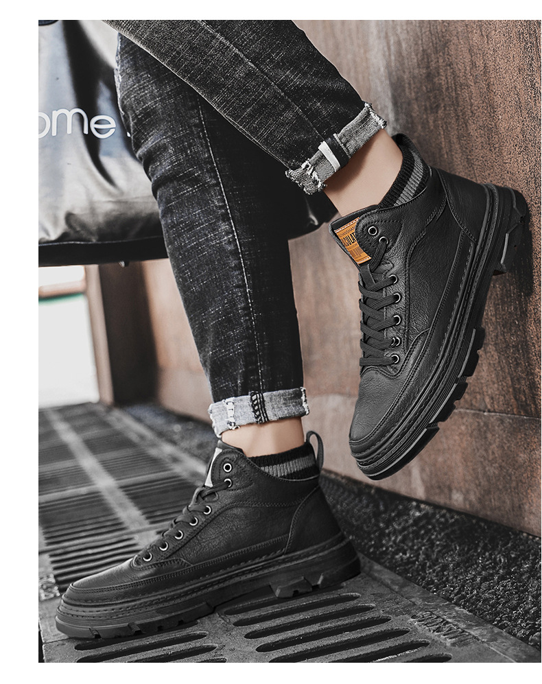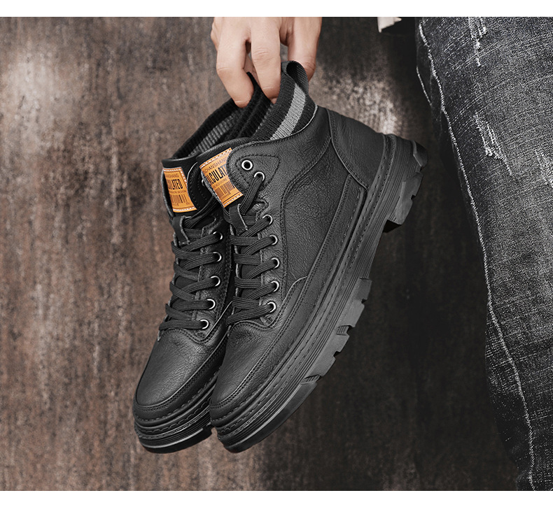 가을과 겨울 기모 마틴 부츠 패션 새로운 영국 스타일 가죽 기모 따뜻한 발목 부츠 스포츠 작업복 유행 남성 부츠스토어 가기