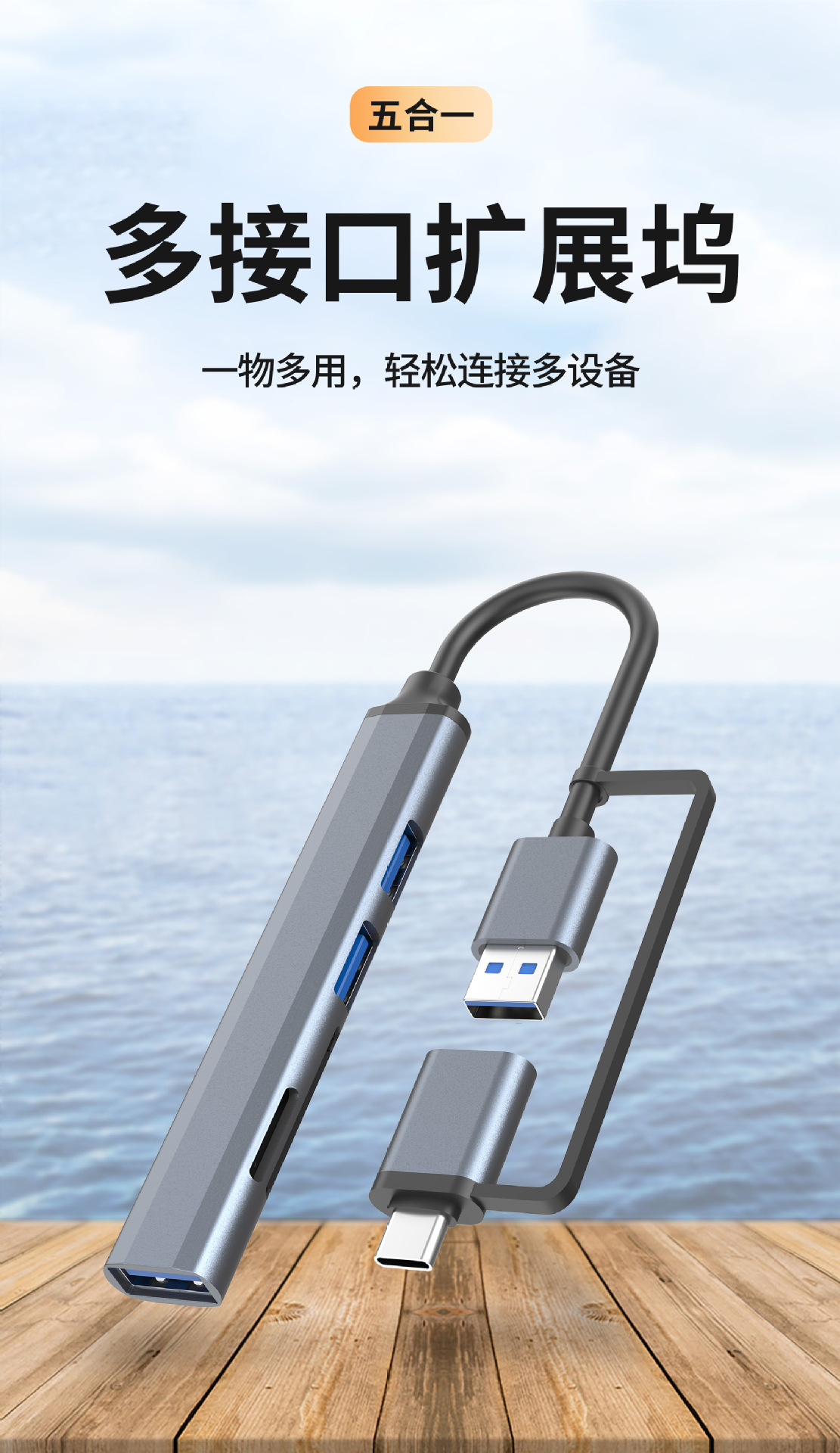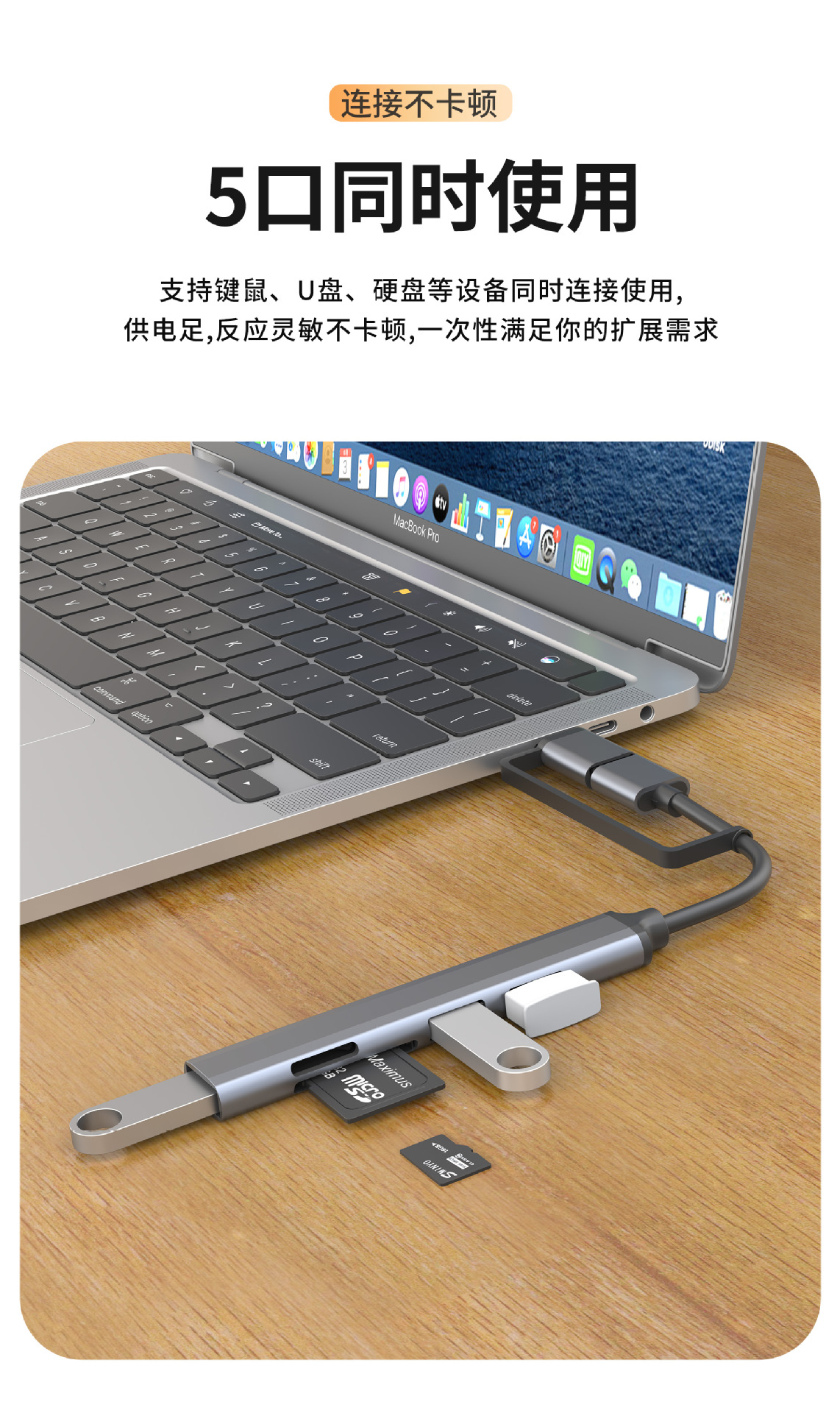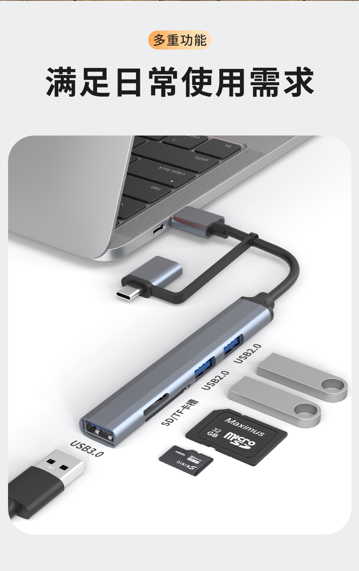 • Type-C5 in 1 [USB3.0*1 + USB2.0 * 2 + SD/TF]