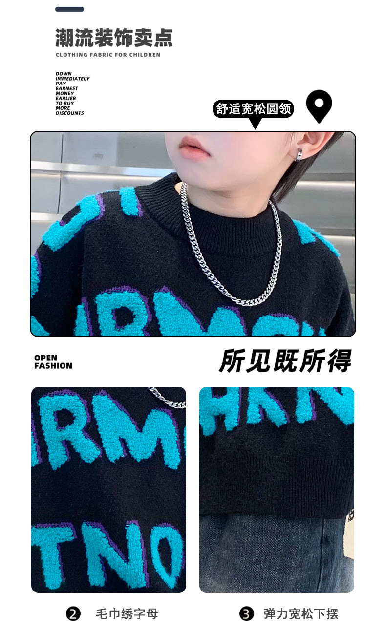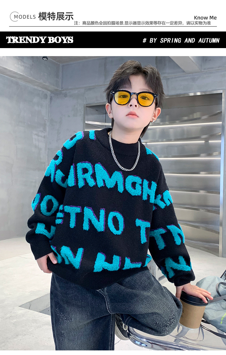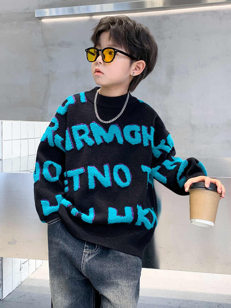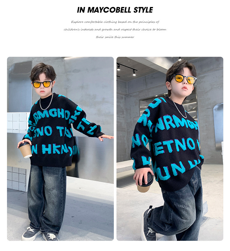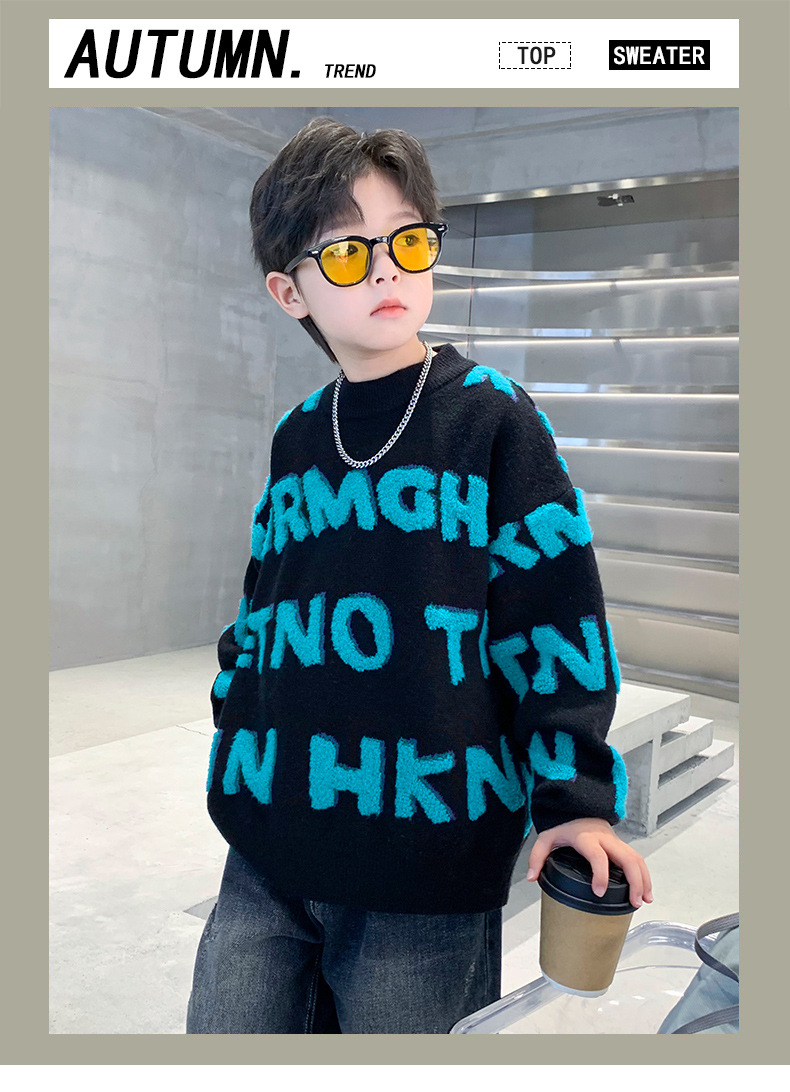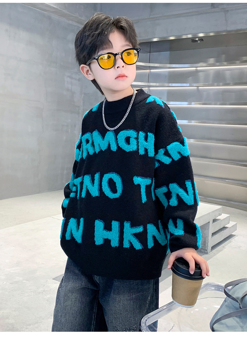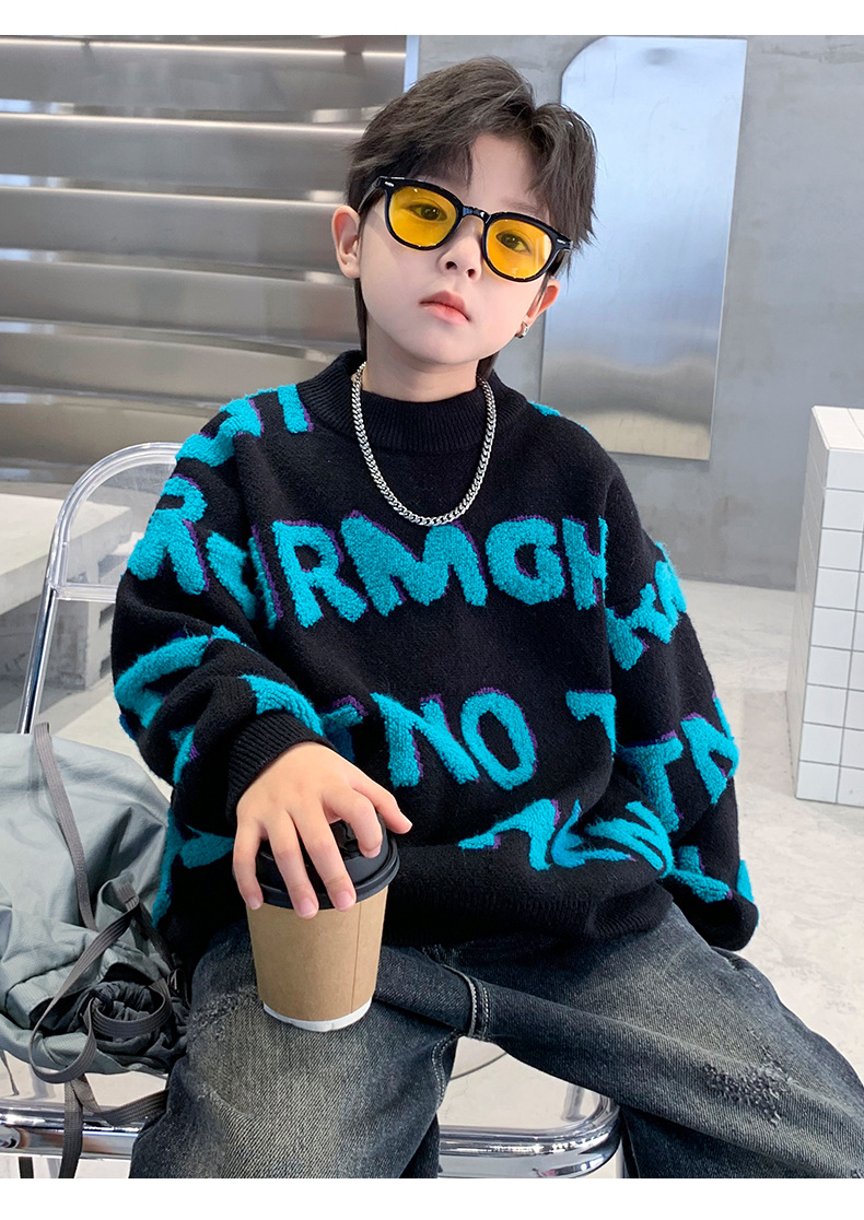 어린이 소년의 스웨터 2024 년 새로운 큰 소년의 겨울 두꺼운 니트 탑 겨울베이스 셔츠스토어 가기