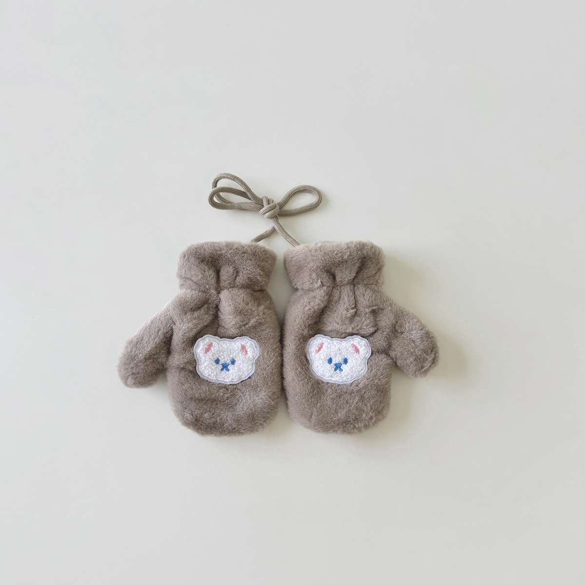 Qiunan 한국 어린이 장갑 겨울에 만화 곰 소년과 소녀 손가락 매달려 목 봉제 아기 도매