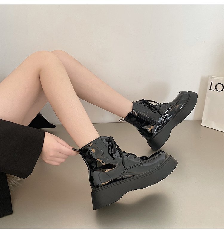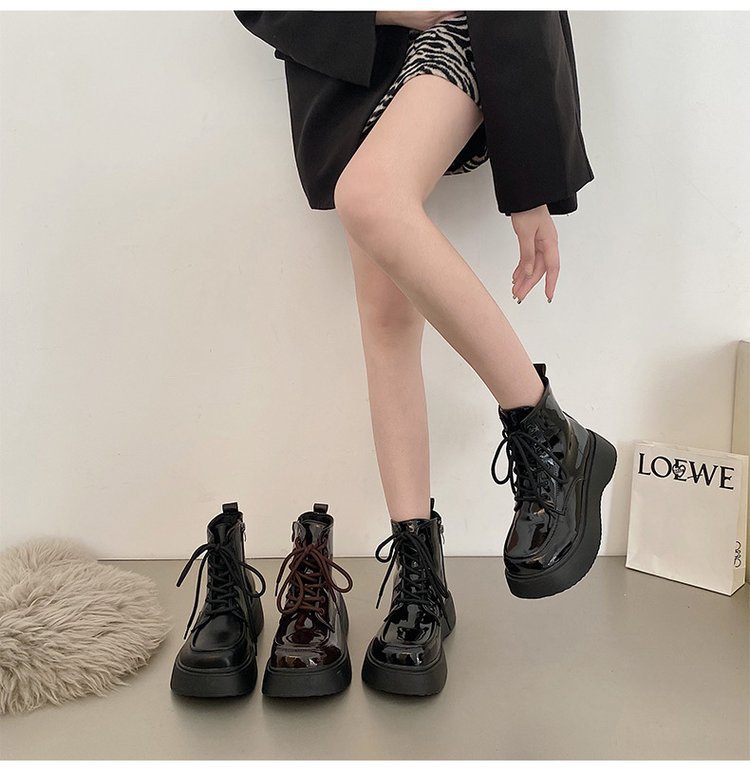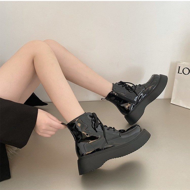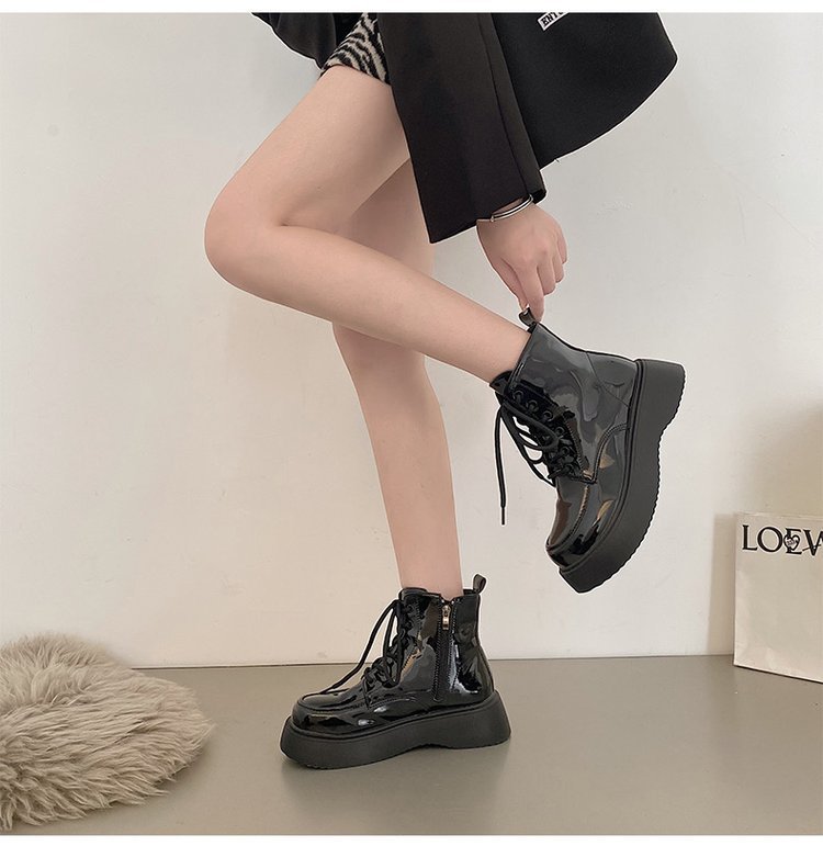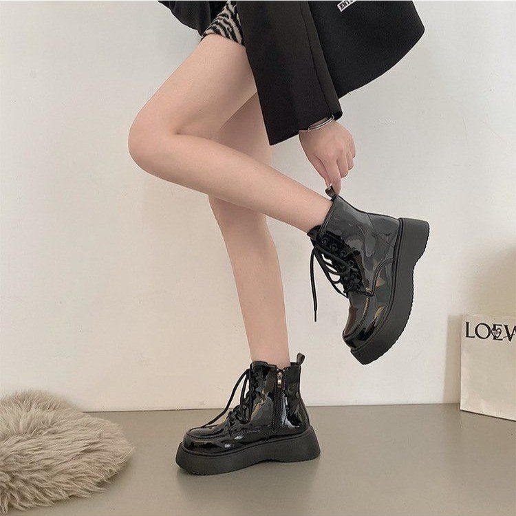 레트로 영국 스타일 여성 가죽 신발 마틴 부츠 여성용 2024 가을 겨울 신상 영국 스타일 두꺼운 밑창 키높이 숏부츠스토어 가기