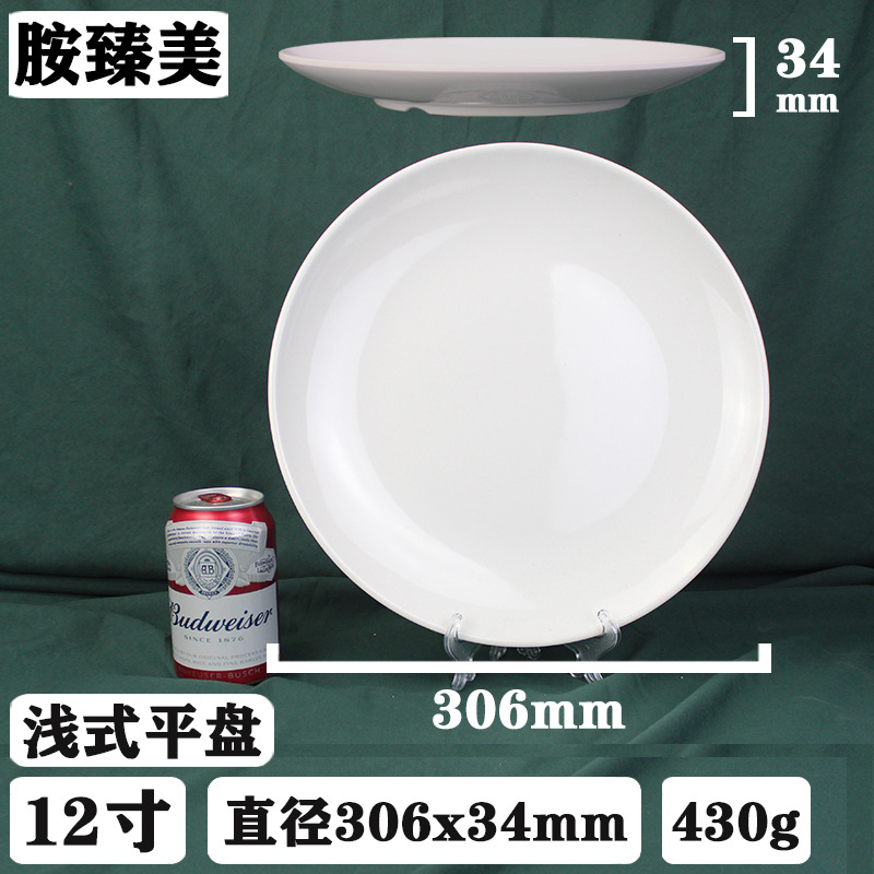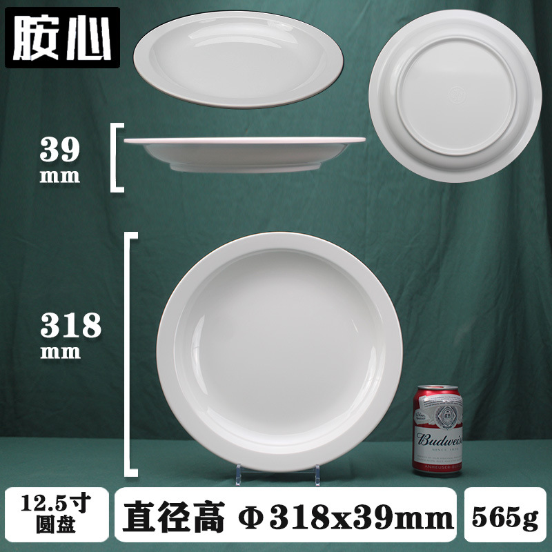 화이트 멜라민 디스크 호텔 레스토랑 상업용 도매 플라스틱 도자기 식기 쌀 뼈 접시 뷔페 플랫 플레이트스토어 가기
