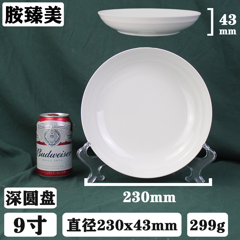 화이트 멜라민 디스크 호텔 레스토랑 상업용 도매 플라스틱 도자기 식기 쌀 뼈 접시 뷔페 플랫 플레이트