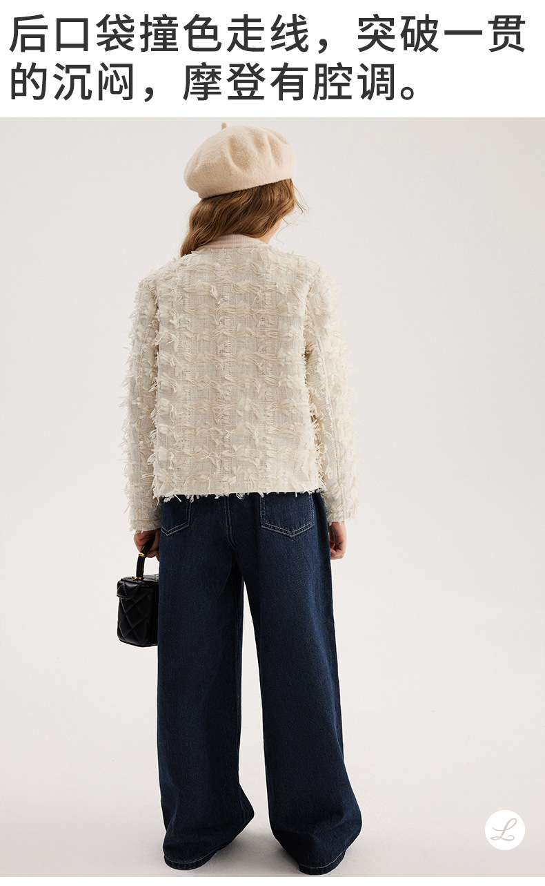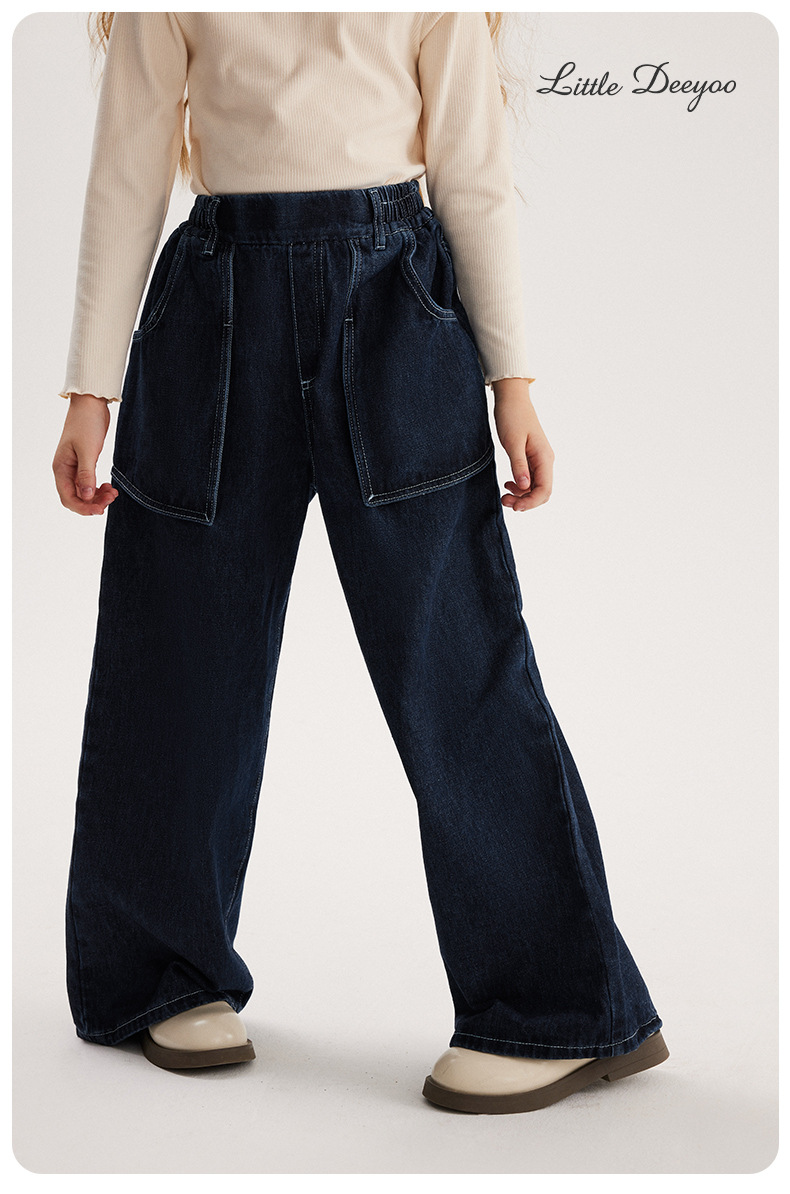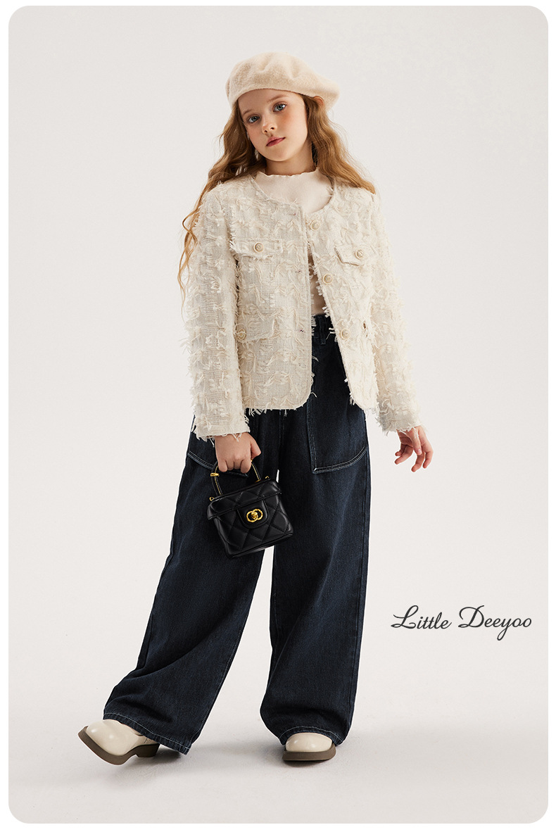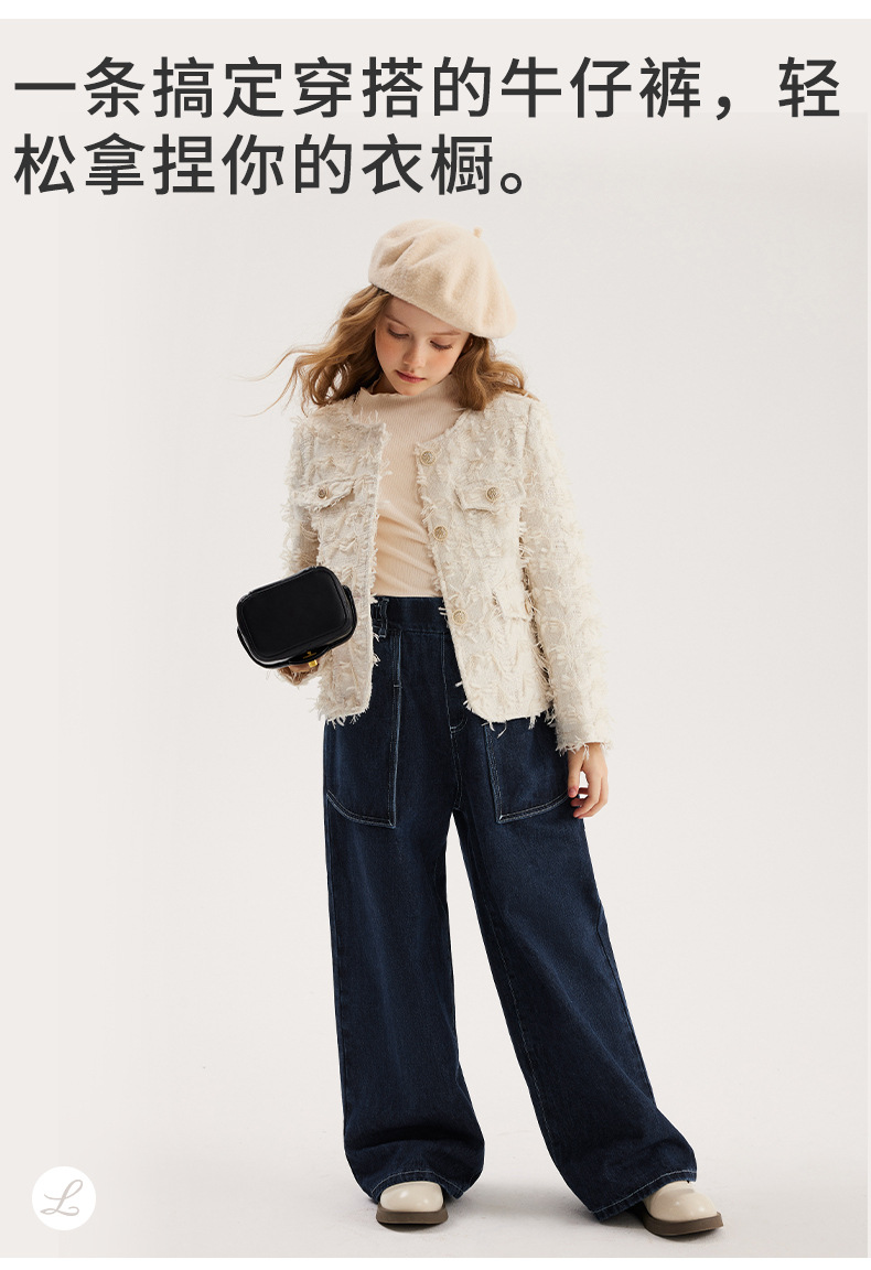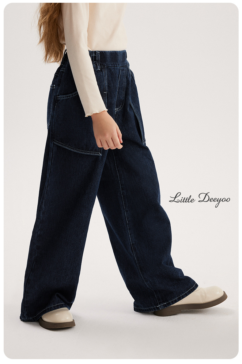 Xiaoding Youyoul 여자 밝은 라인 대비 스트레이트 청바지 2023 가을과 겨울 새로운 큰 어린이 복고풍 느낌 넓은 다리 바지