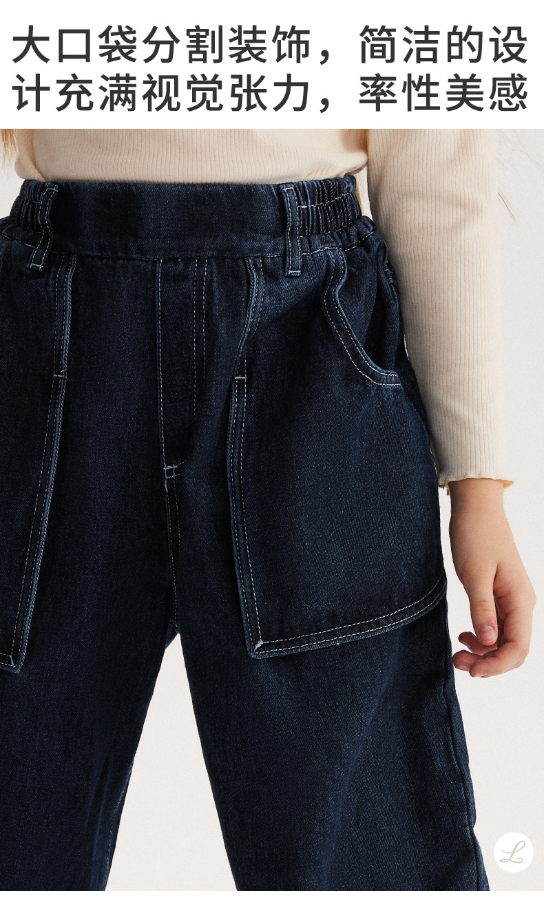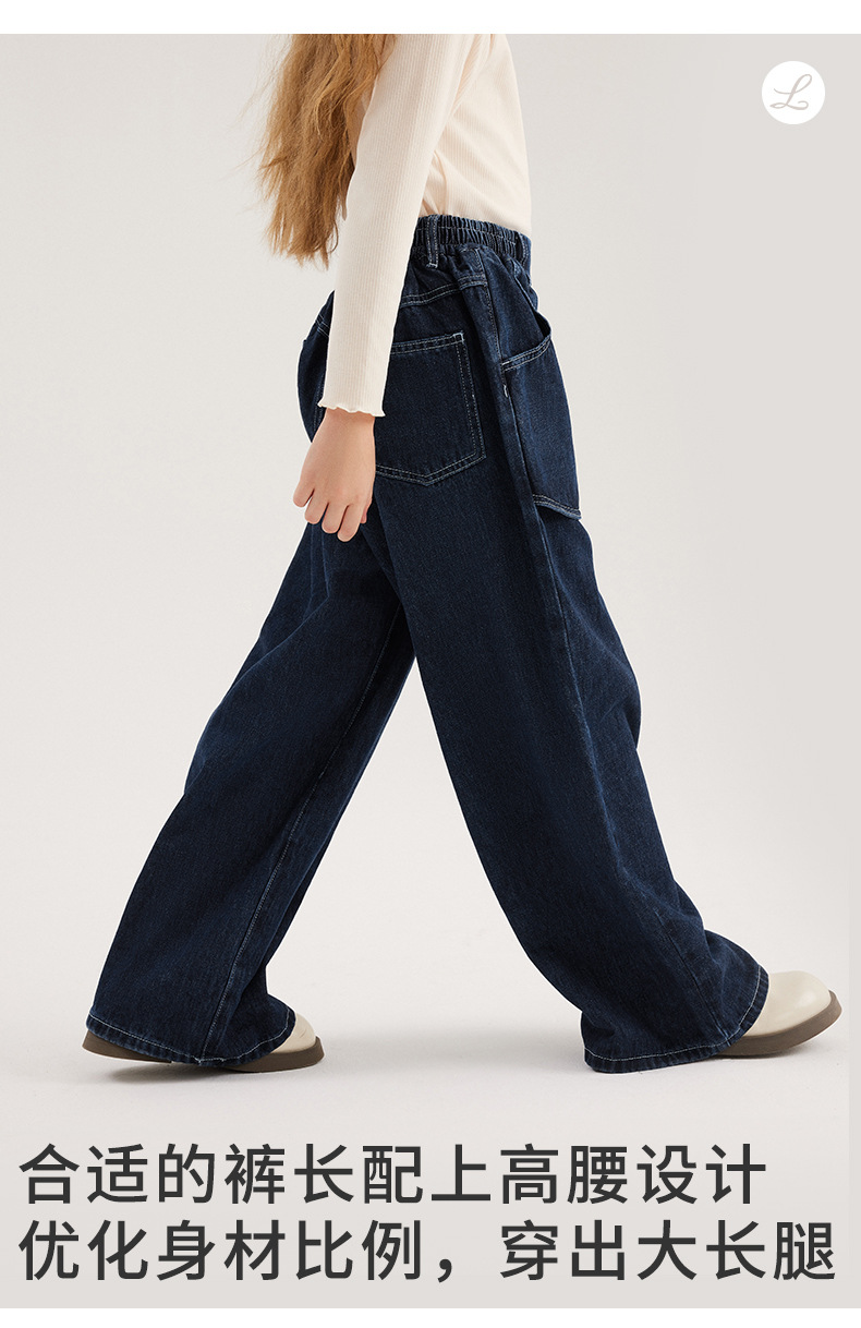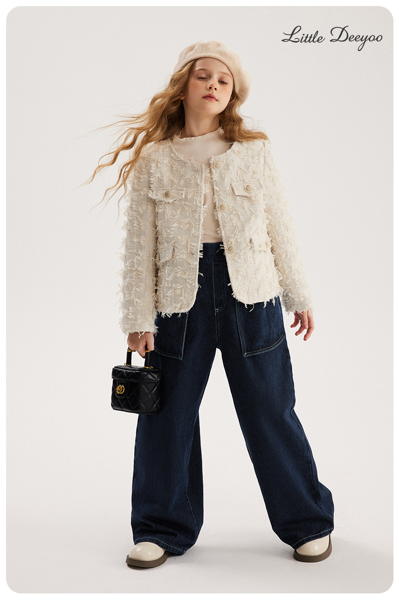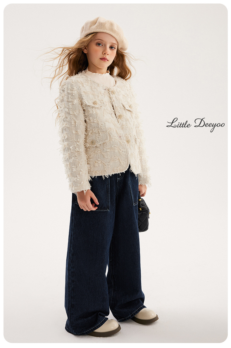 Xiaoding Youyoul 여자 밝은 라인 대비 스트레이트 청바지 2023 가을과 겨울 새로운 큰 어린이 복고풍 느낌 넓은 다리 바지