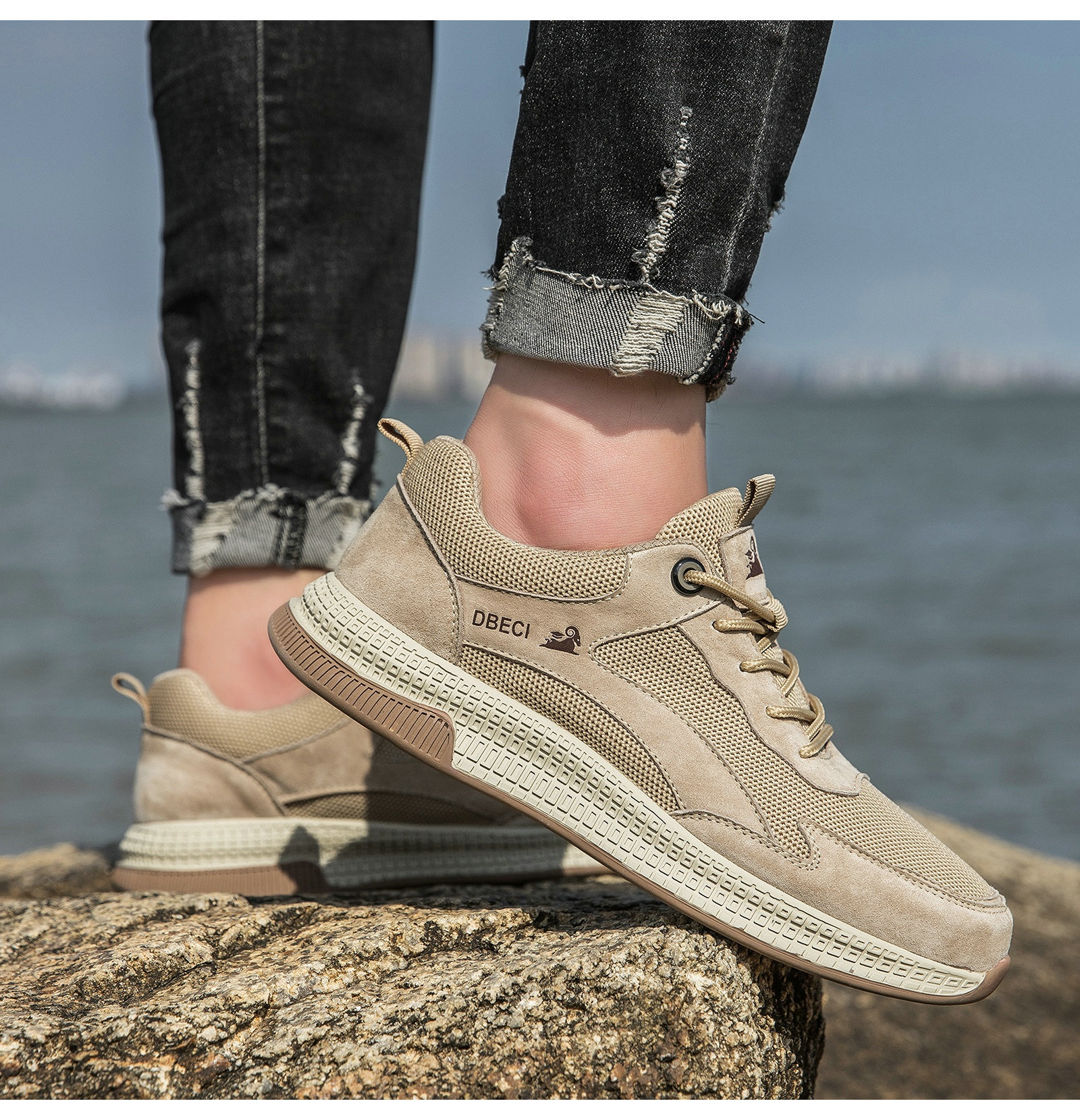 국경 간 여름 통기성 첫 번째 레이어 정품 가죽 운동화, 통기성 남성 신발, 트렌디하고 다재다능한 야외 캐주얼 신발, 대형 메쉬 신발