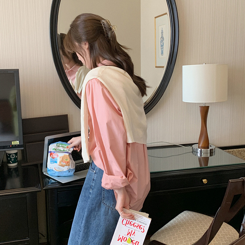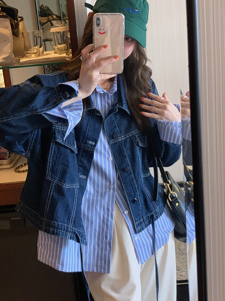 여성용 블루 스트라이프 셔츠 루즈하고 다재다능한 2025 봄, 가을 새로운 한국 스타일 긴팔 바닥 셔츠 디자인 트렌디 탑스토어 가기