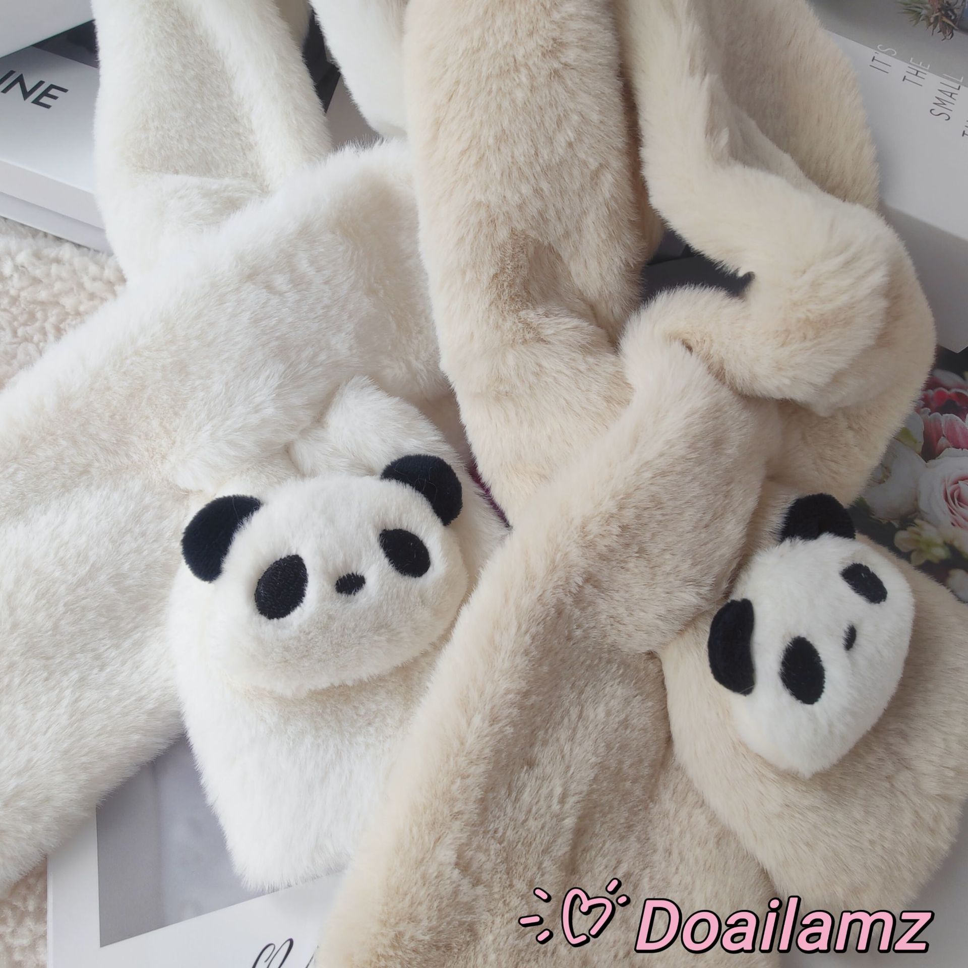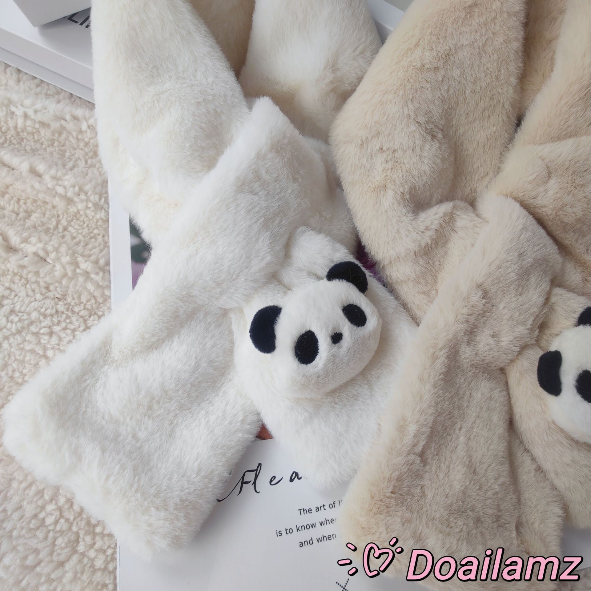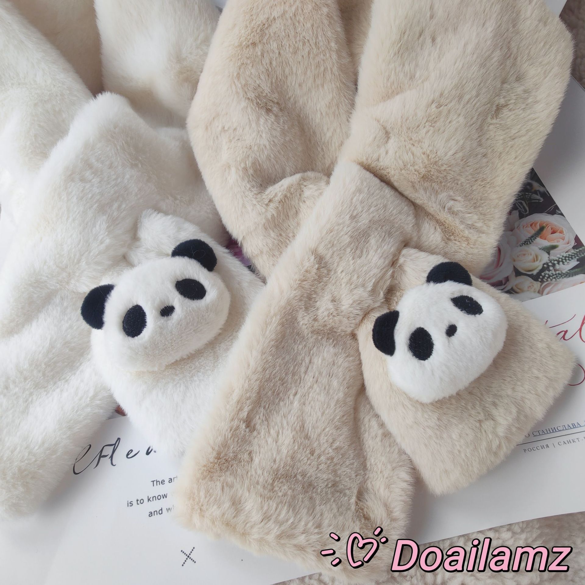 팬더 스카프 가을과 겨울 봉제 스카프 겨울 만화 귀여운 스카프 모피 칼라 따뜻한 모피 스카프 남여 공용
