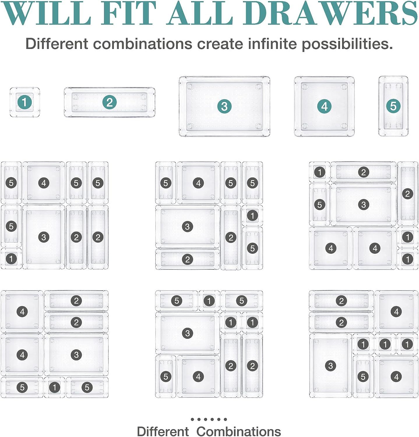 • 25개 세트 - 투명 검정색(대형 3개, 긴 6개, 중형 8개, 소형 8개)