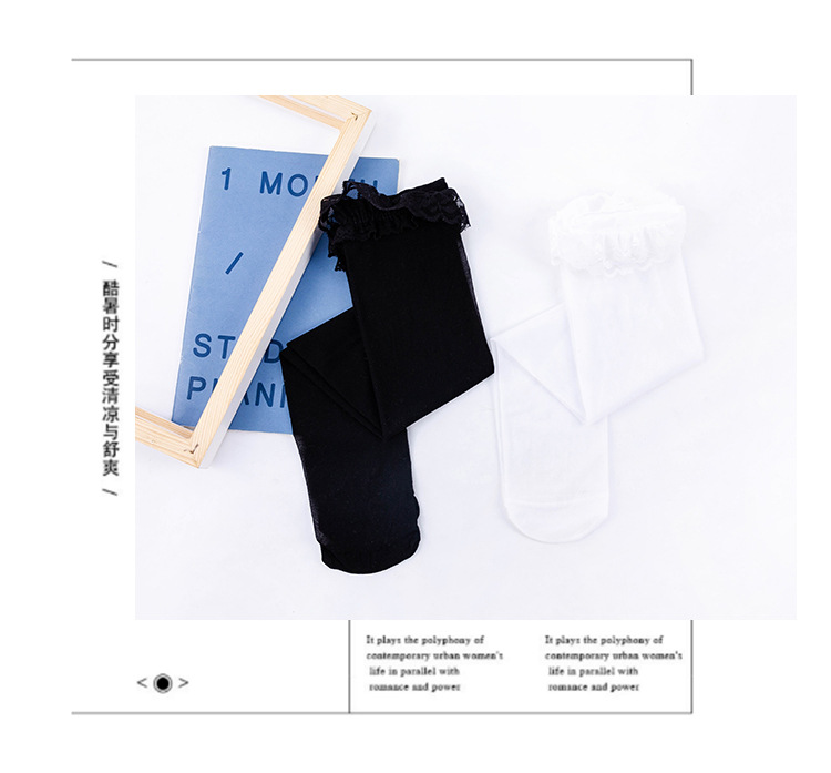 레이스 컵 양말 여성용 화이트 일본식 귀여운 실크 스타킹 여름 투명 블랙 jk 양말 투명 중간 튜브 양말