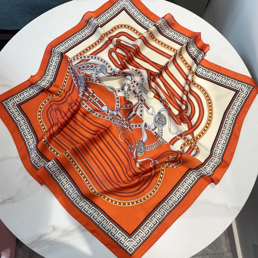 한국식 체인 리 브로케이드 새틴 70 작은 사각 스카프 여성용 실크 스카프 장식 스튜어디스 스카프 인쇄 헤어 벨트 휴가 머리 스카프 숄
