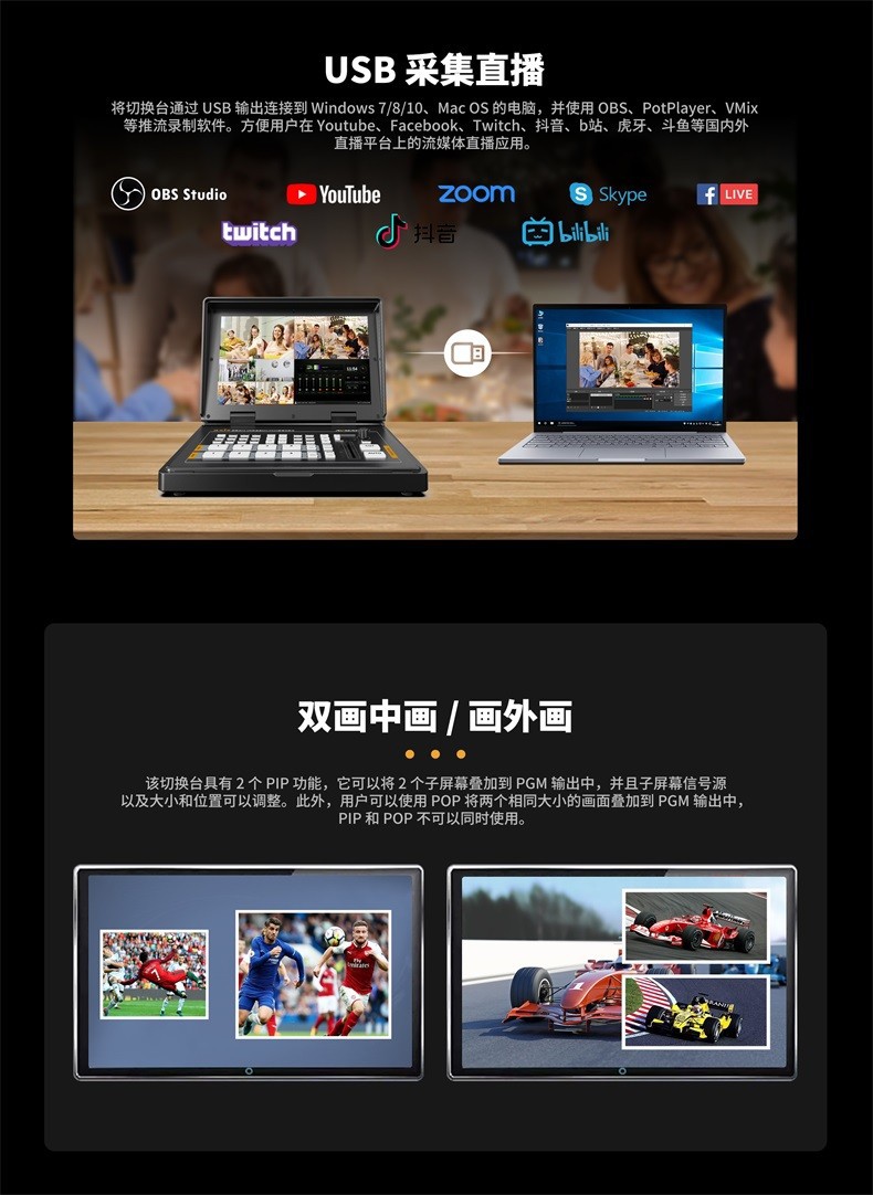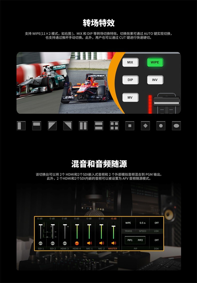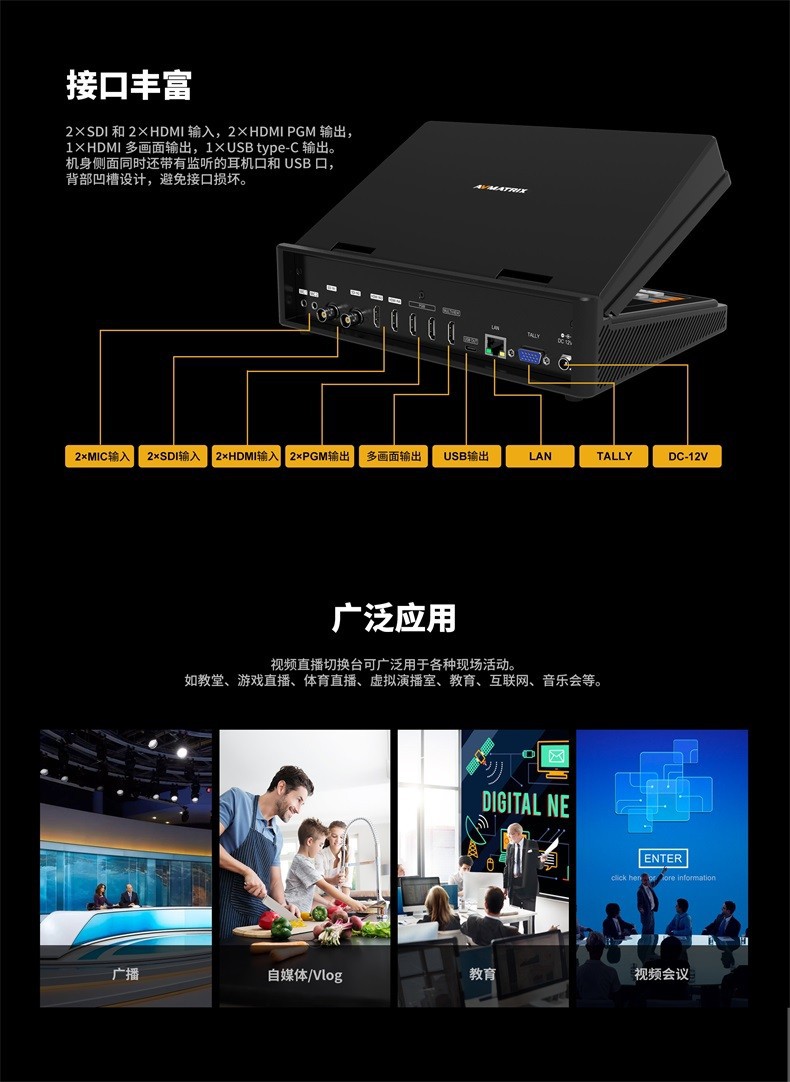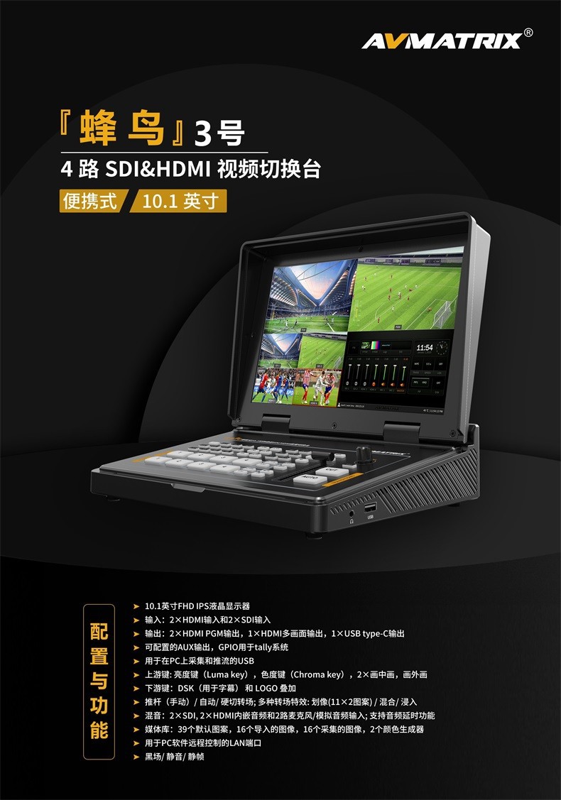 Mytos PVS 0403U 편리한 4 방향 푸시 흐름 벌새 3 SDI 및 HDMI 라이브 가이드 스위치