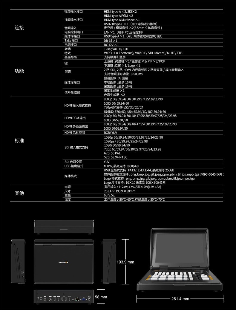 Mytos PVS 0403U 편리한 4 방향 푸시 흐름 벌새 3 SDI 및 HDMI 라이브 가이드 스위치스토어 가기