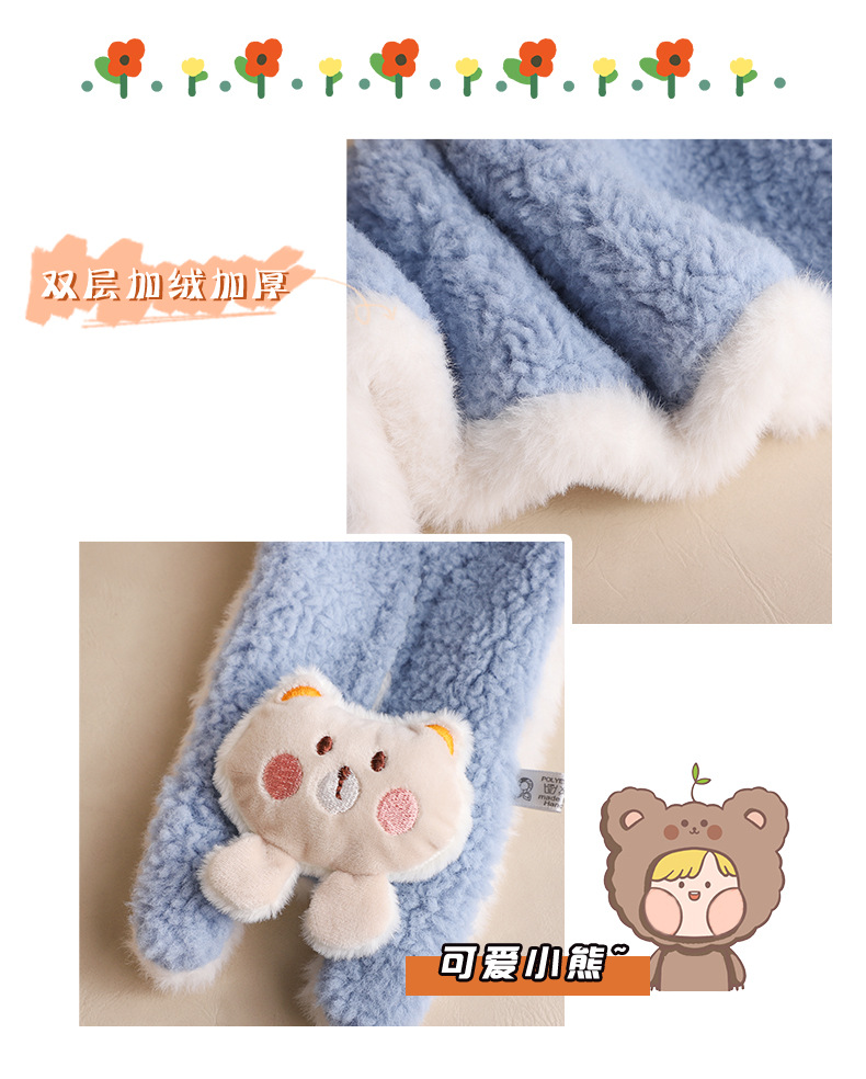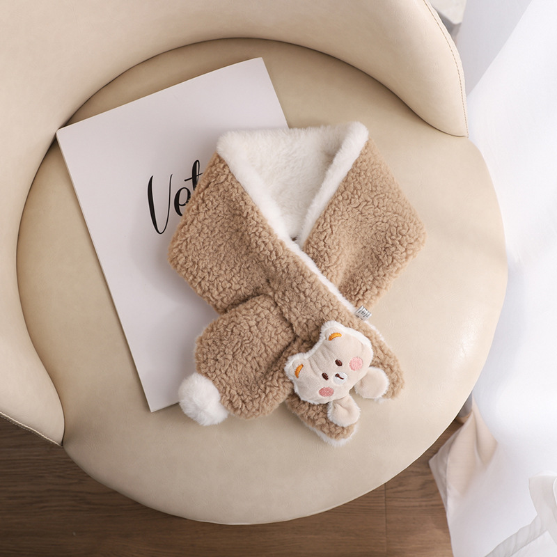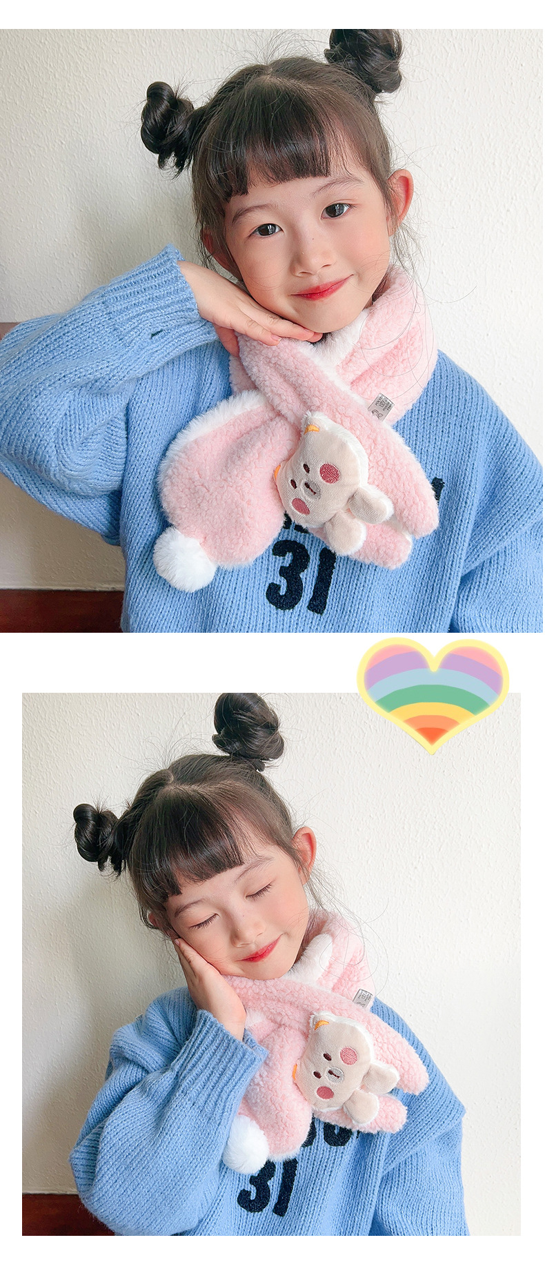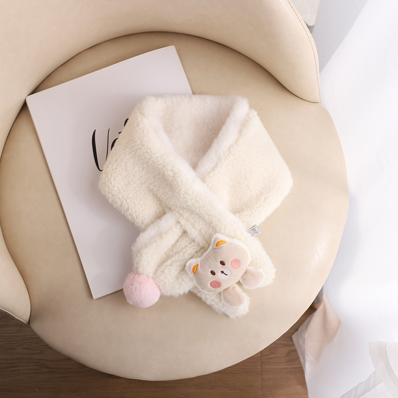 가을과 겨울 방한 플러시 따뜻한 통기성 스카프 새로운 어린이 만화 홍당무 곰 니트 크로스 넥 방풍 스카프
