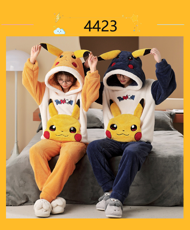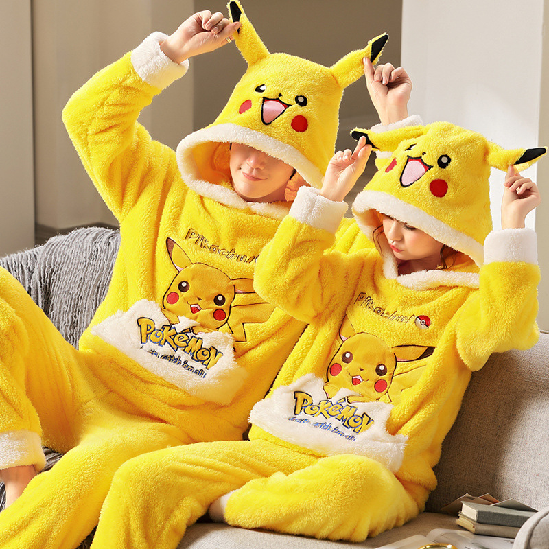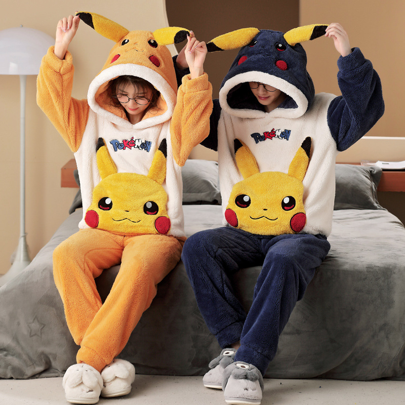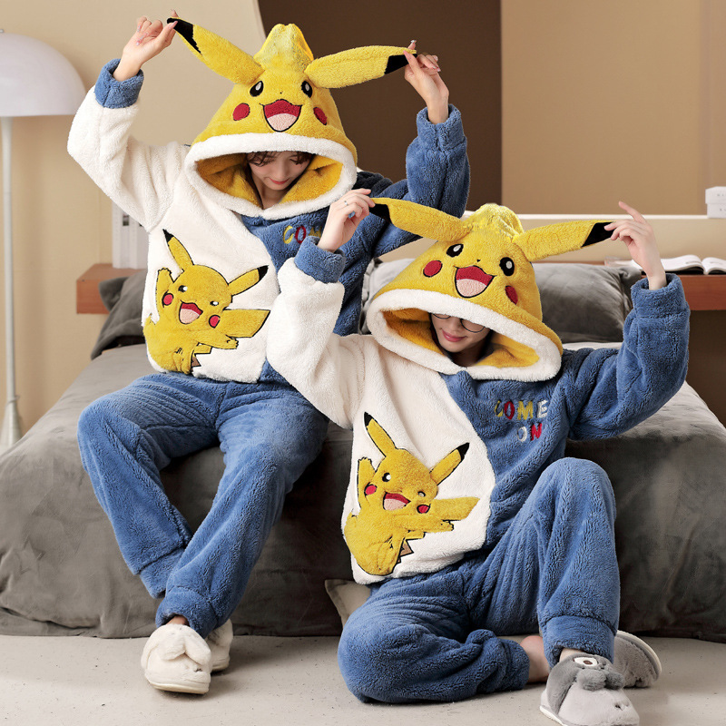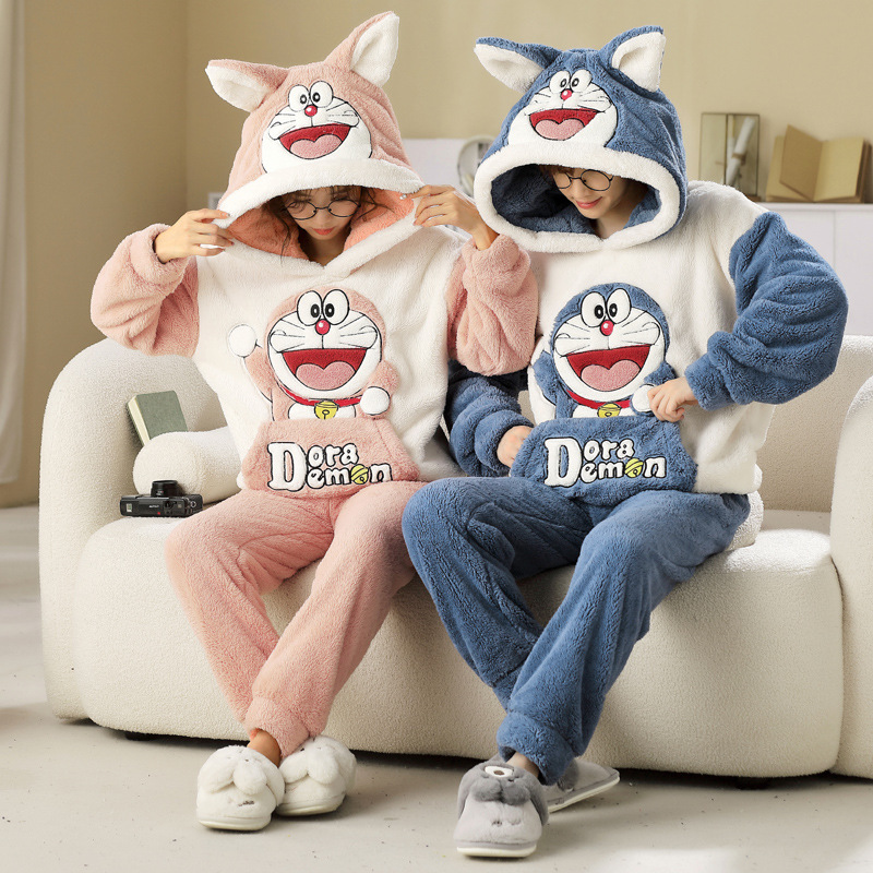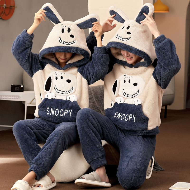 커플 잠옷 여자의 가을과 겨울 산호 양털 두꺼운 따뜻한 만화 플러스 사이즈 남자의 후드 세트 플란넬 가정 옷