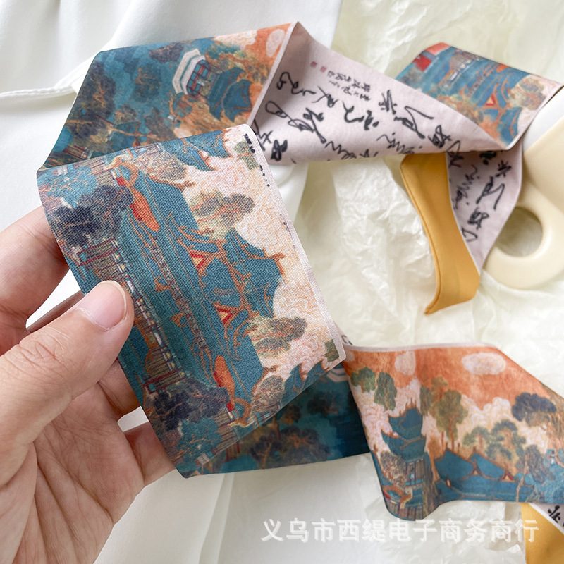 패션 긴 작은 실크 스카프 의류 액세서리 헤어 스트랩 넥타이 가방 나비 리본 인쇄 헤어 액세서리 패브릭 조랑말 꼬리