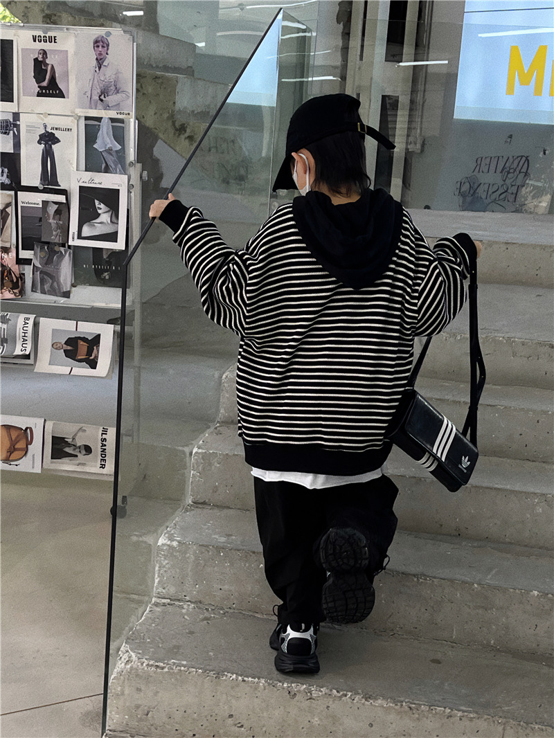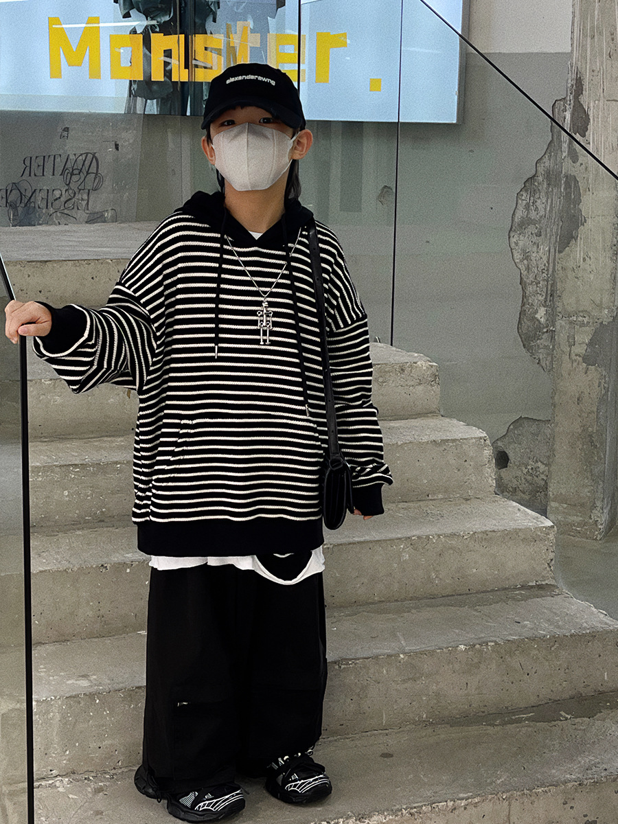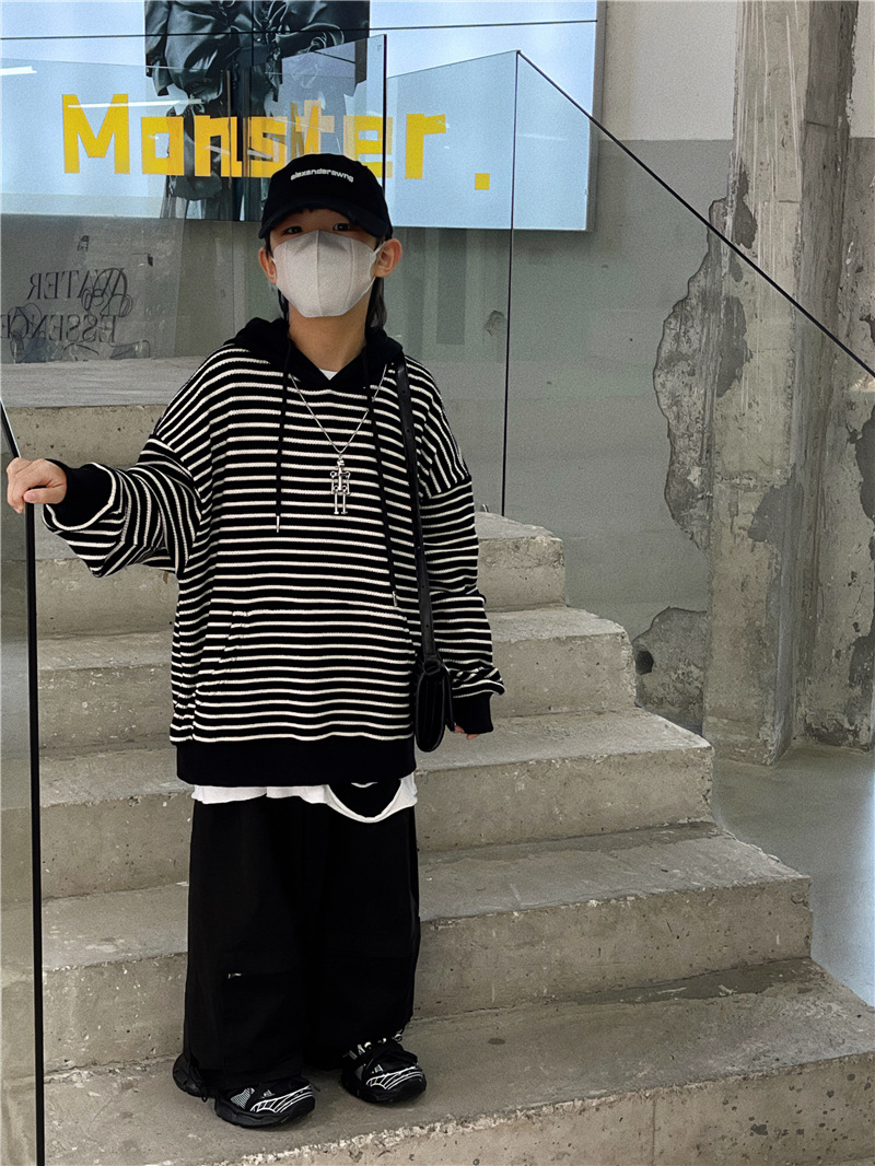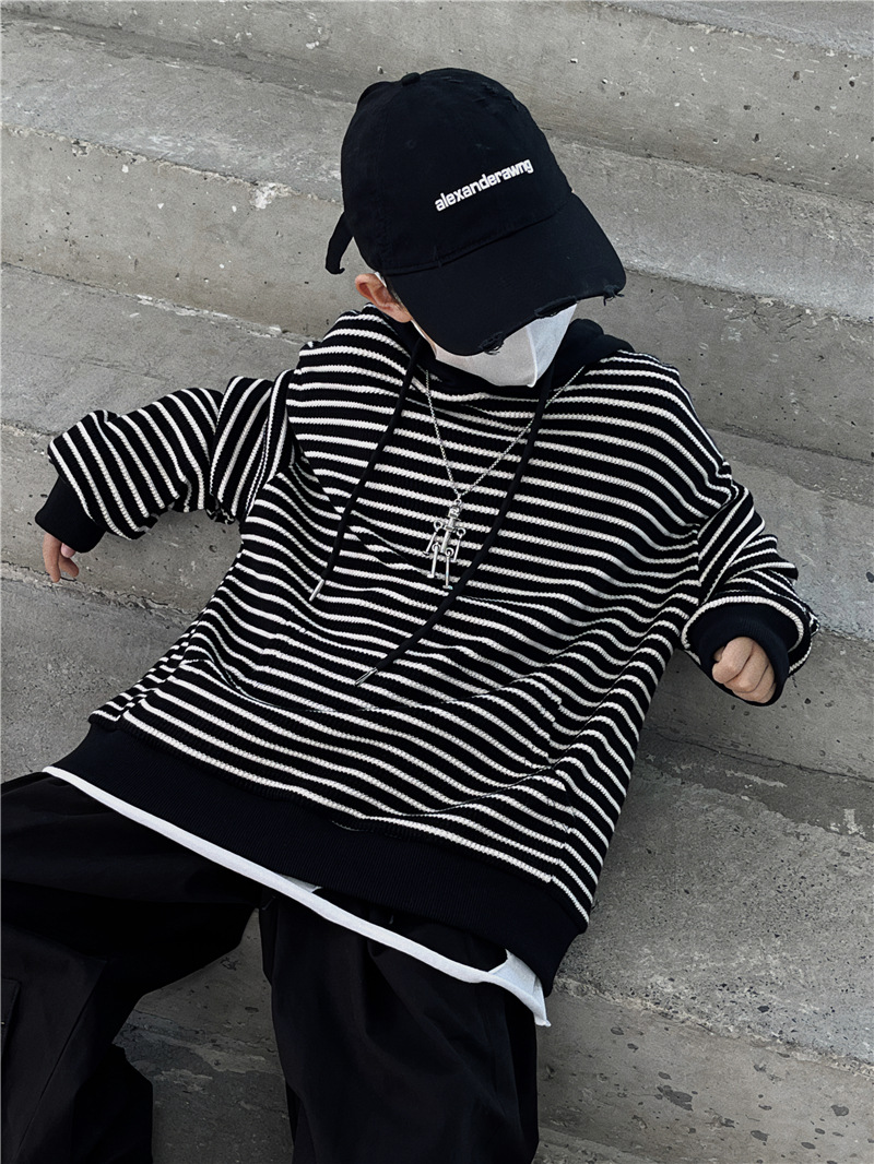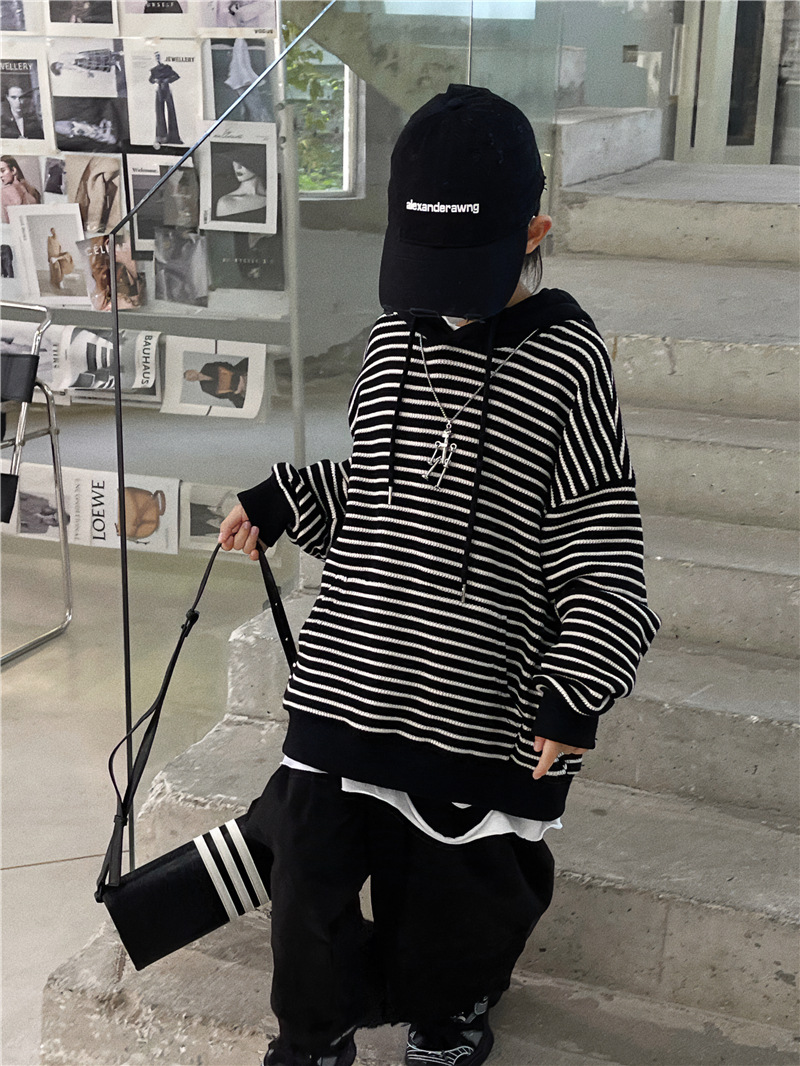 Baoduo 아동복 소년 후드 스웨터 가을과 겨울 2023 새로운 아동 가을 의류 튀김 거리 아기 가을 코트 조수스토어 가기