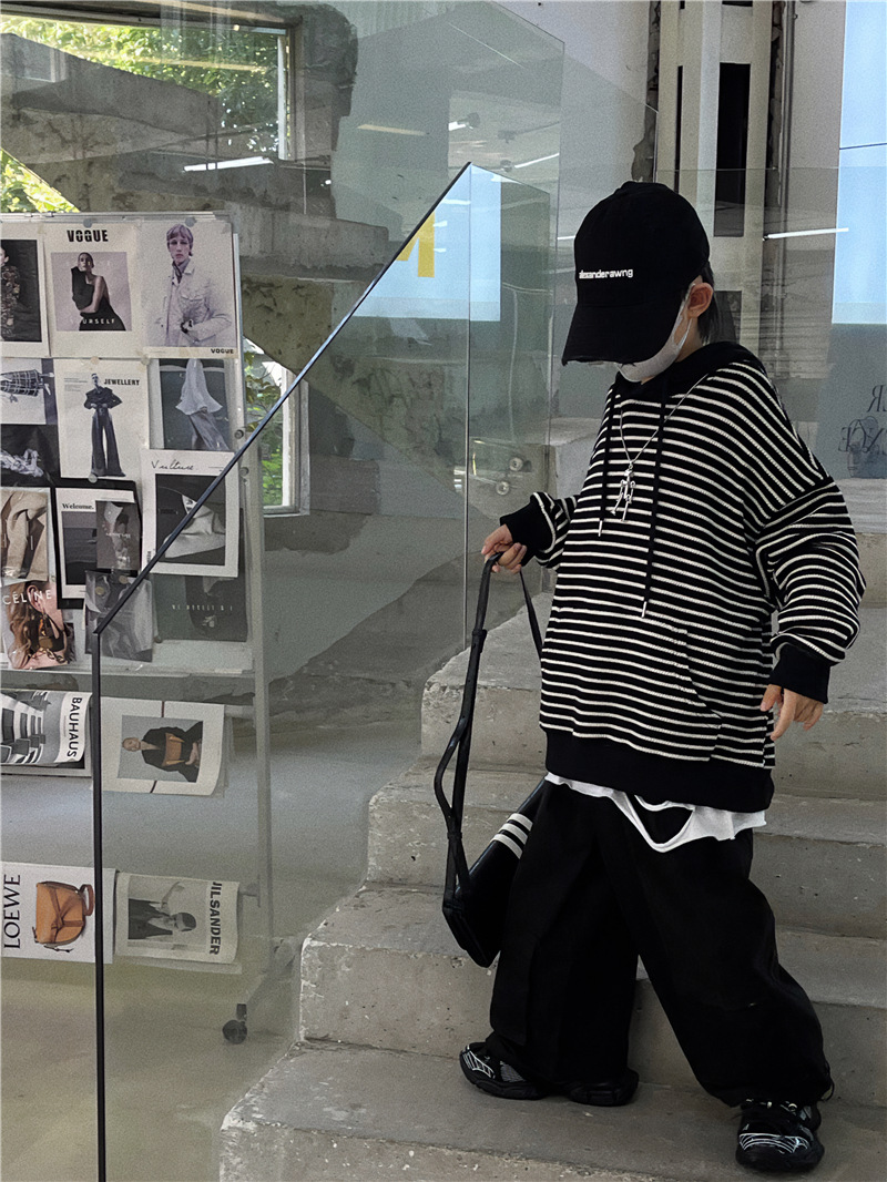 Baoduo 아동복 소년 후드 스웨터 가을과 겨울 2023 새로운 아동 가을 의류 튀김 거리 아기 가을 코트 조수