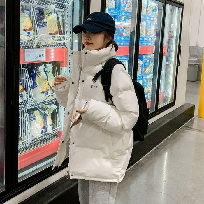 면 패딩 재킷 여성용 2023 여학생용 신면 패딩 재킷 겨울면 패딩 재킷에서 두꺼운 한국식 느슨한 짧은 겨울 코트스토어 가기