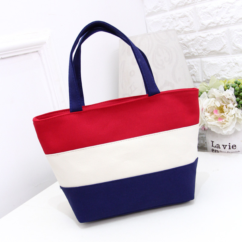 매일 특별 판매 스티칭 도시락 쇼핑백 작은 신선한 캔버스 가방 줄무늬 여성 환경 보호 숄더백 휴대용 여성용 가방