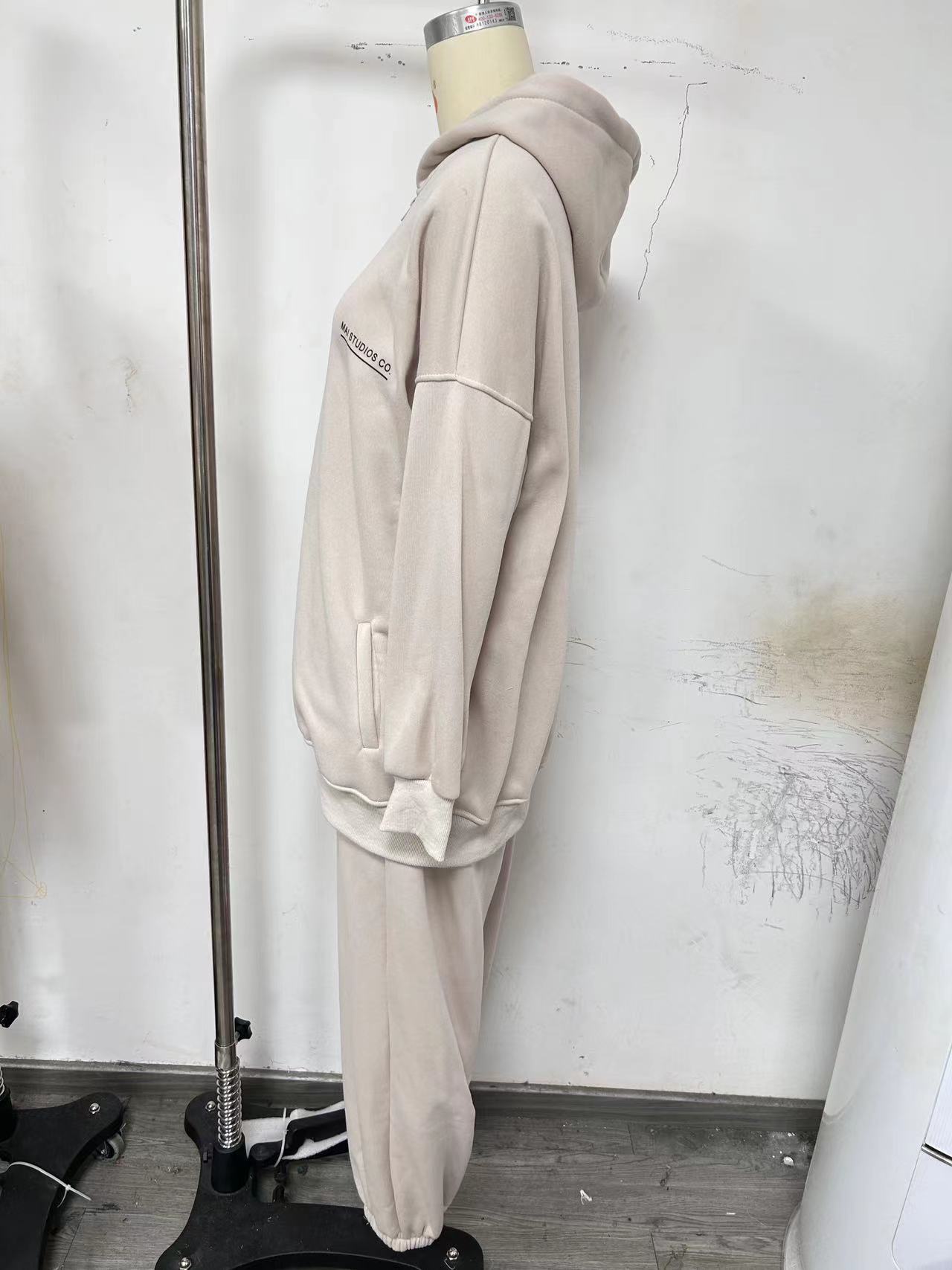 2023 아마존 국경 유럽 및 미국 여성의 긴팔 기모 스웨터 바지 캐주얼 패션 프린트 후드 세트 여성스토어 가기