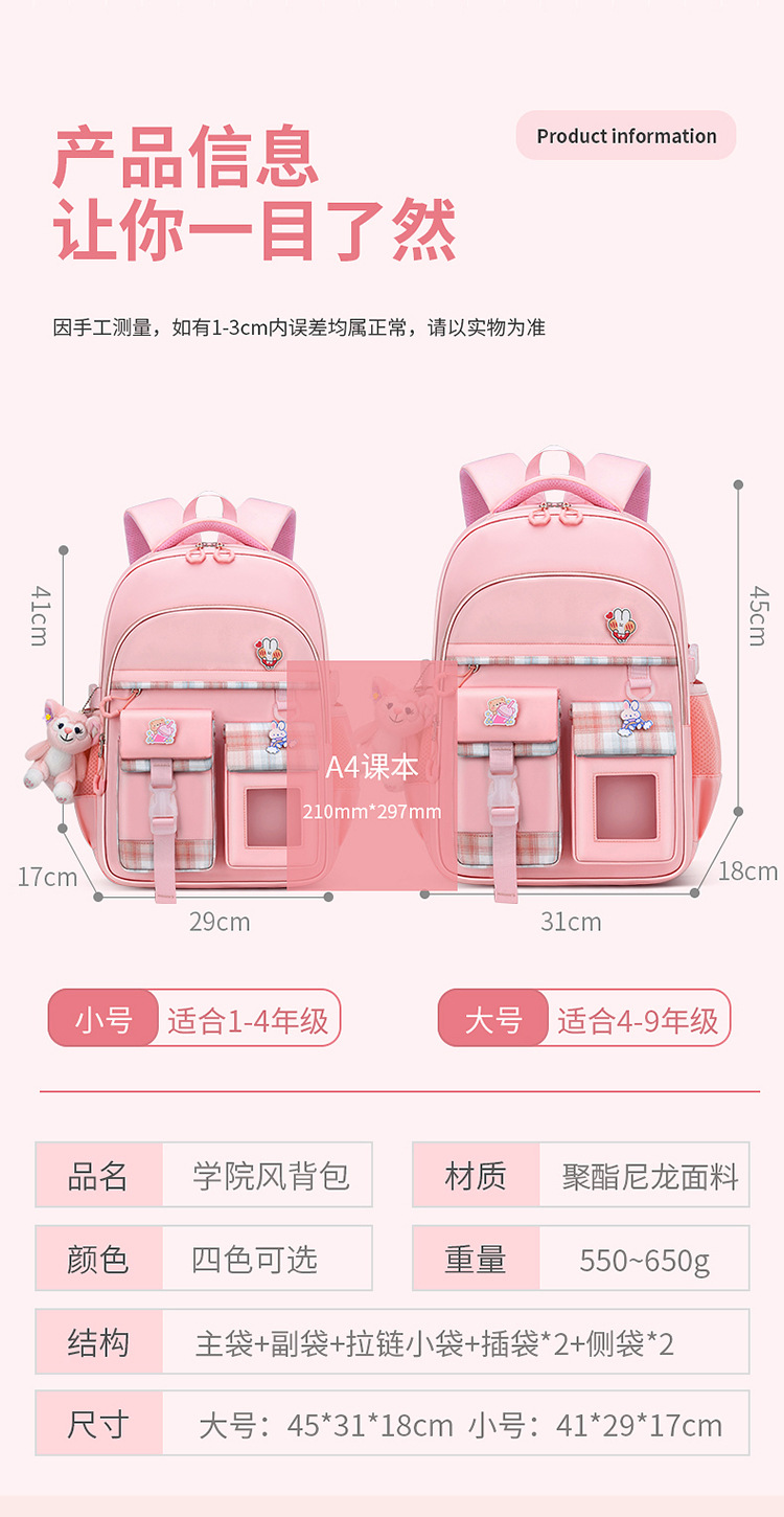 폭발성 책가방 도매 여자 초등학교 학생 4,5 여자 3-6 1 학년 대용량 어린이 책가방의 부담을 줄입니다
